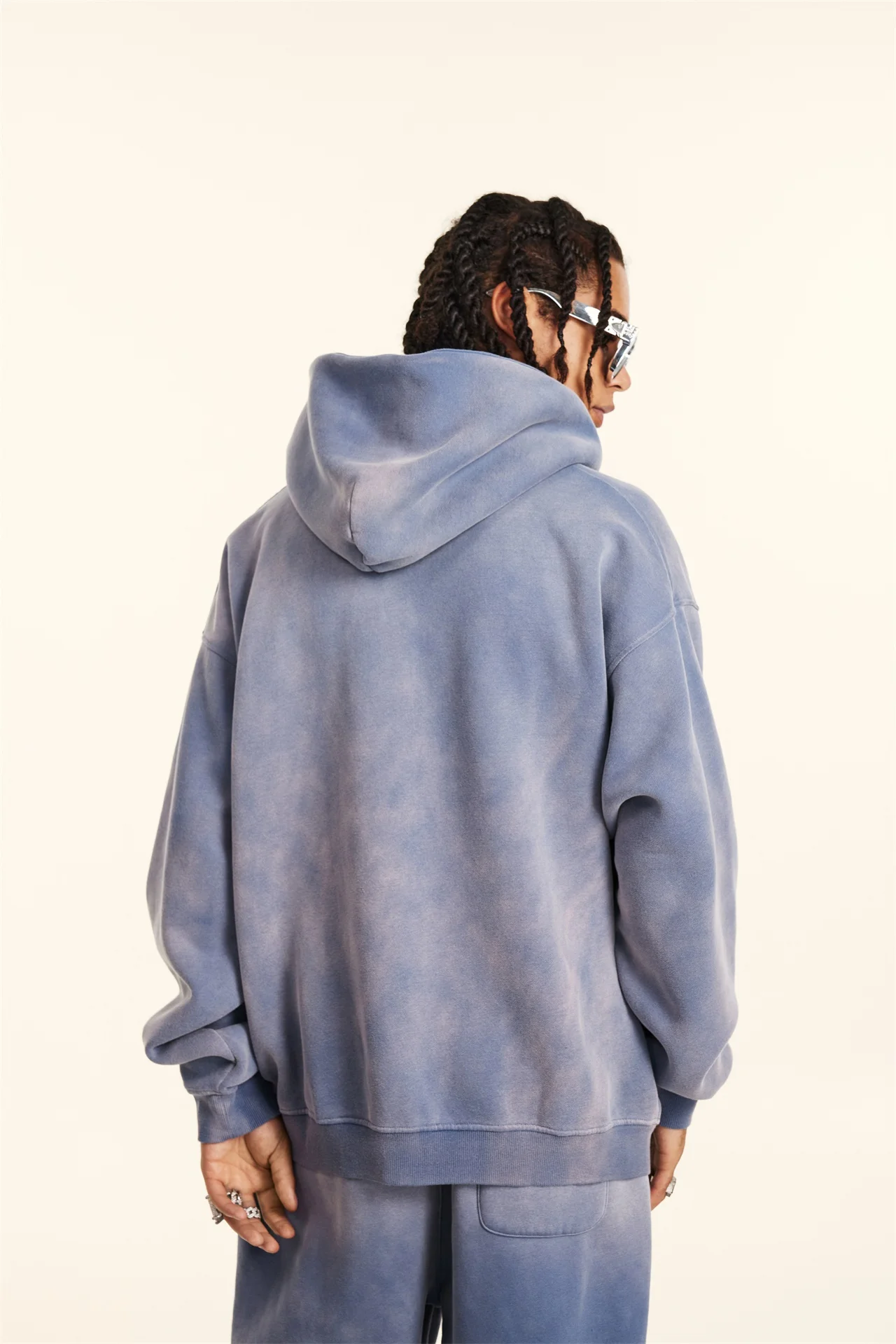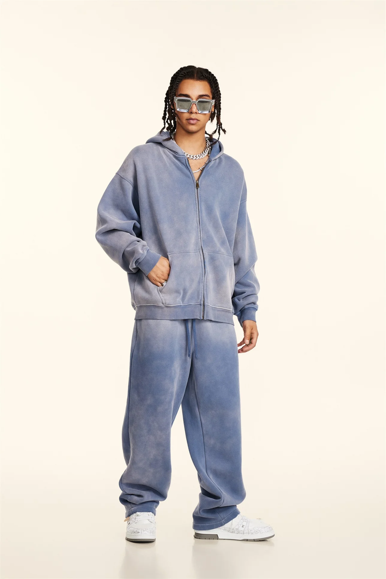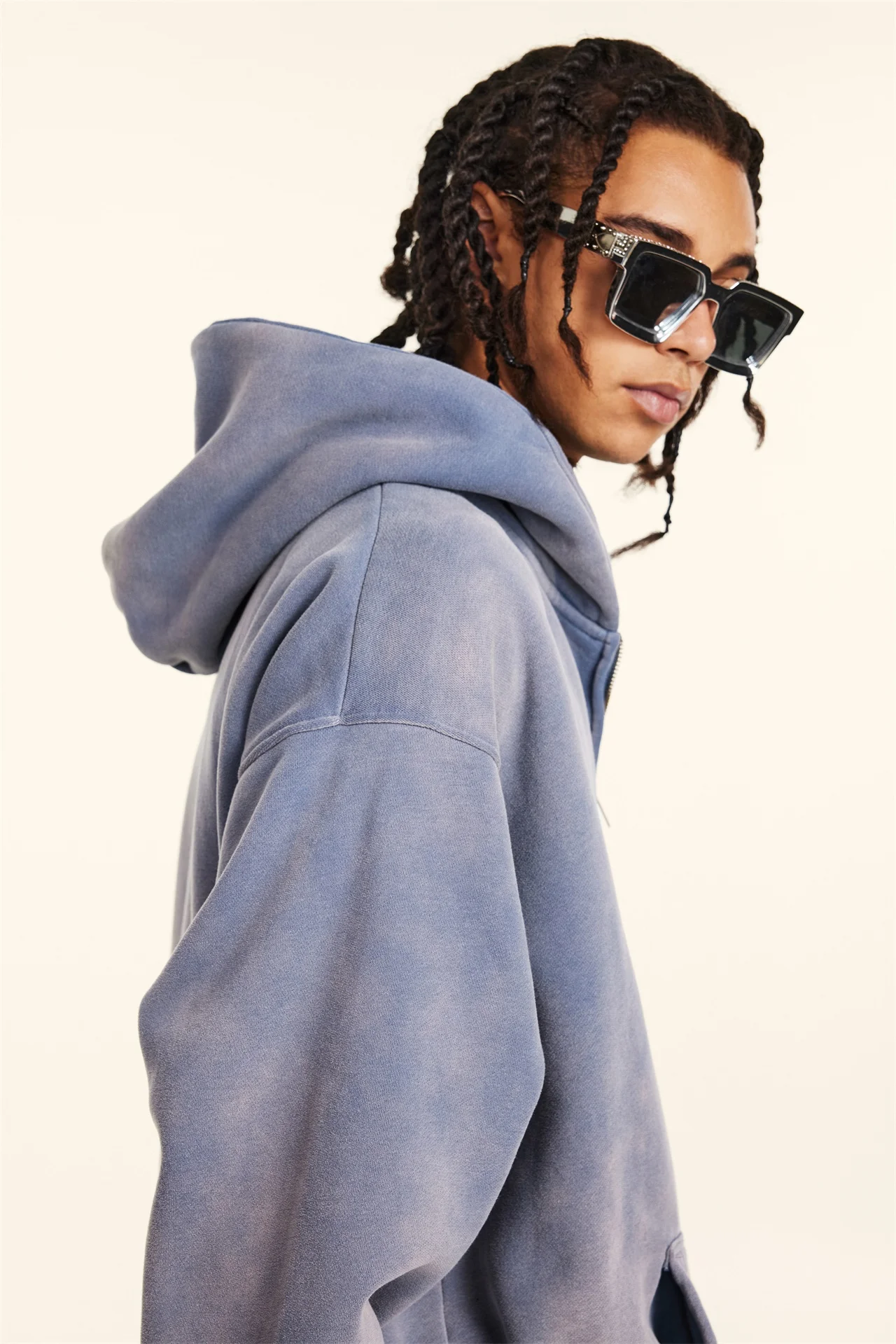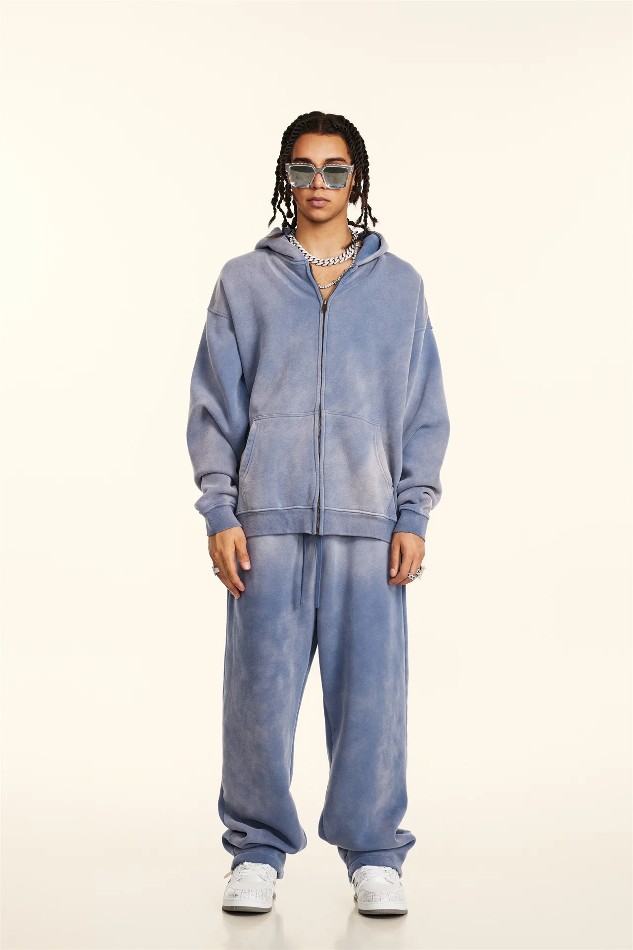 360GSM Unisex Fall/Winter New Fleece-Lined PP-Sprayed (Monkey Wash) Zip-Up Hooded Sweatshirt