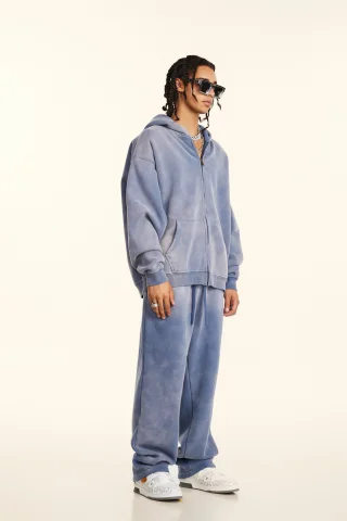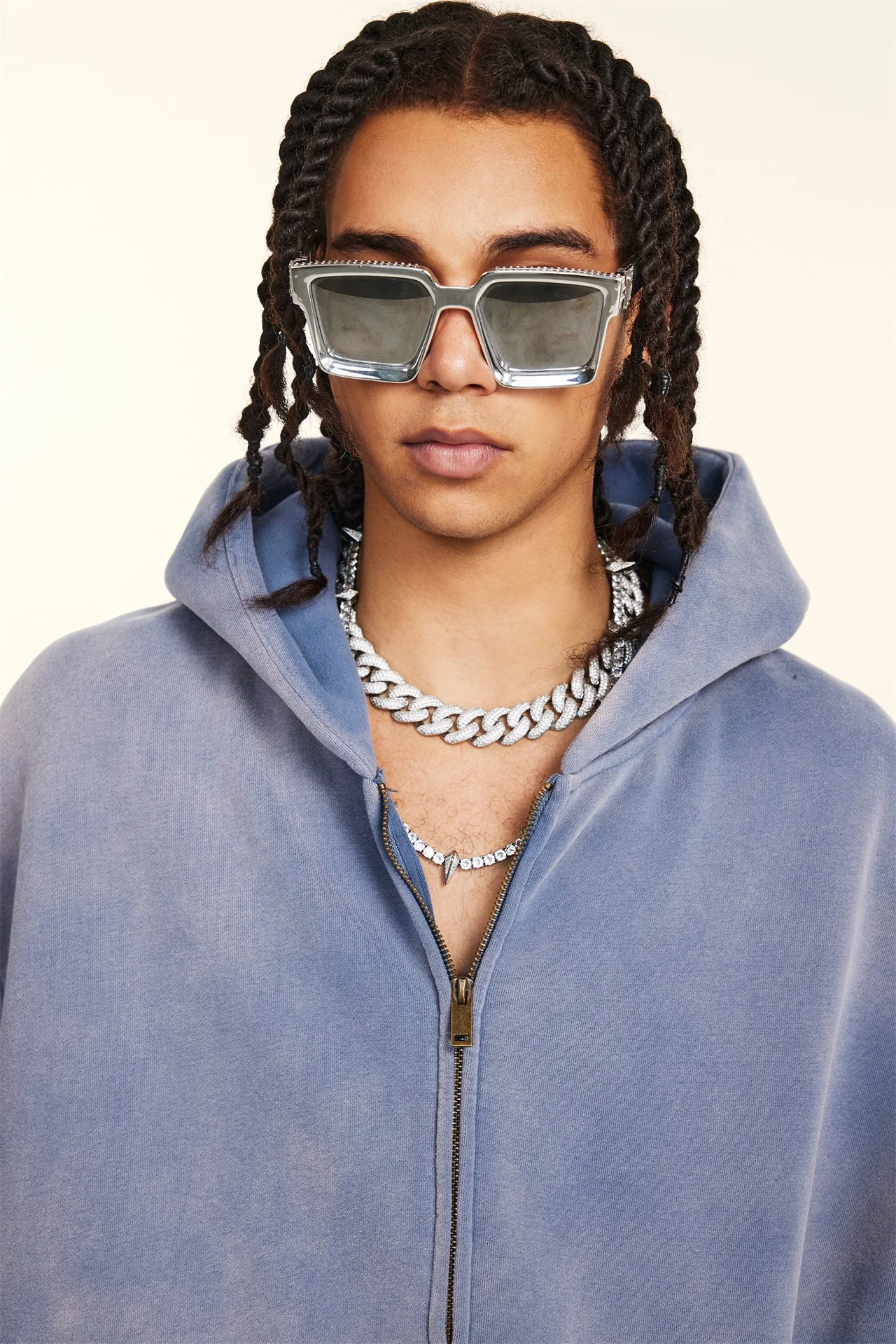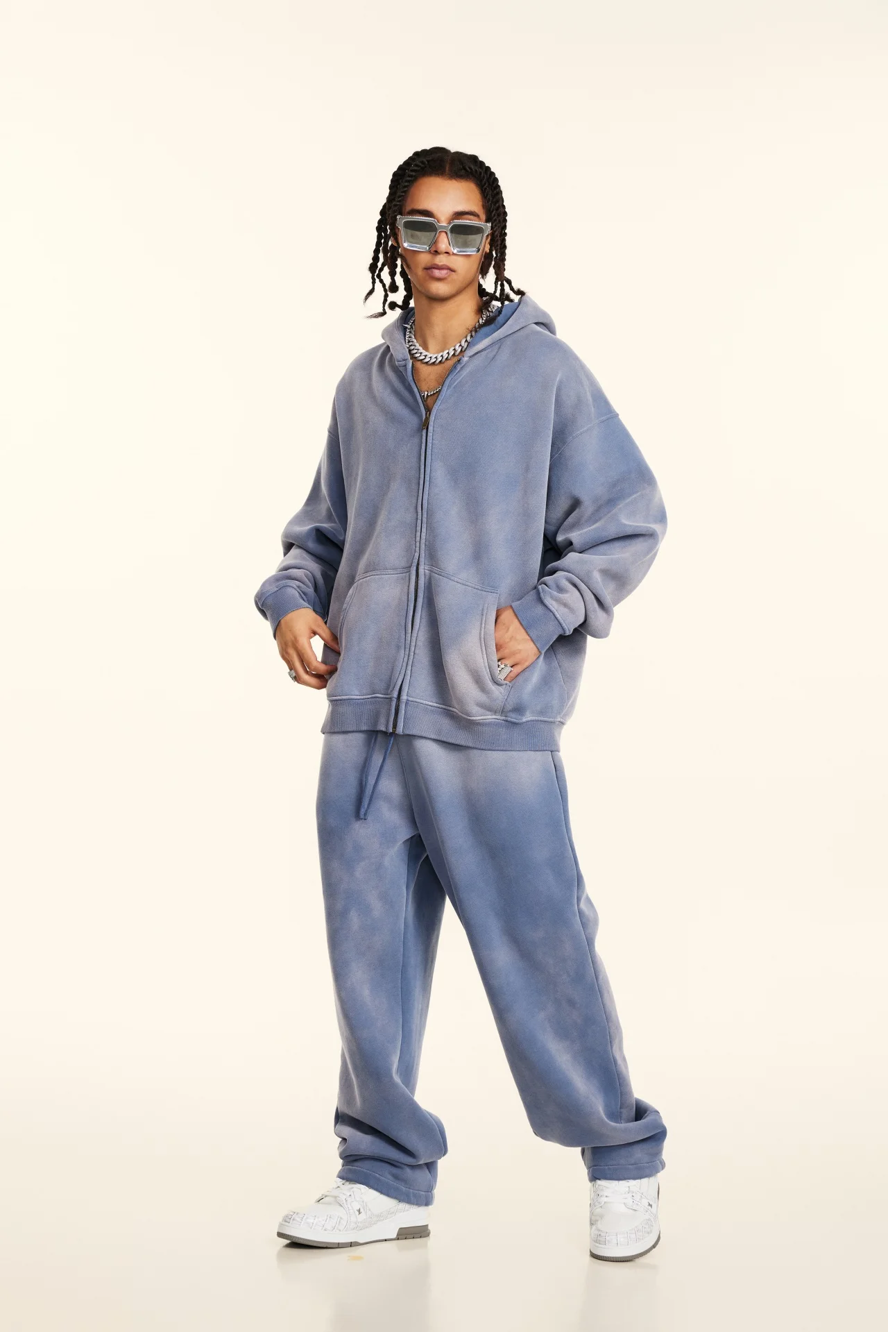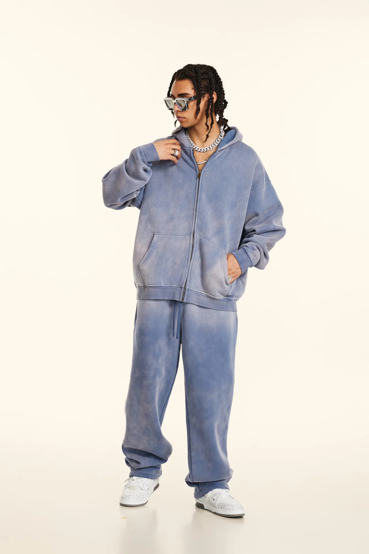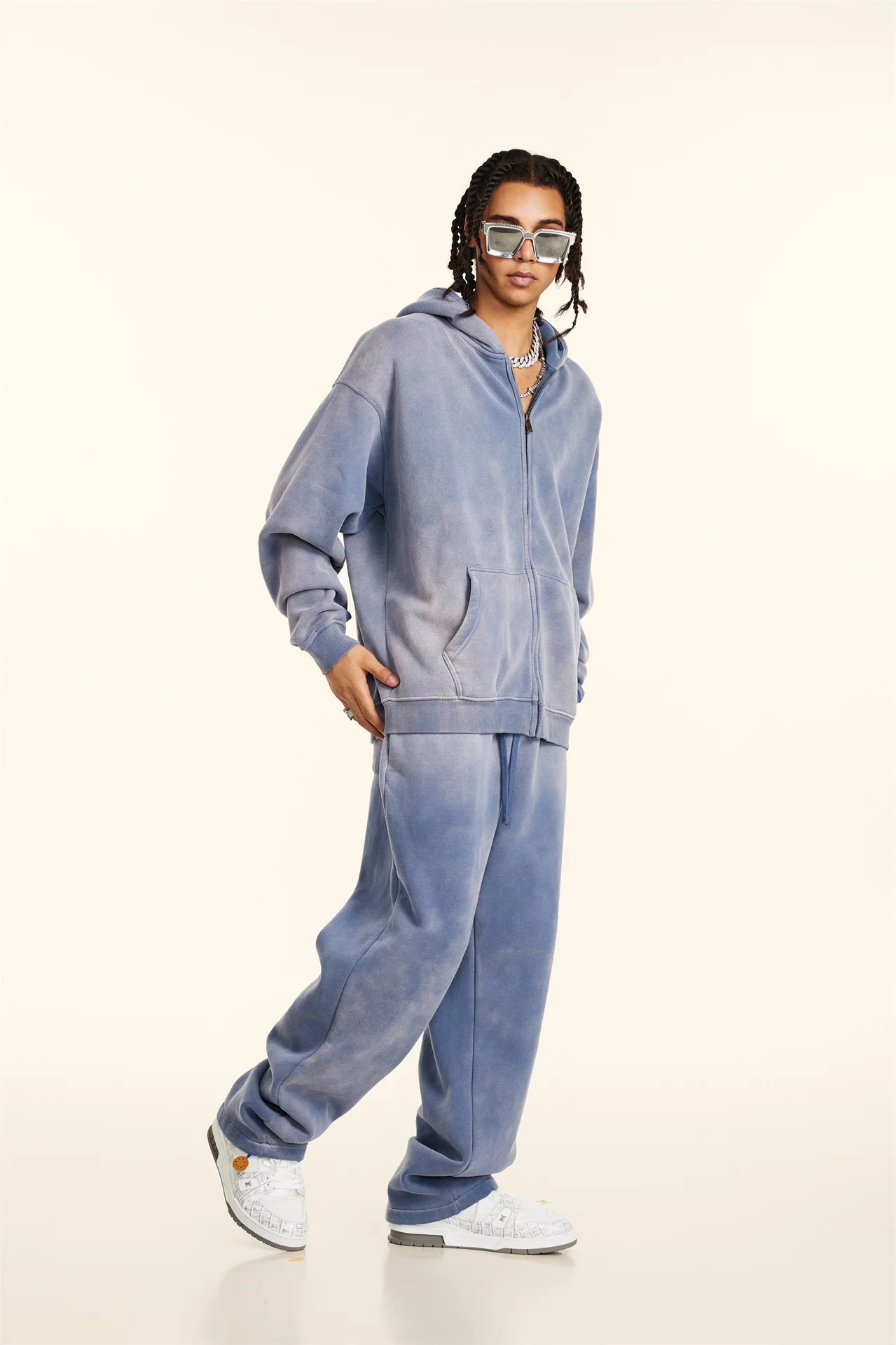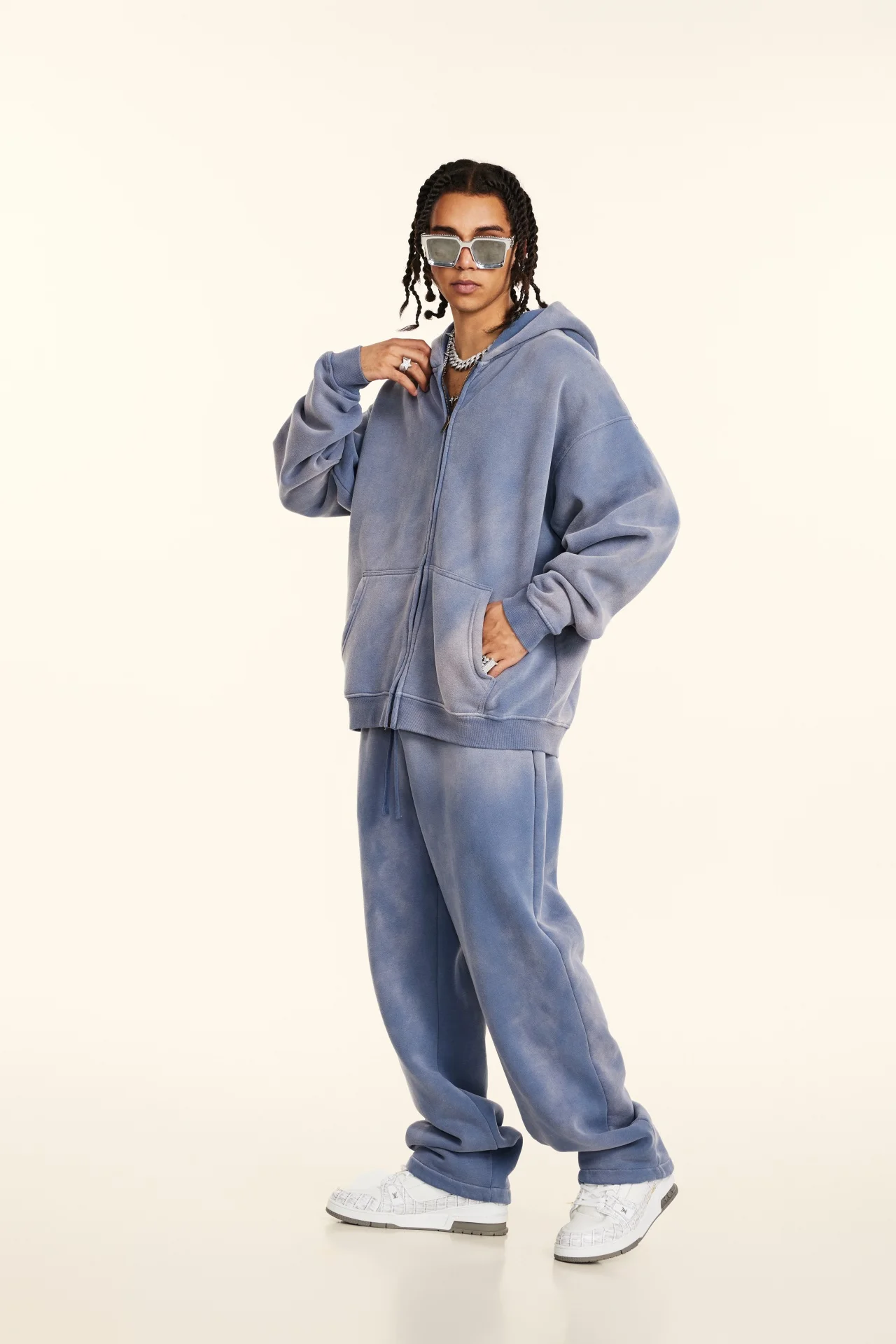 360GSM Unisex Fall/Winter New Fleece-Lined PP-Sprayed (Monkey Wash) Zip-Up Hooded Sweatshirt
