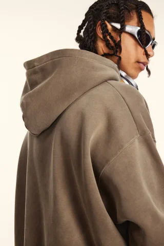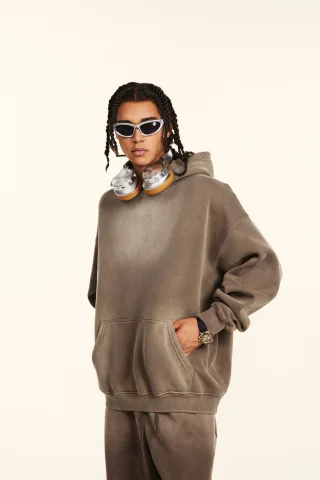 This 360g fleece hoodie combines heat-retentive performance with a contemporary oversized silhouette — designed for brands seeking comfort, structure, and modern appeal. Made with a 57% polyester, 38% cotton, 5% spandex blend, the Thermo-Warm® fleece fabric ensures quick heat-up, long-lasting warmth, and breathable comfort. The inner brushed fleece locks in heat efficiently, while the surface spraying technique adds rich texture and visual depth. Featuring a mock-neck hood, kangaroo pocket, and ribbed cuffs & hem, the piece maintains shape through consistent stitching and clean construction lines. The three-panel hood and drop-shoulder fit add to the relaxed yet refined look — ideal for urban casual and streetwear collections. Enhanced by a double-spray finishing technique, this hoodie offers premium layering visuals and a consistent, stable production base, perfect for scalable brand customization.