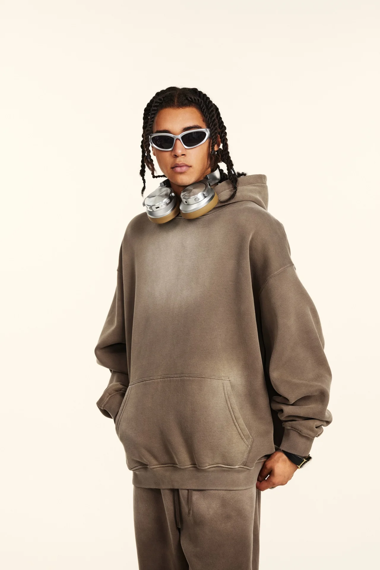360GSM Unisex Fall/Winter New Fleece-Lined PP-Sprayed (Monkey Wash) Hooded Sweatshirt