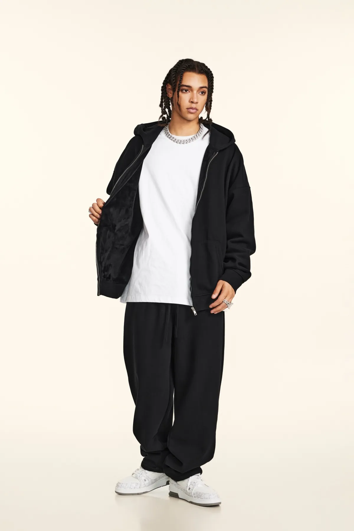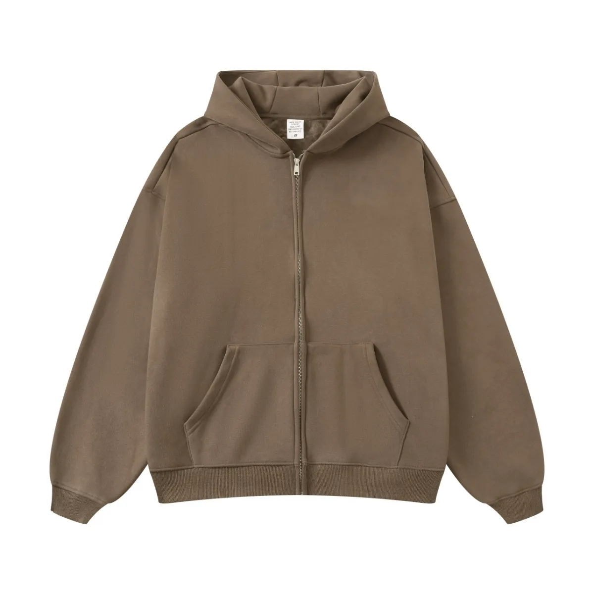 420GSM Fleece-Lined Composite Zip-Up Hoodie