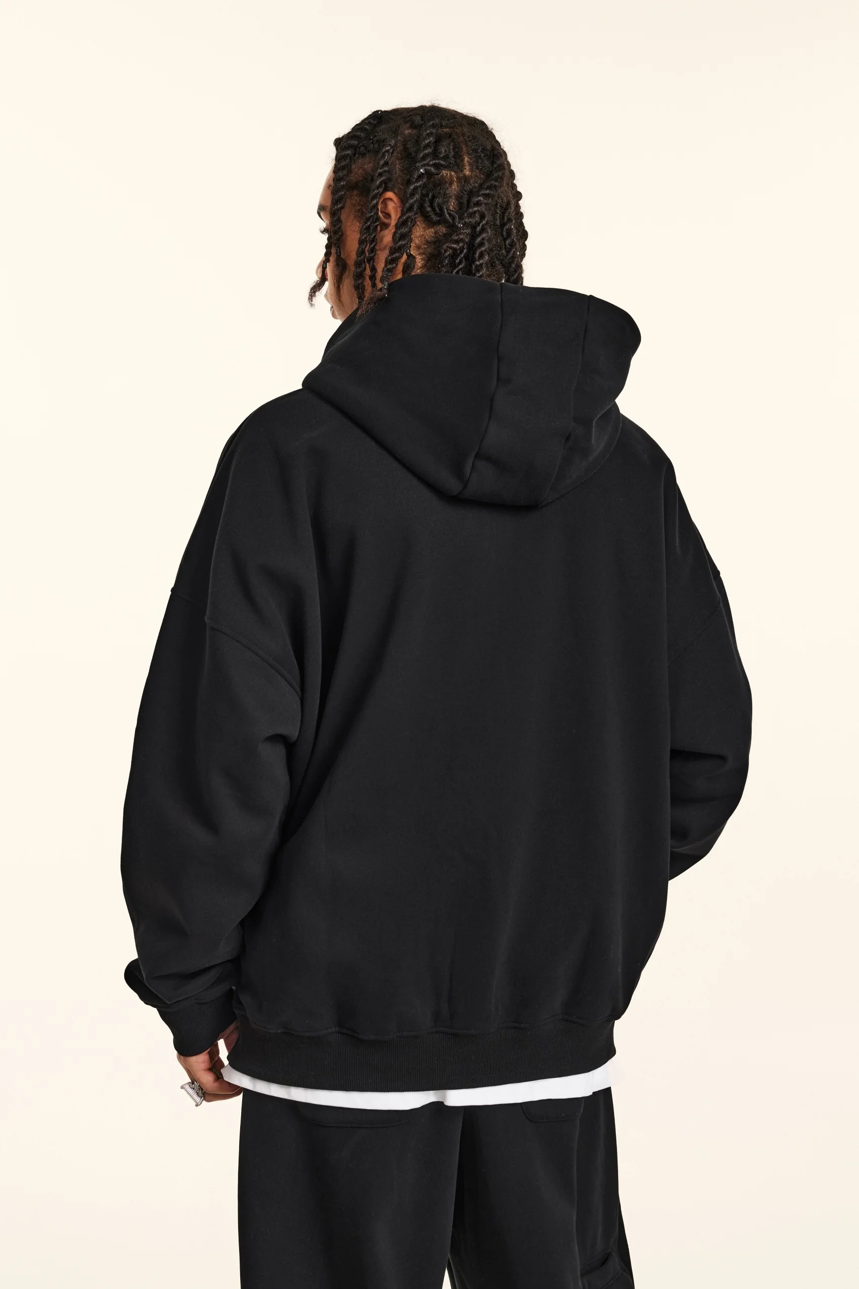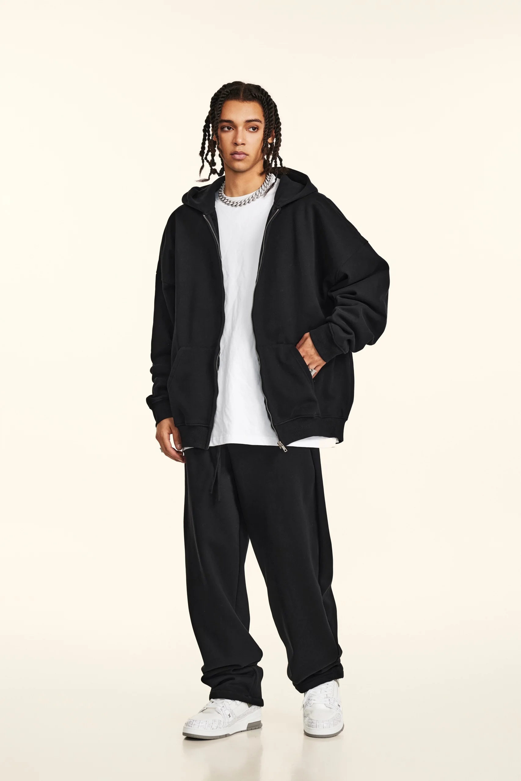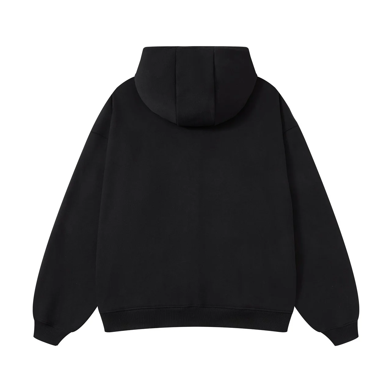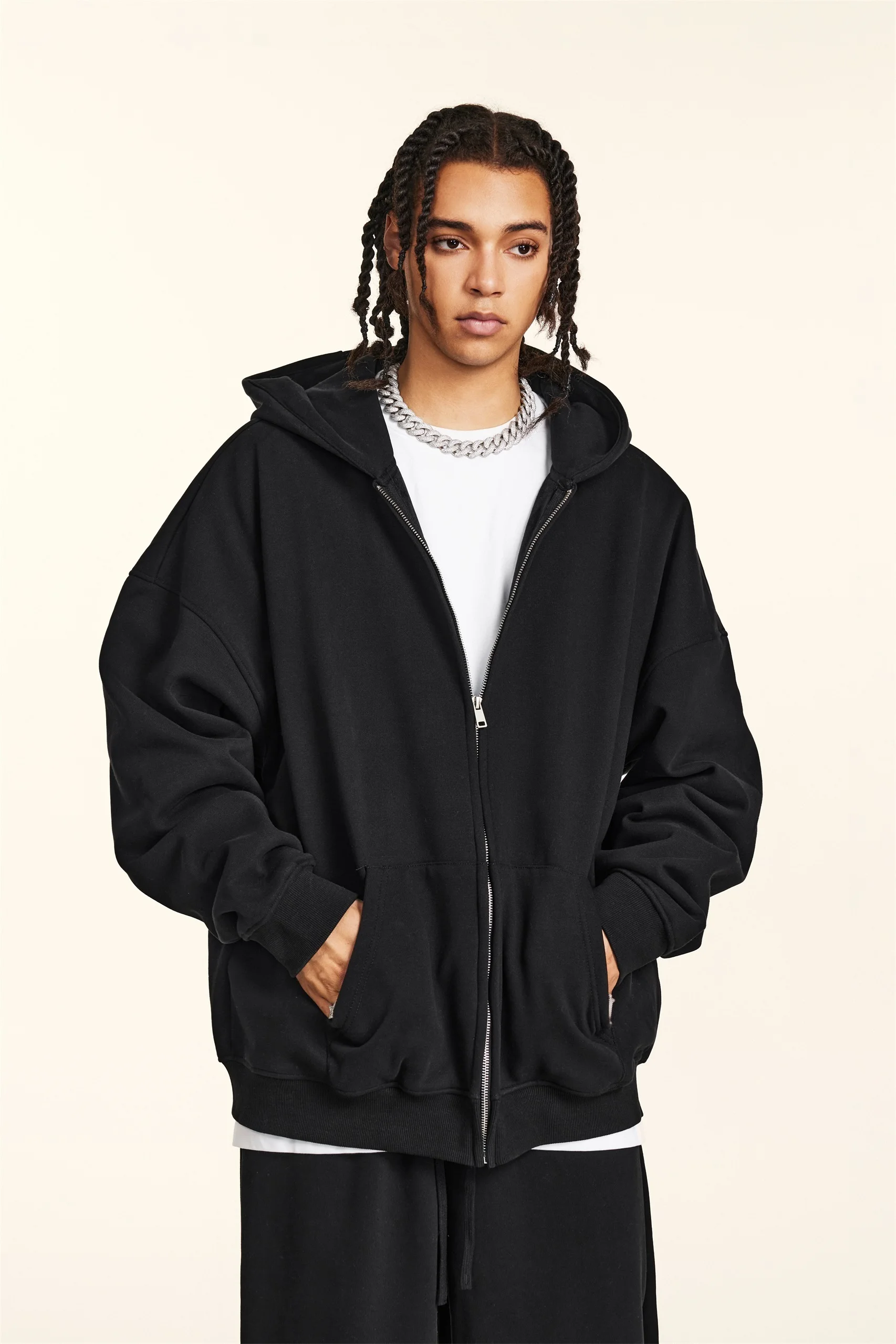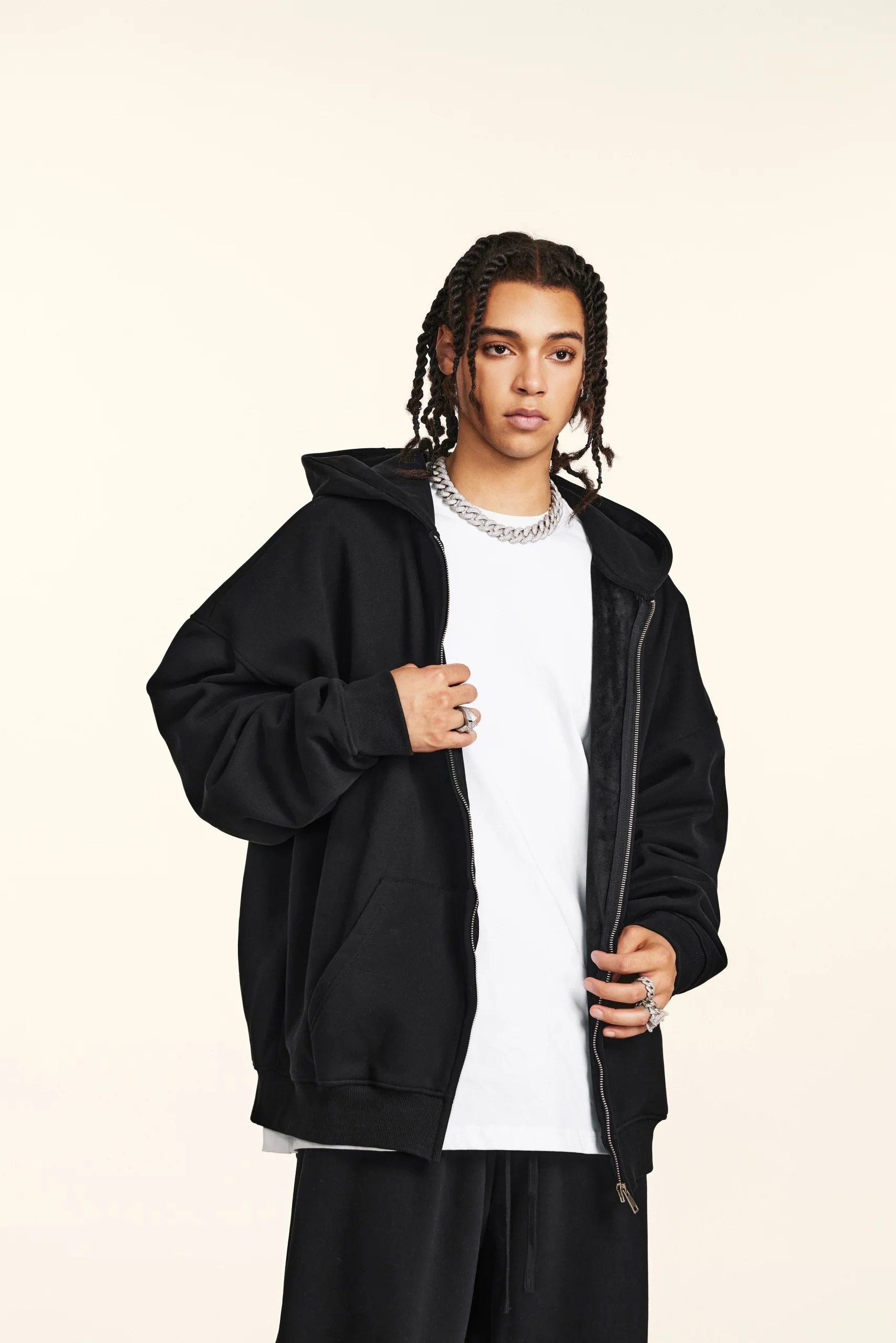 420GSM Men’s Fall/Winter Fleece-Lined Solid-Color Zip-Up Hooded Sweatshirt