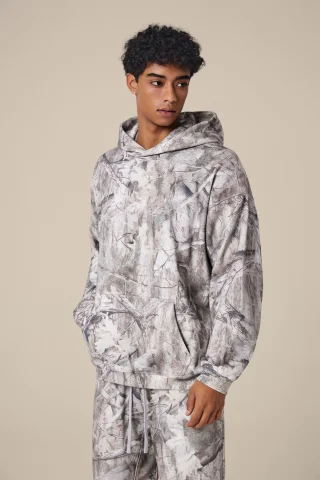 Made with 340GSM mountain fleece that is soft, warm and comfortable for cool weather wear. High density brushed interior provides reliable heat retention while maintaining breathable comfort. Relaxed hooded silhouette with a clean structured hem offers a modern street and outdoor look. Camo print applied through heat transfer technology delivers crisp details, strong color stability and full customization support. Durable easy care fabric designed for daily use in outdoor, street and casual settings. Ideal for customers who prefer functional military inspired styles and comfortable everyday layering.
