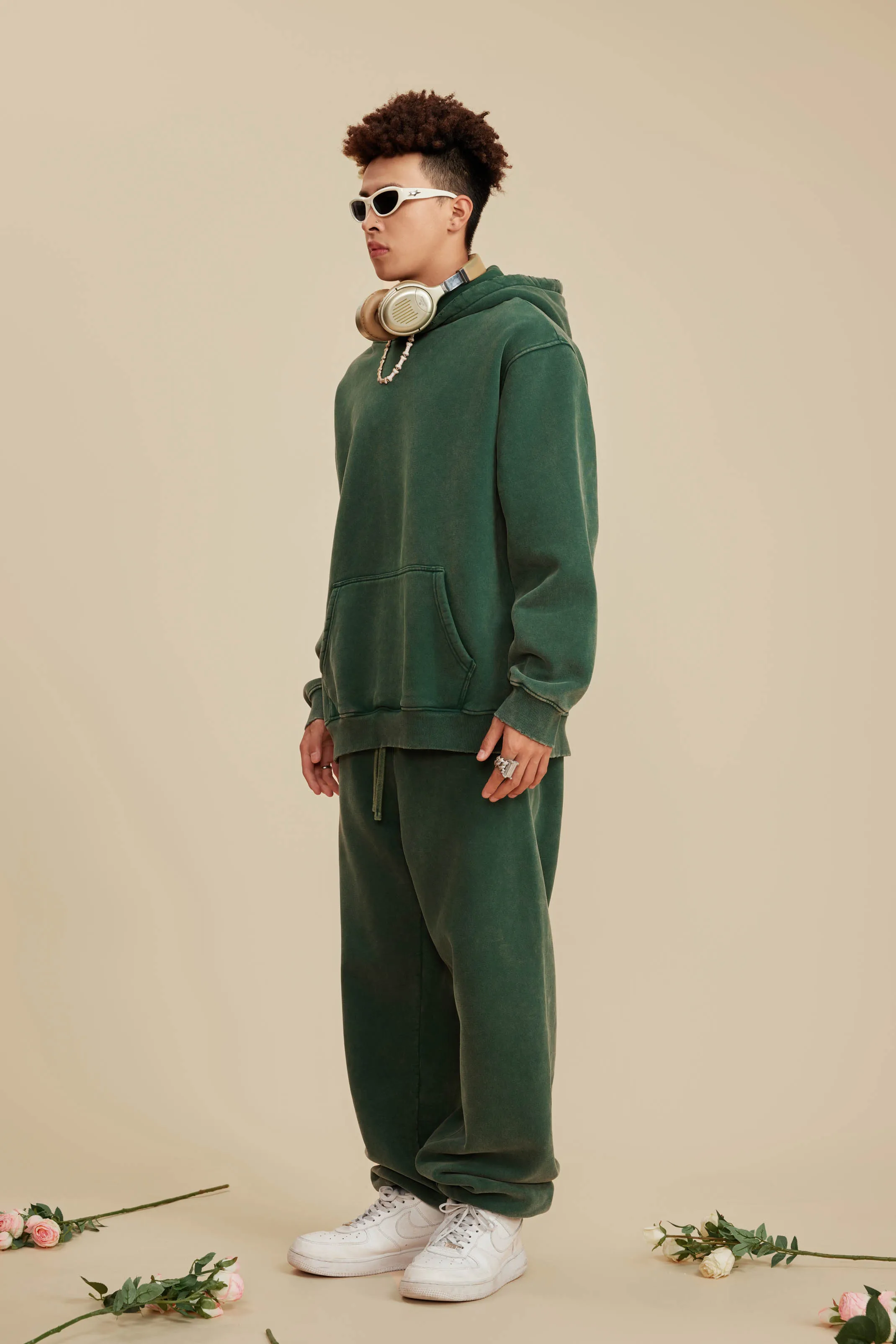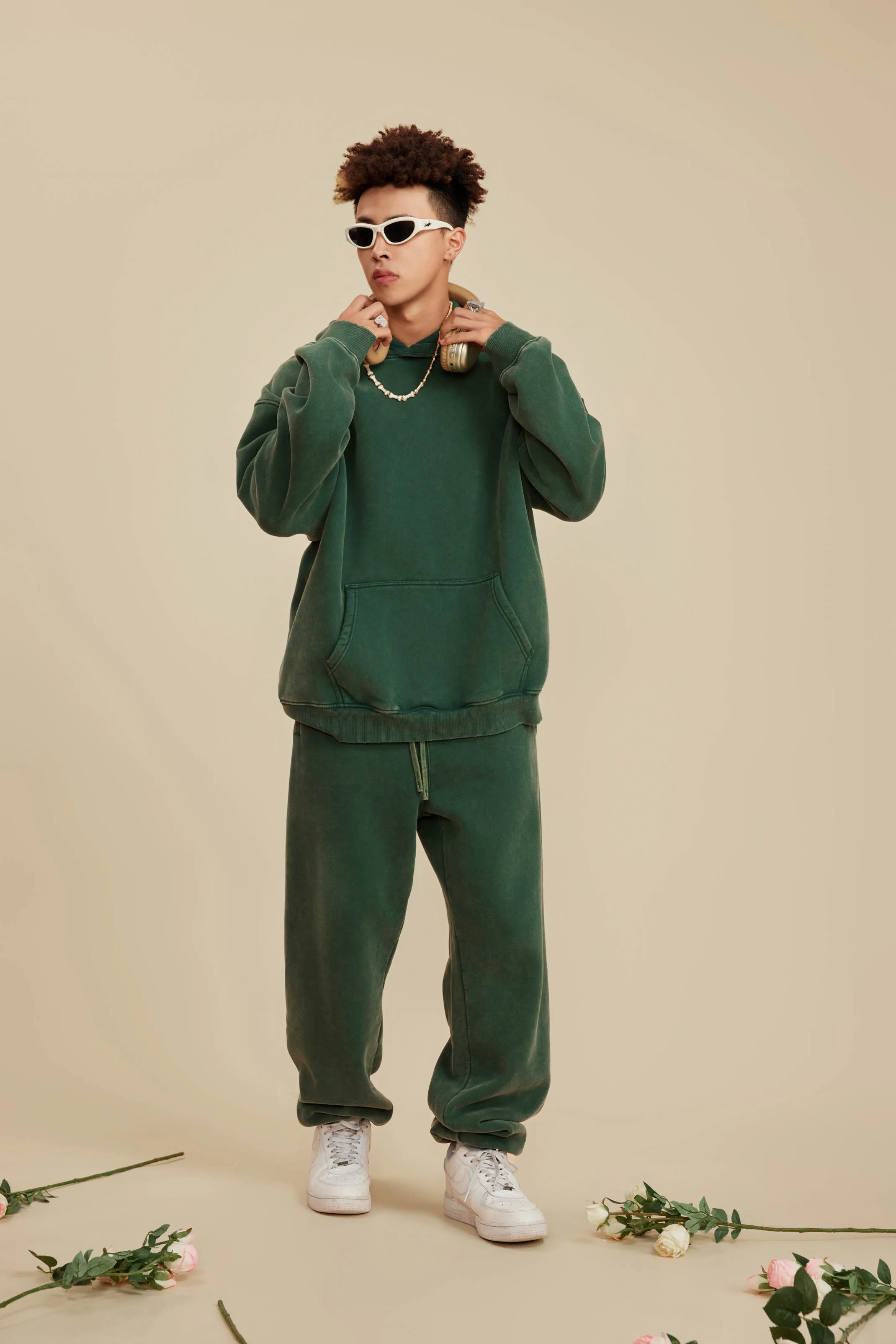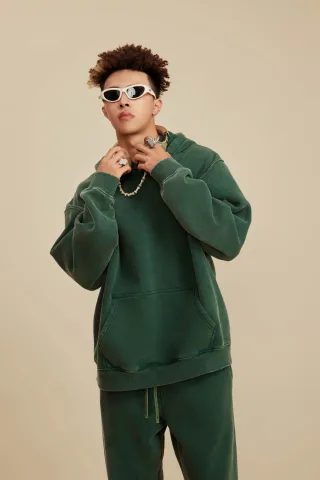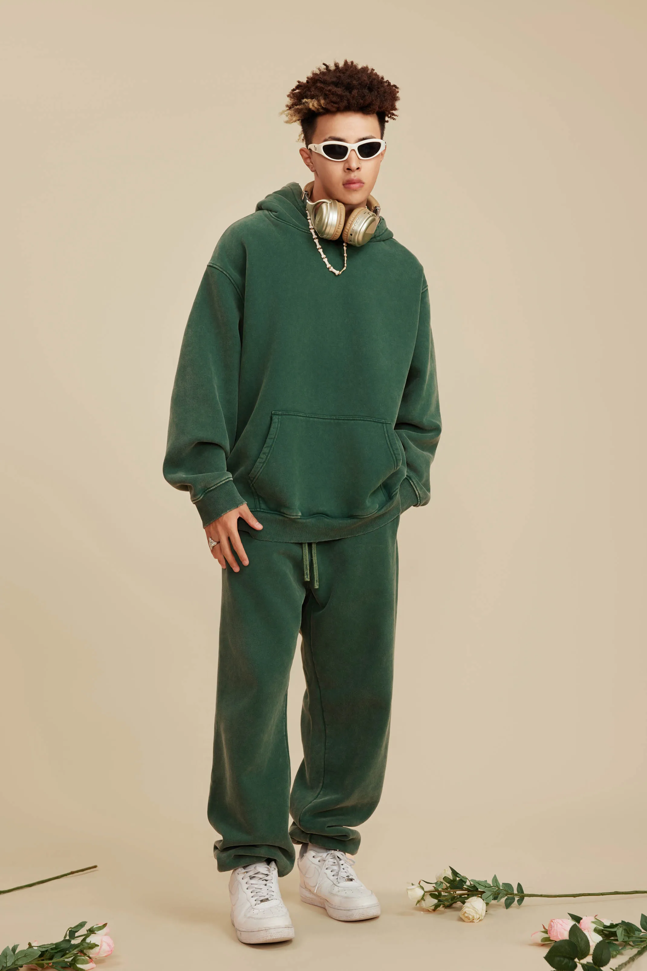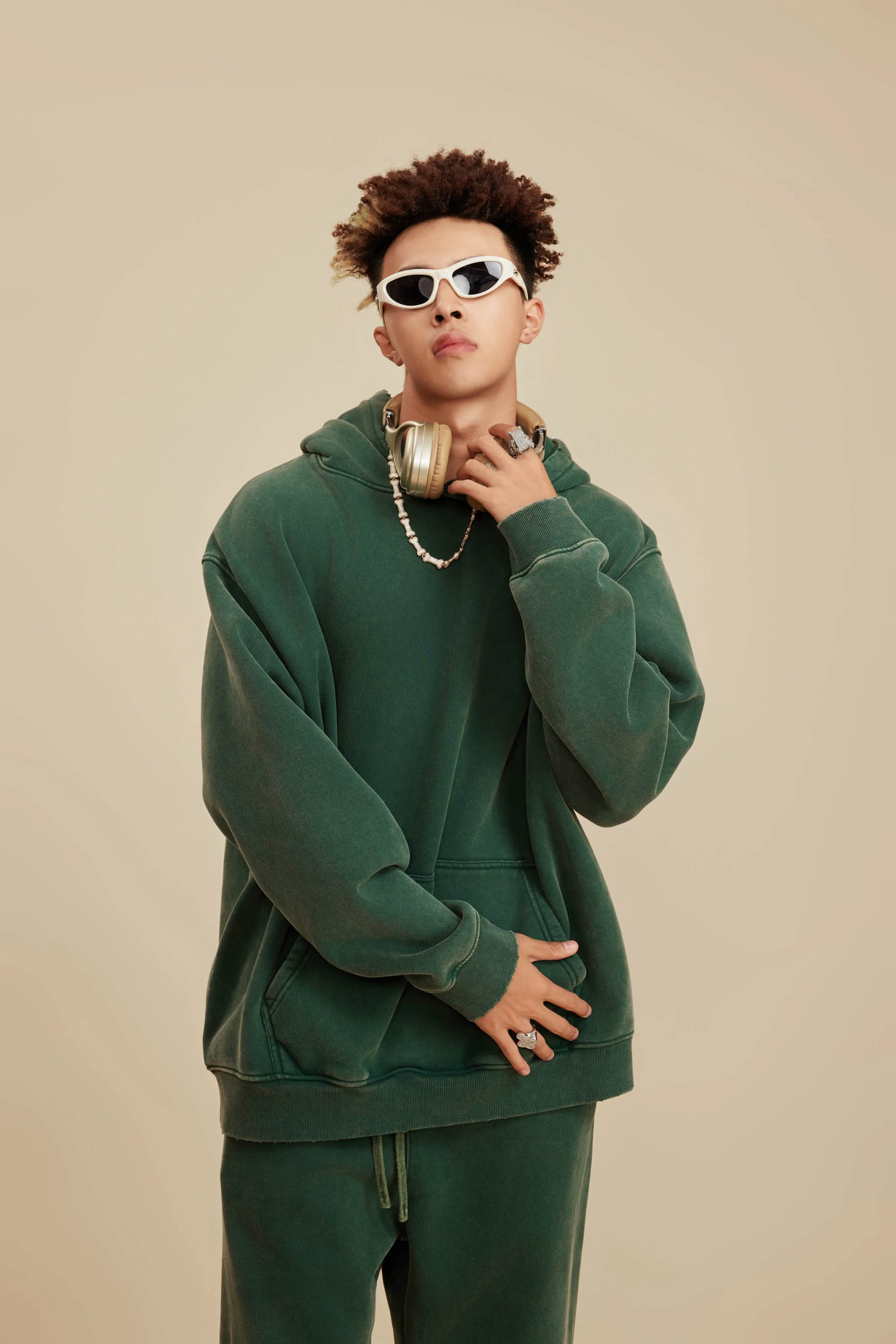 This heavyweight washed hoodie keeps you warm and protected from the wind while looking effortlessly stylish. The relaxed oversized fit with smooth lines makes it comfortable and flattering for all body types. The front kangaroo pocket is both practical and cool, perfect for keeping essentials close at hand. Finished with a heavy washed vintage treatment, it gives the fabric a rich, layered tone and a retro street vibe—instantly adding bold character to your everyday look.