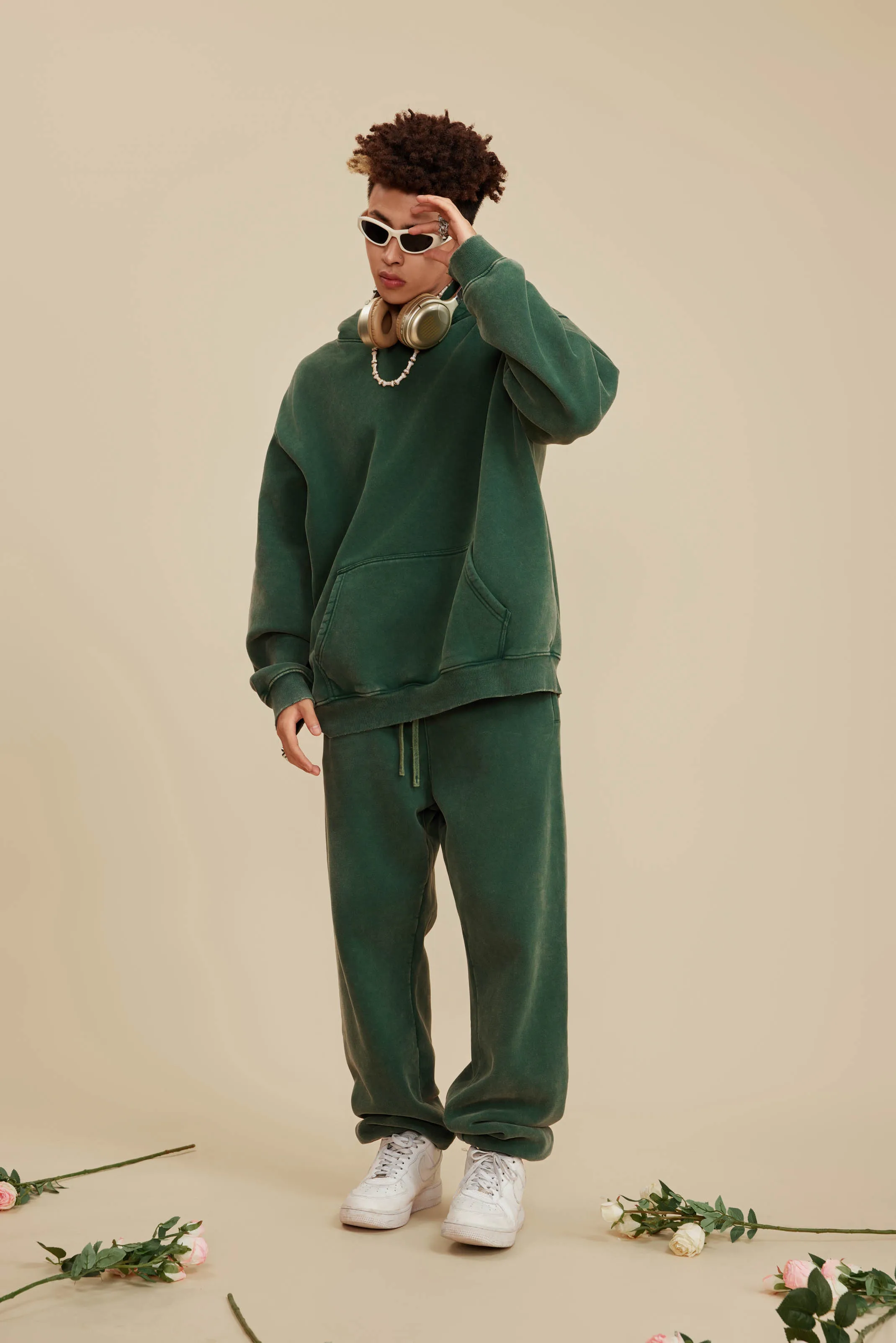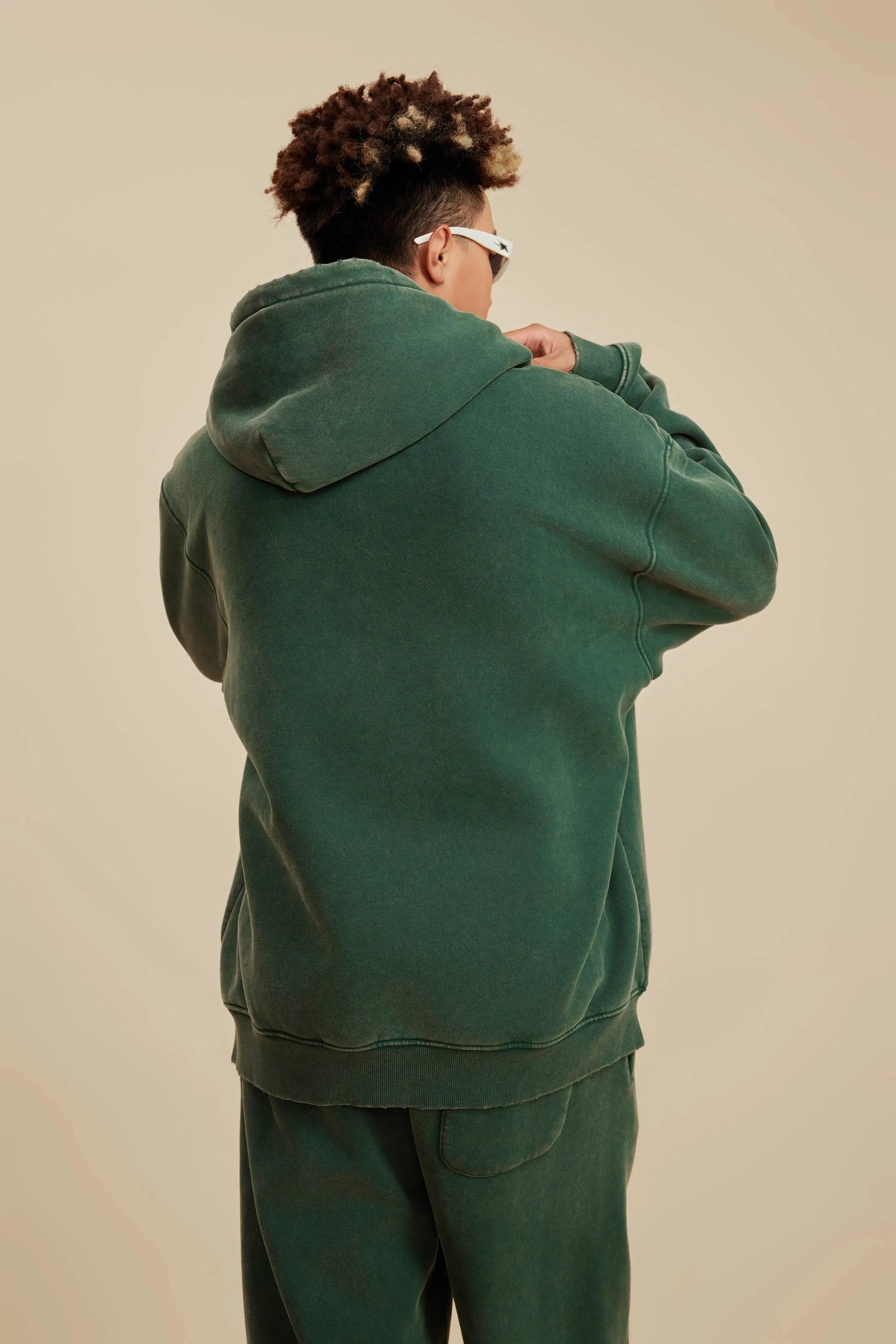 400GSM Unisex Heavyweight Distressed Snow-Wash Hooded Sweatshirt