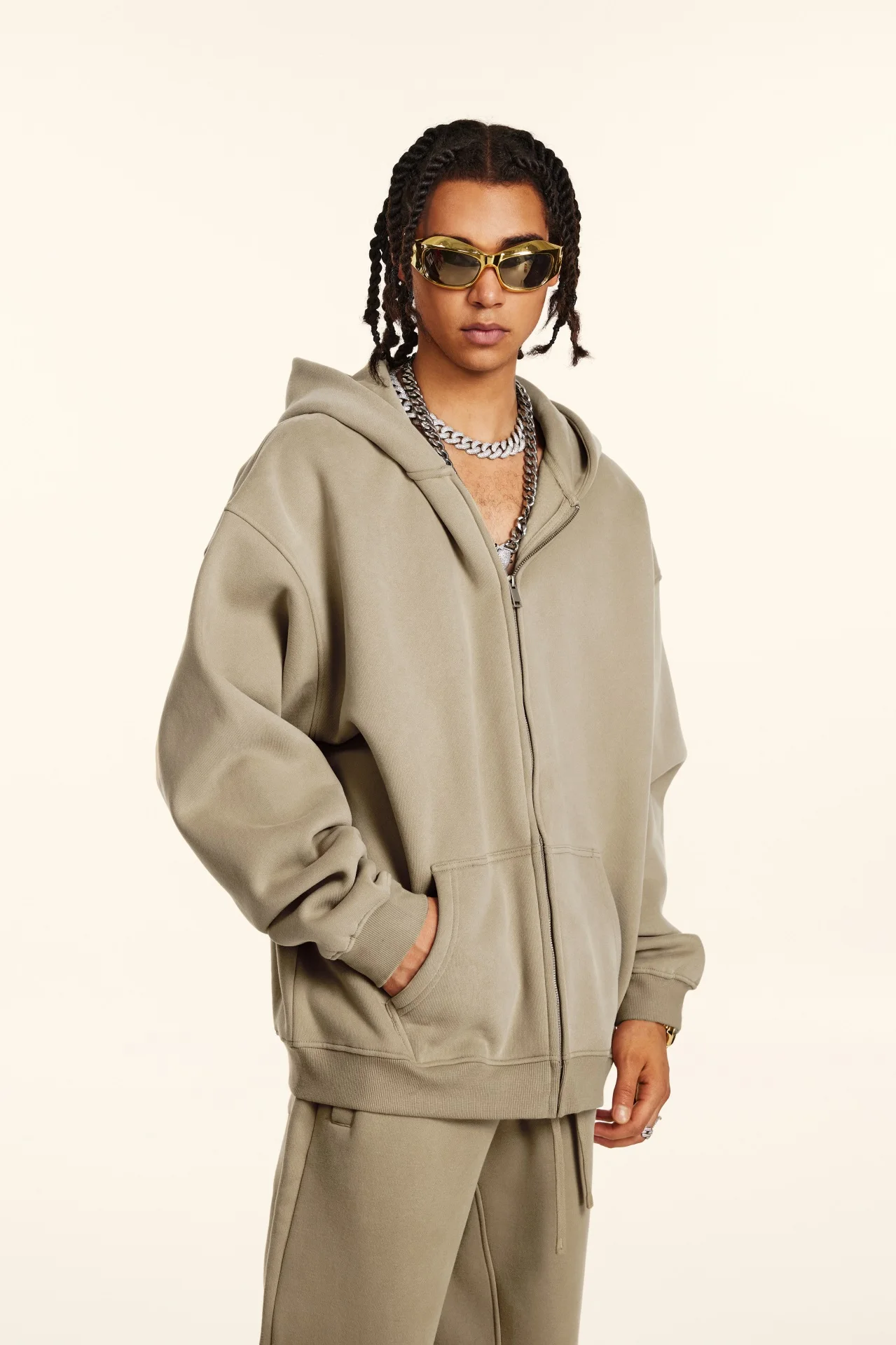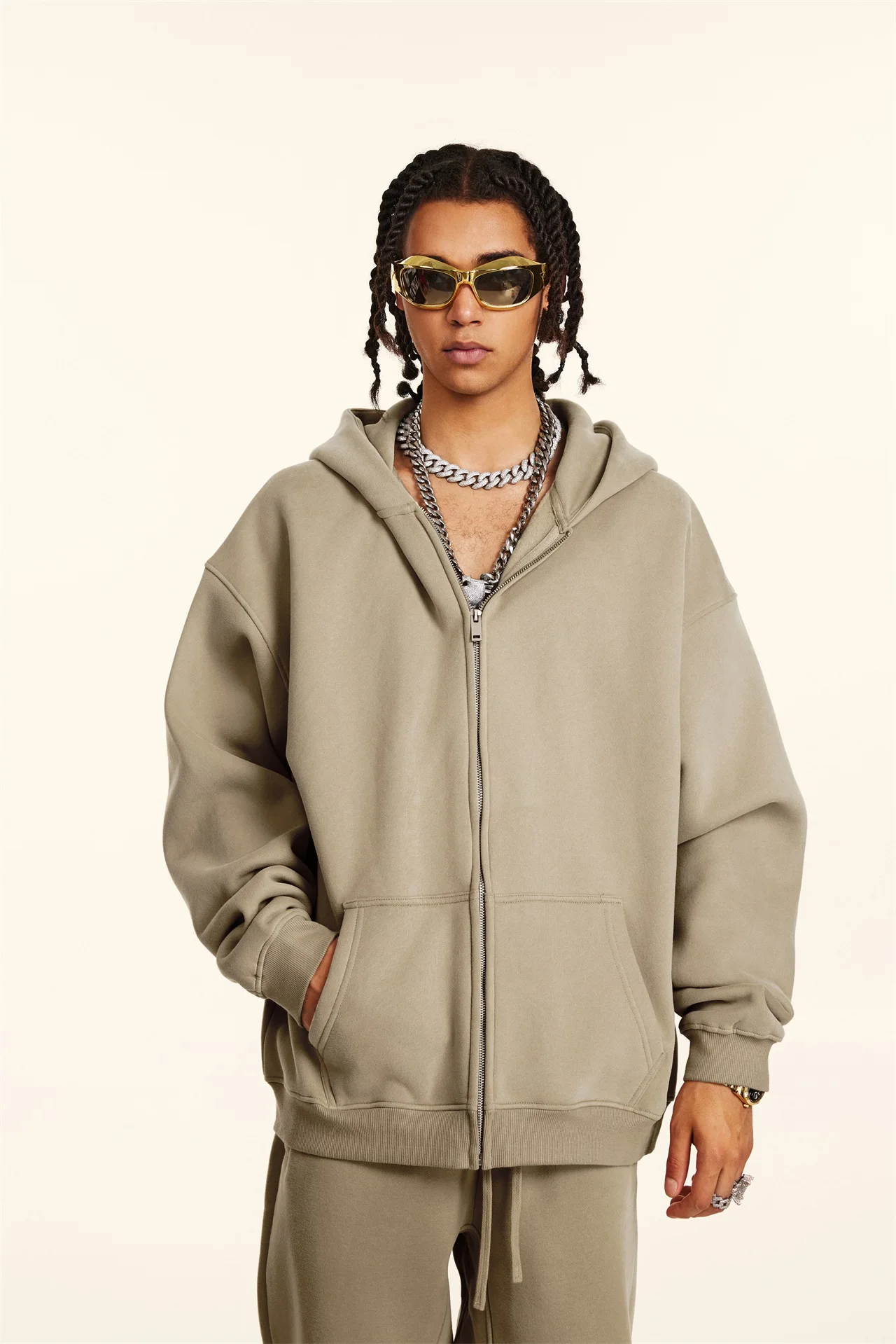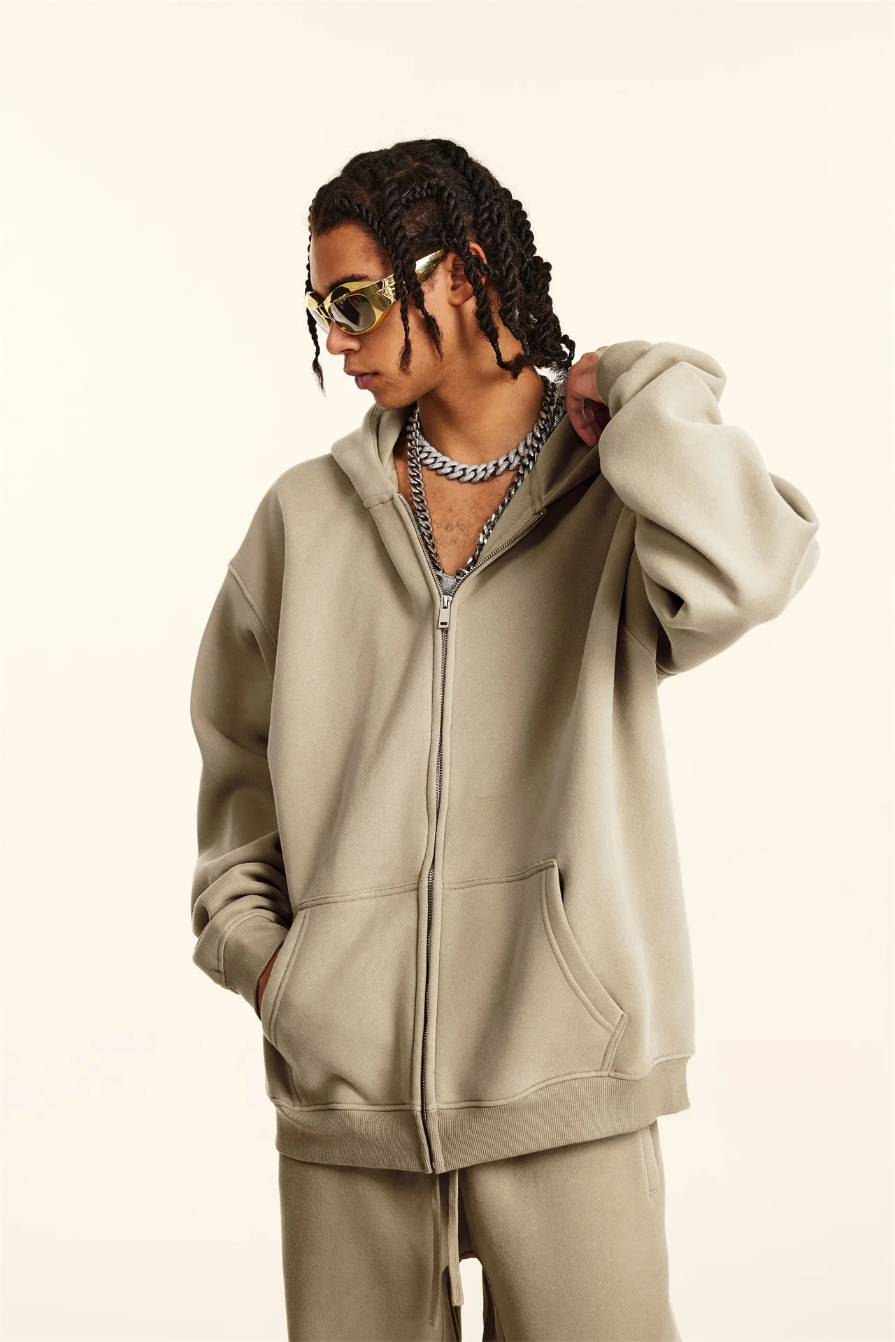 345GSM Men’s Fleece-Lined Solid-Color Zip-Up Hooded Sweatshirt