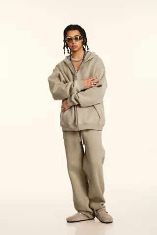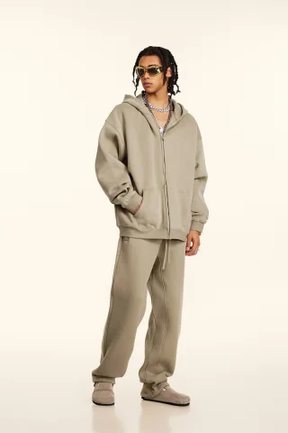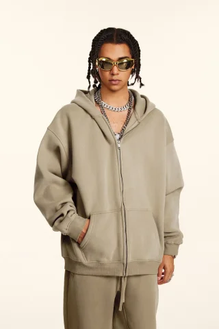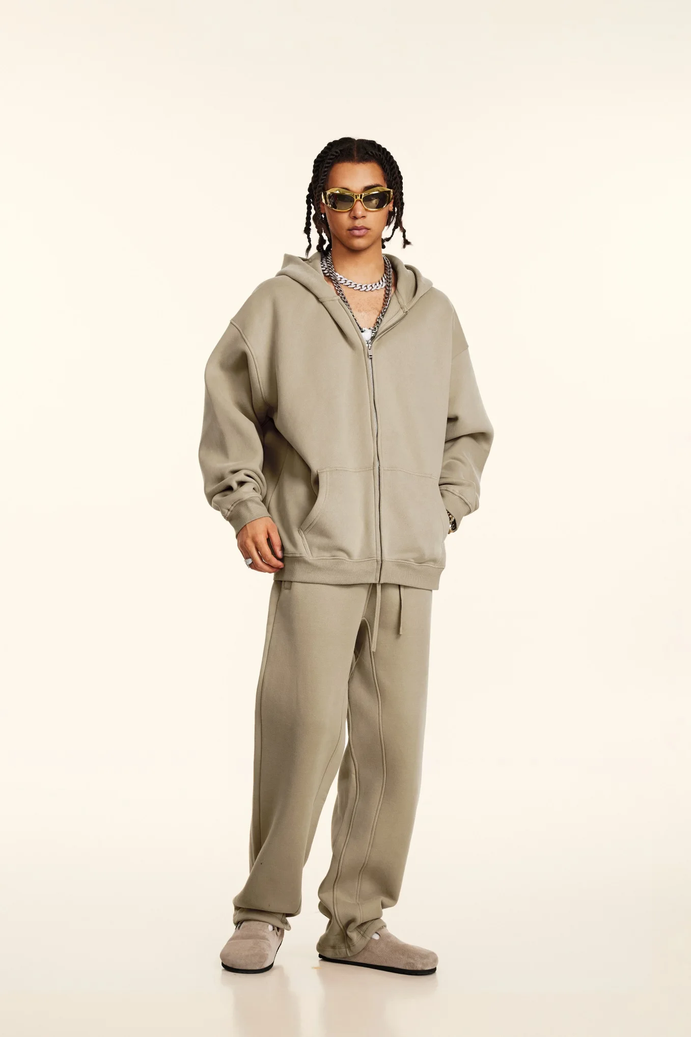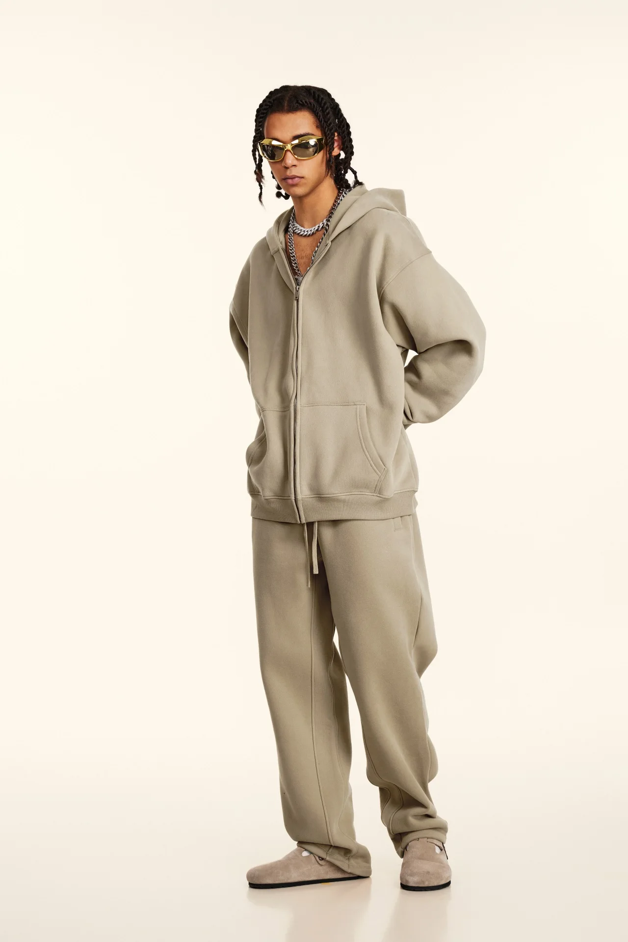 345GSM Men’s Fleece-Lined Solid-Color Zip-Up Hooded Sweatshirt