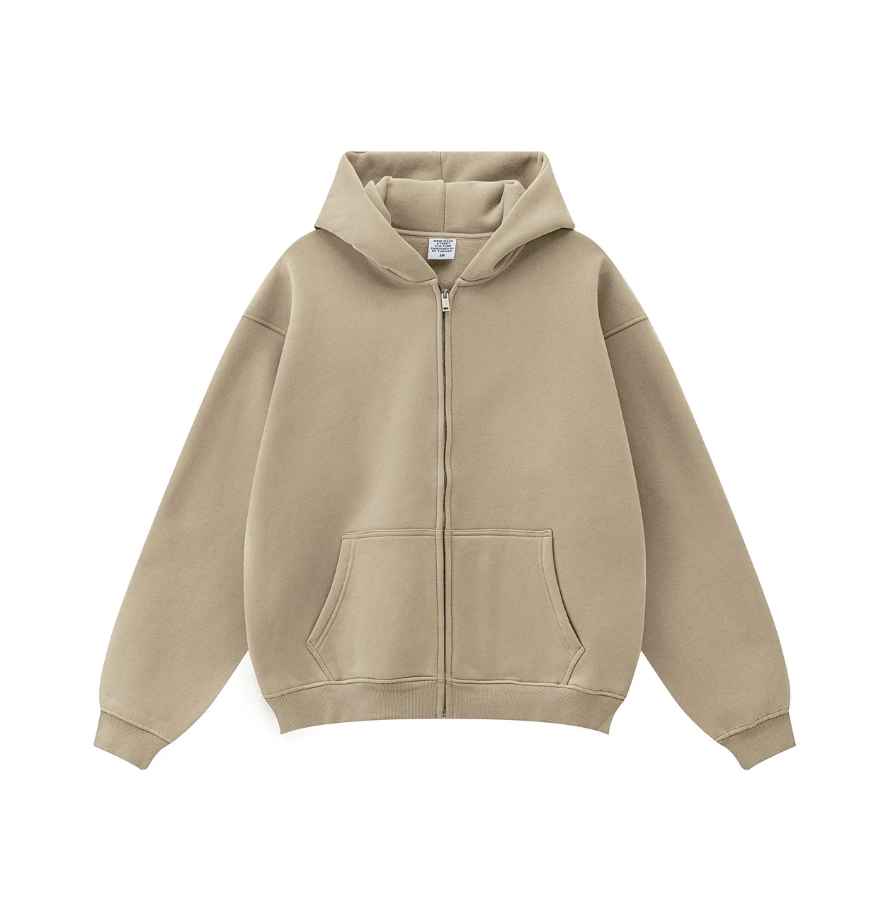 345GSM Unisex Fall/Winter New Fleece-Lined Solid-Color Zip-Up Hooded Sweatshirt