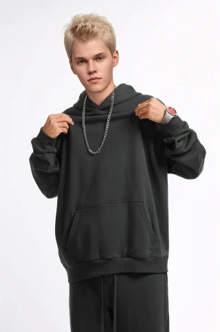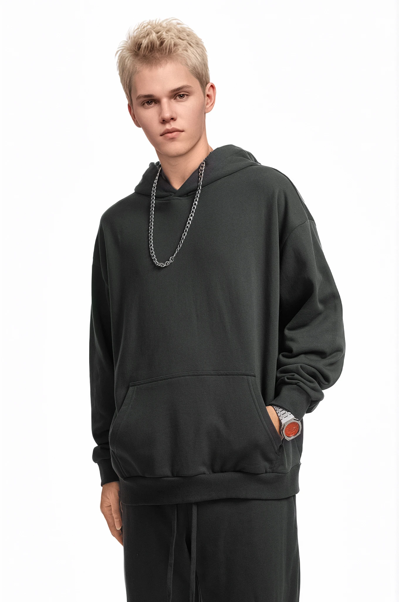 345GSM Men's Fleece-Lined Solid-Color Hooded Sweatshirt