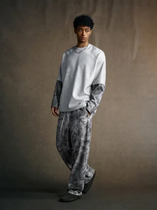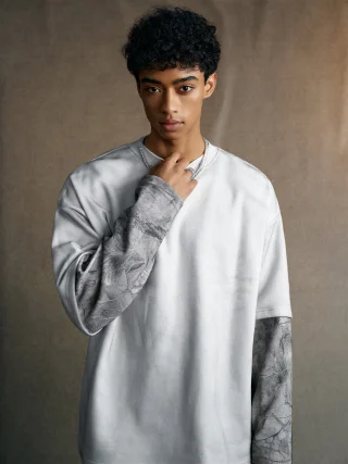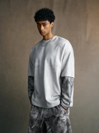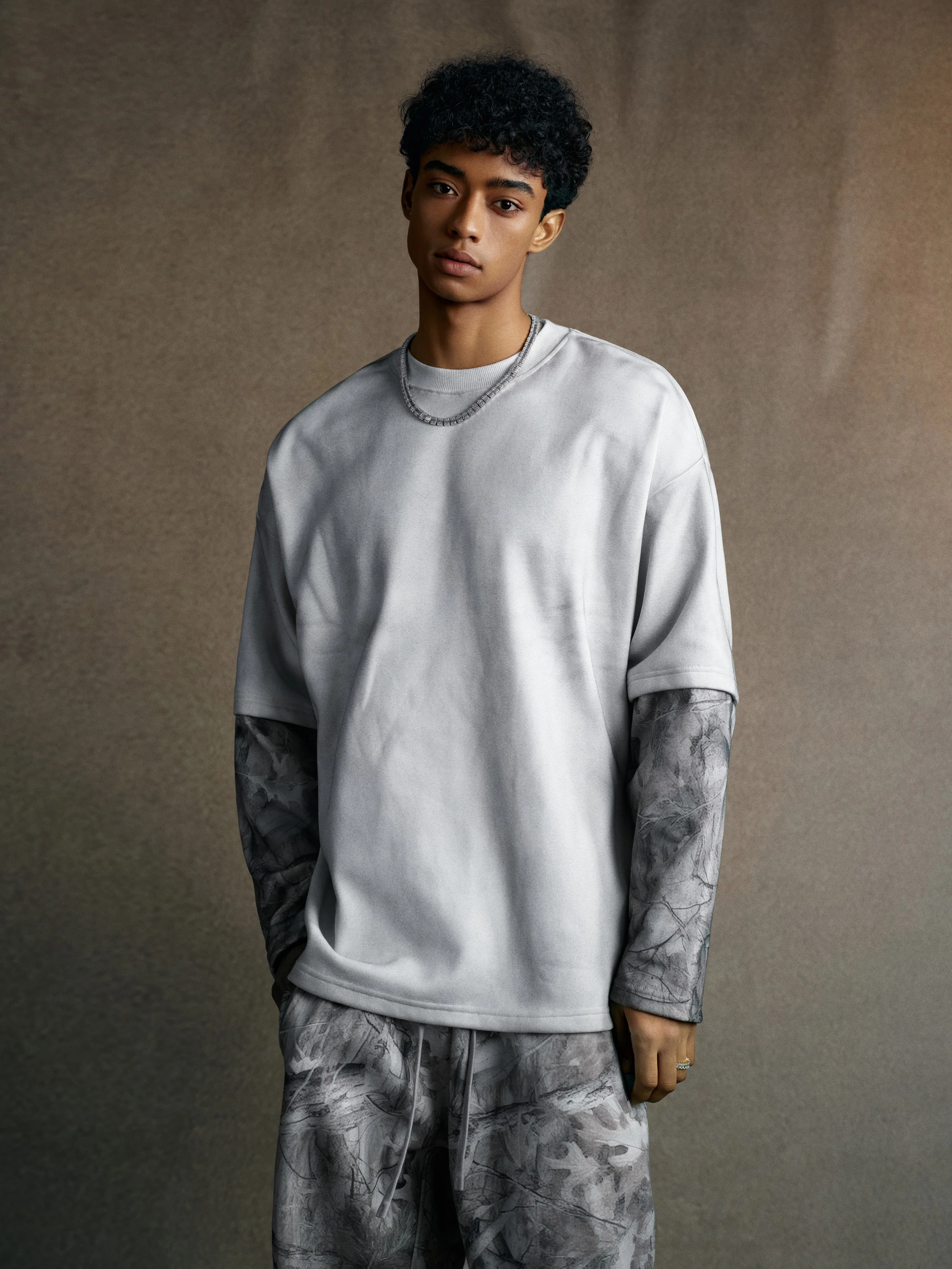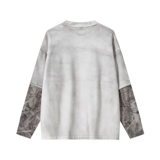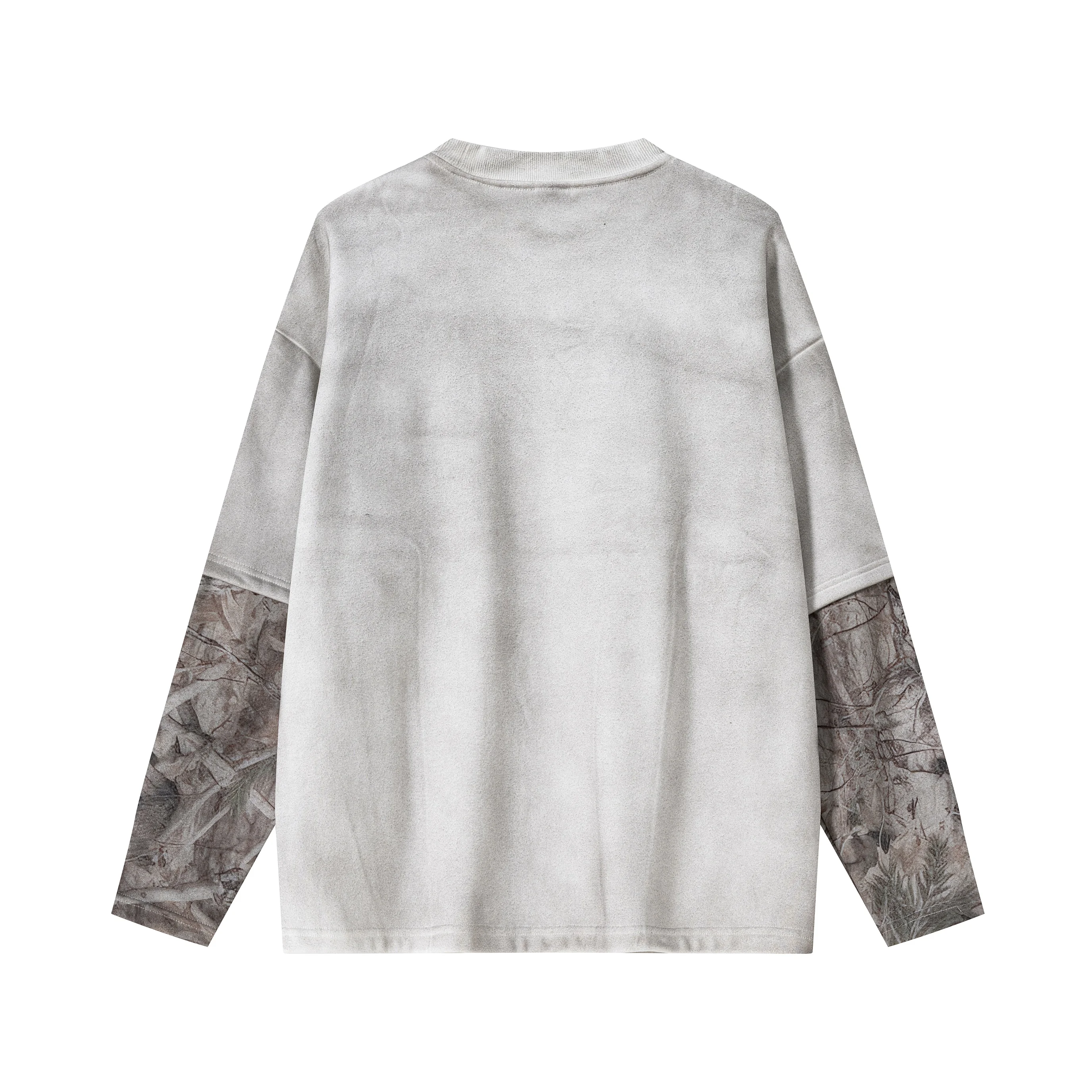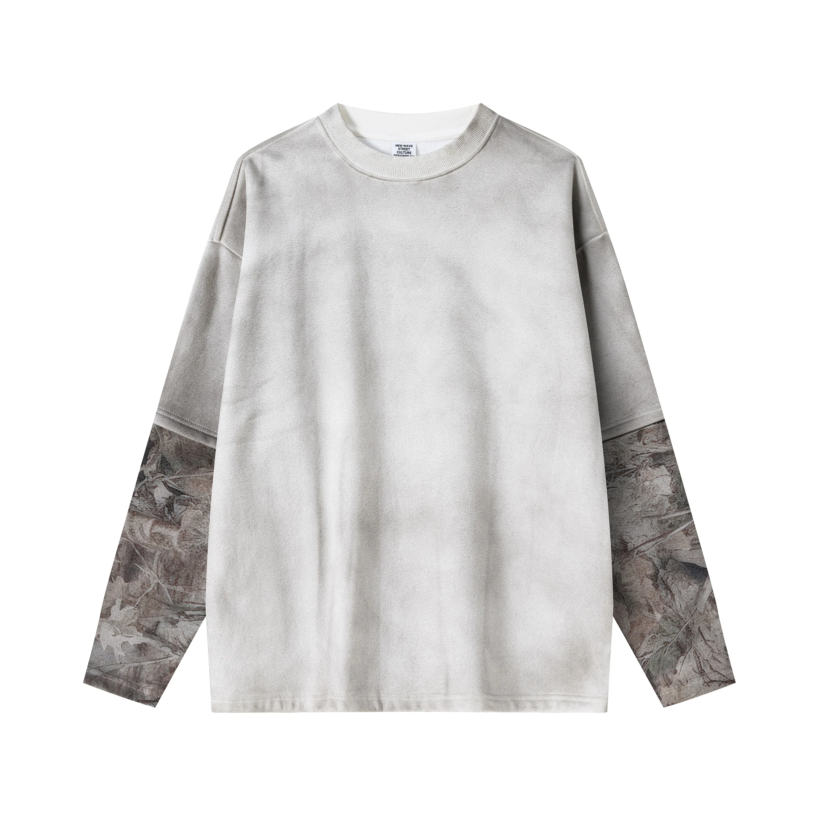 340GSM Men’s Heat-Transfer Desert Camouflage Faux-Two-Piece Long-Sleeve T-shirt