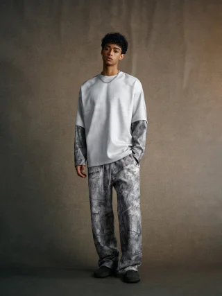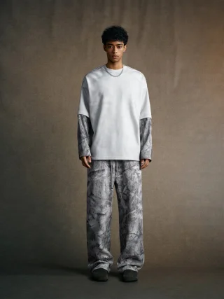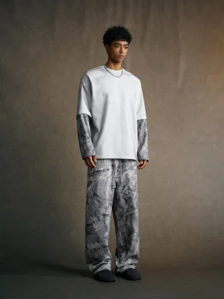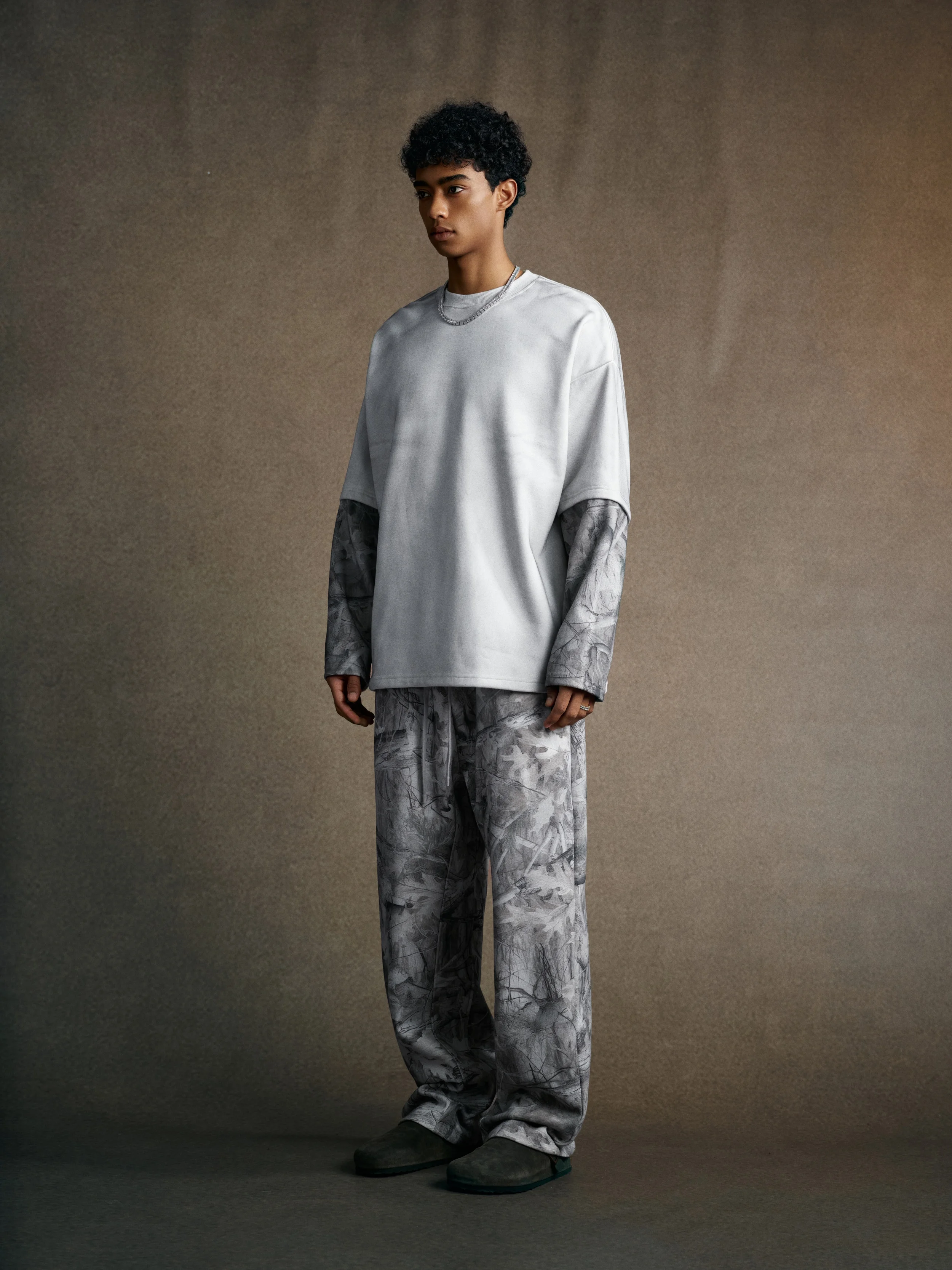 340GSM Men’s Heat Transfer Desert Camouflage Layered Look Long-Sleeve T-Shirt