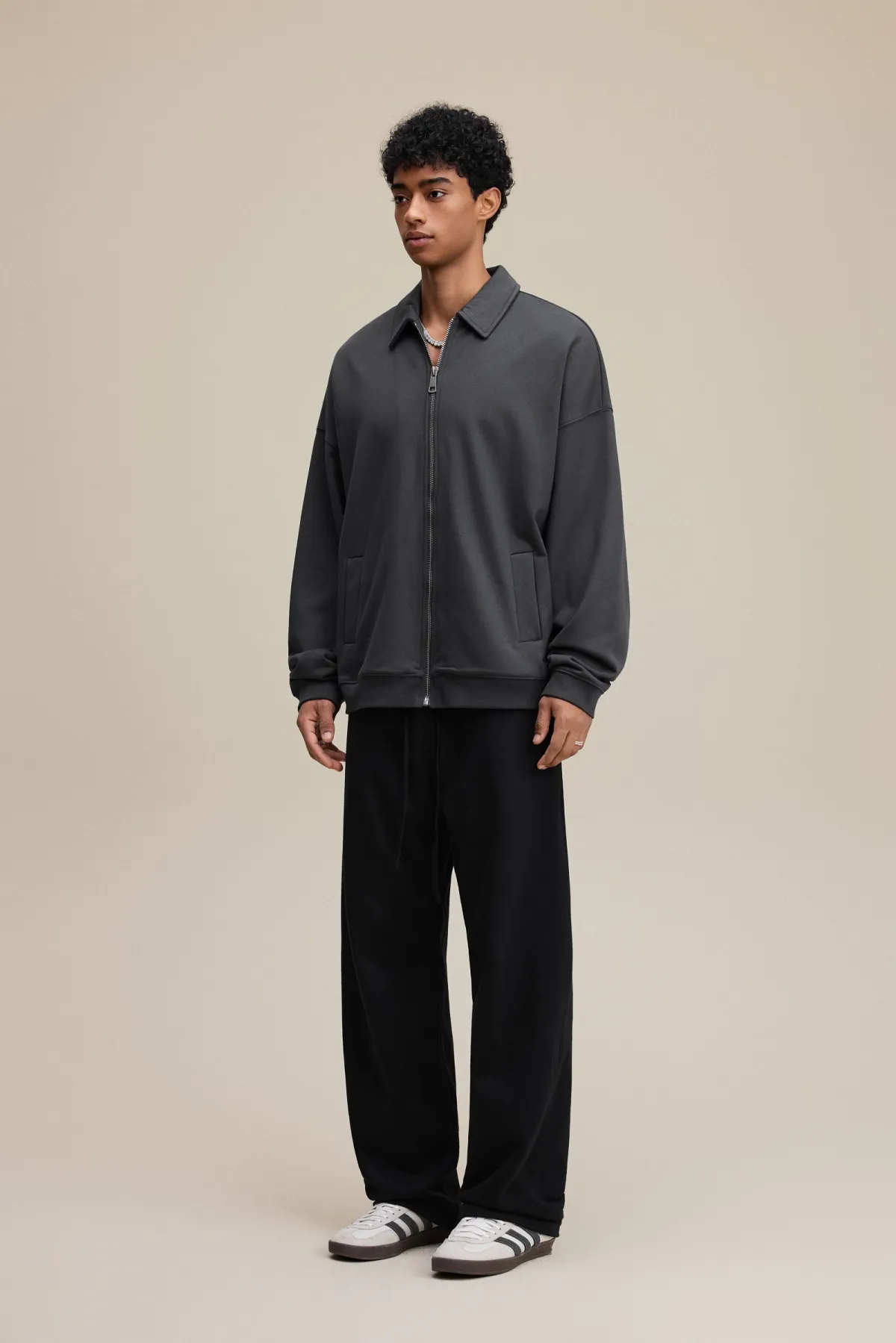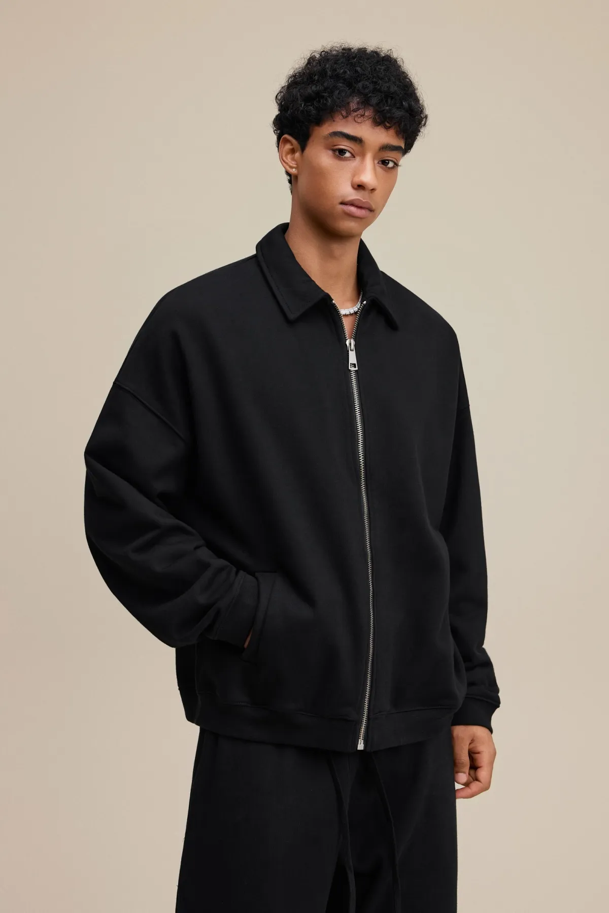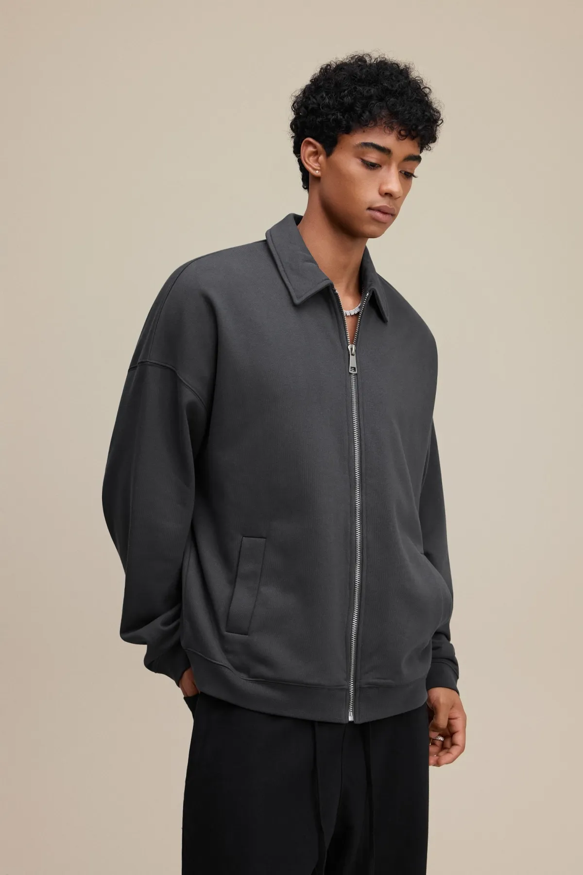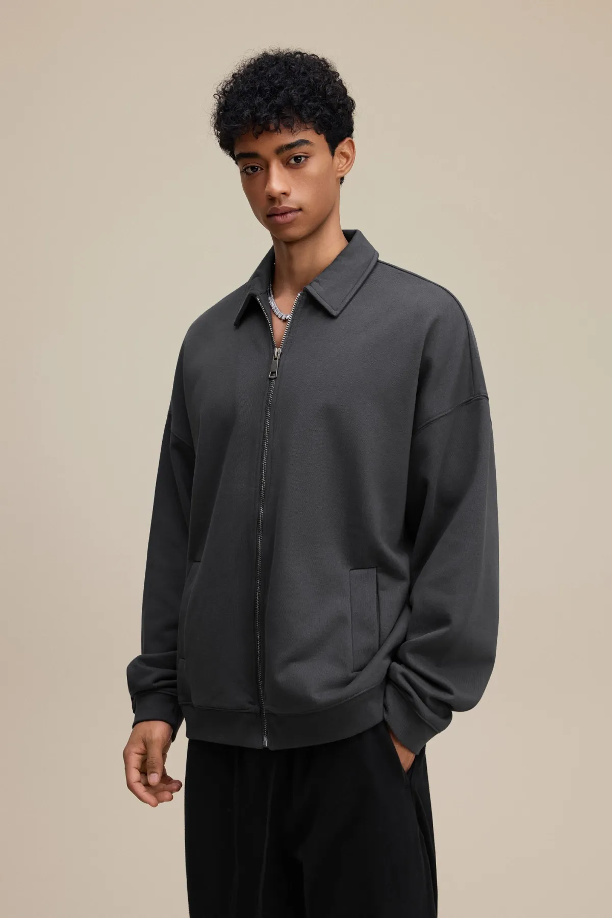 The drop-shoulder design and relaxed silhouette create an effortless, casual fit suitable for layering.