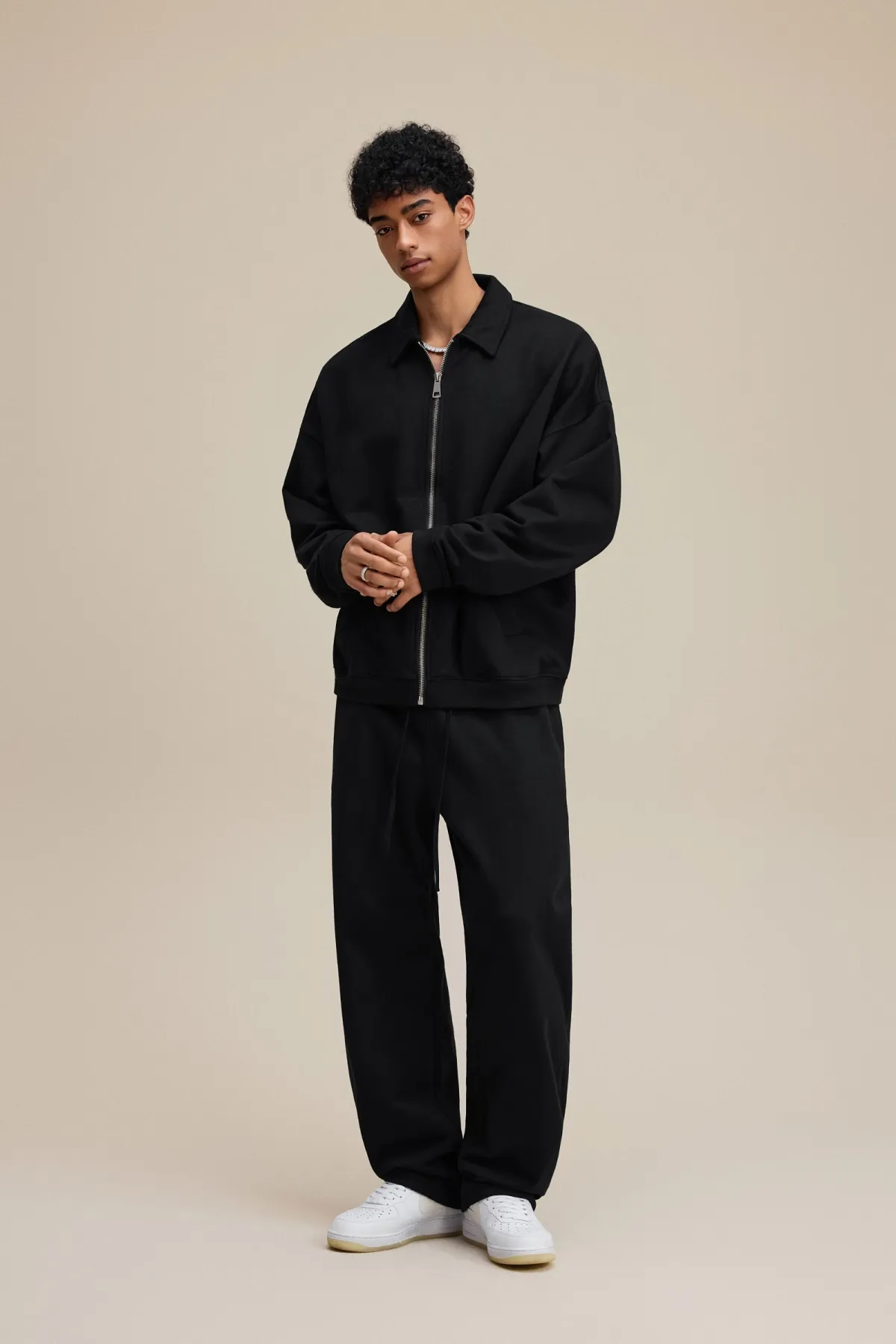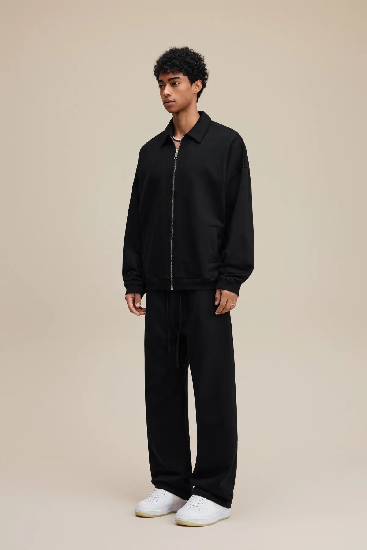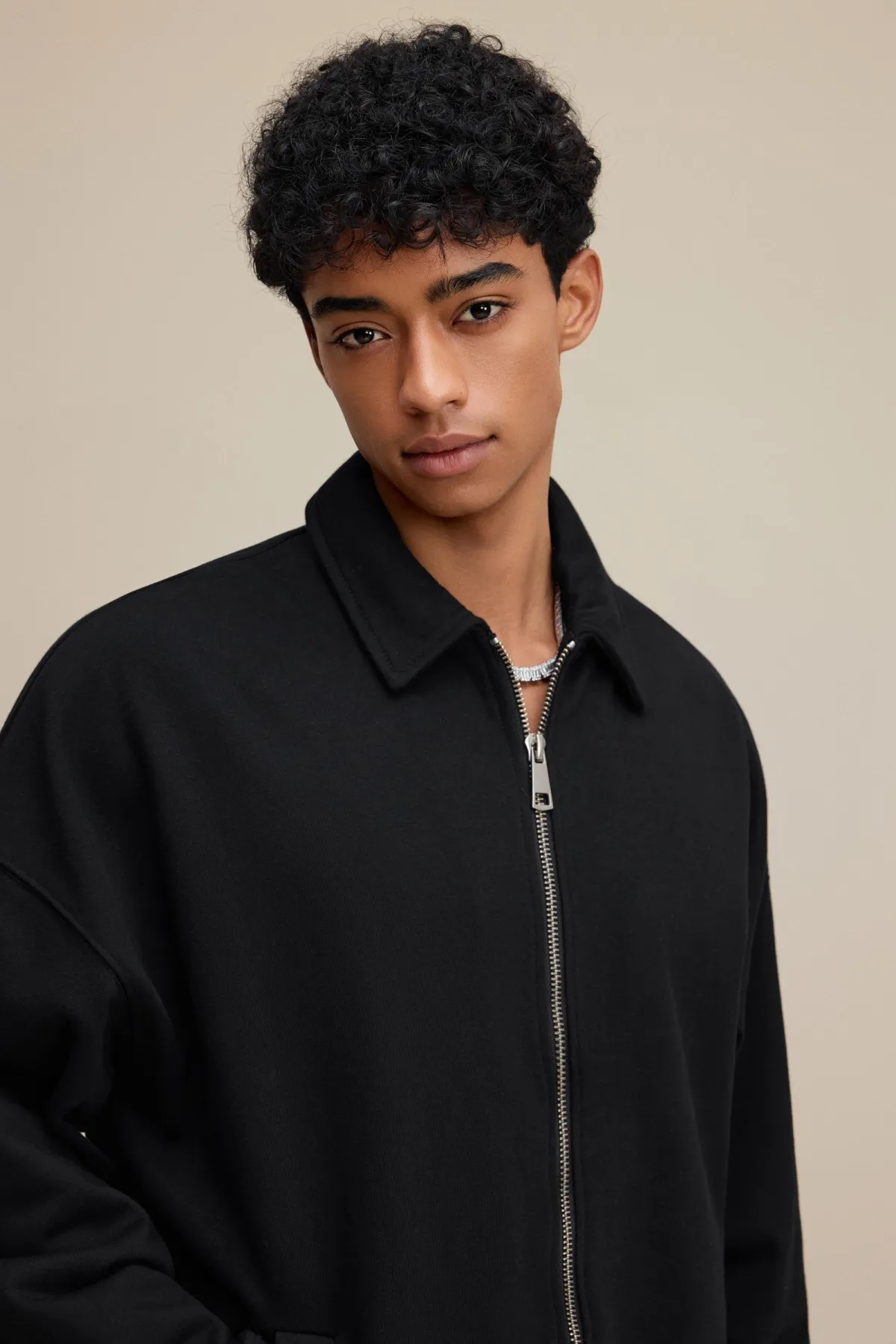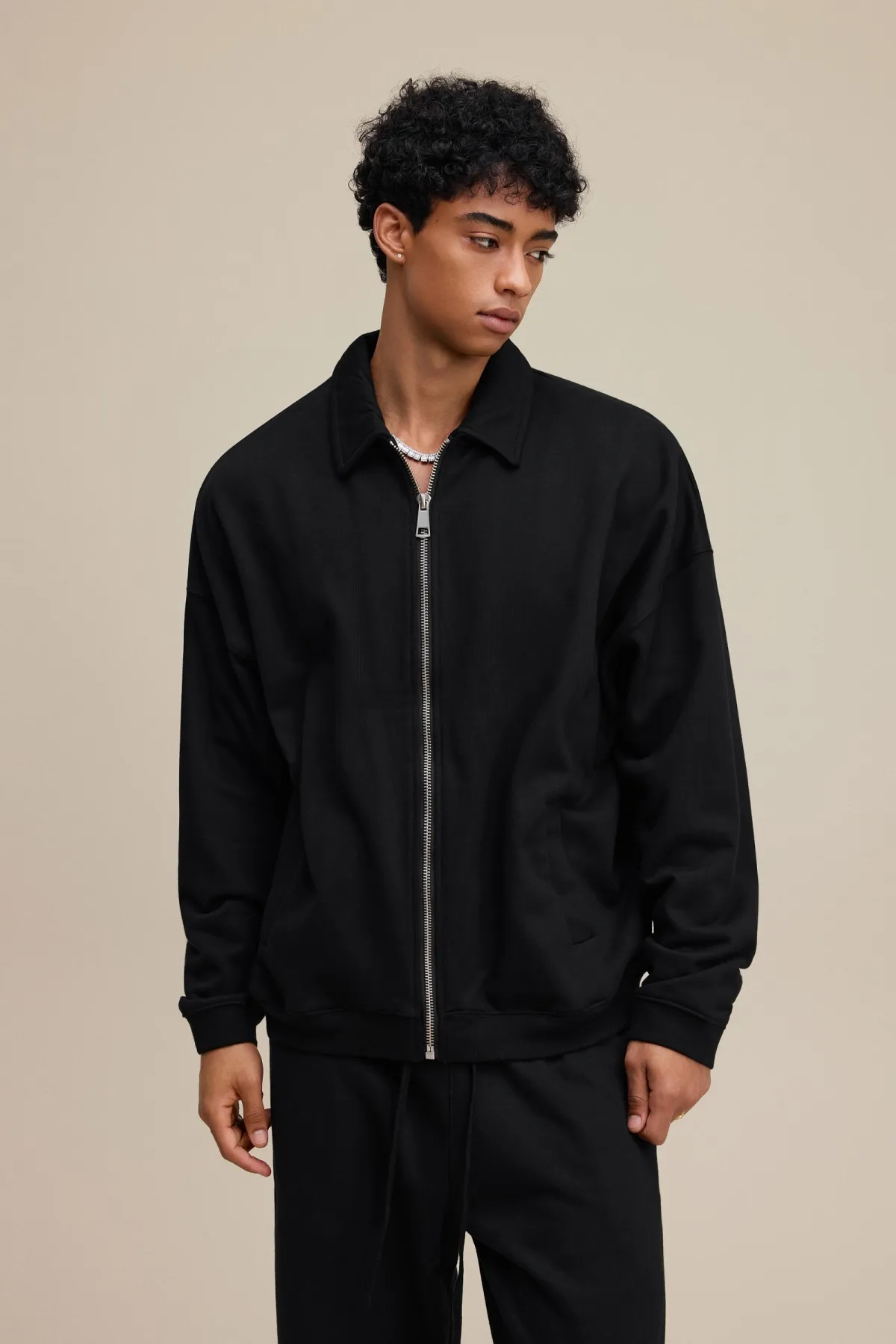 The drop-shoulder design and relaxed silhouette create an effortless, casual fit suitable for layering.