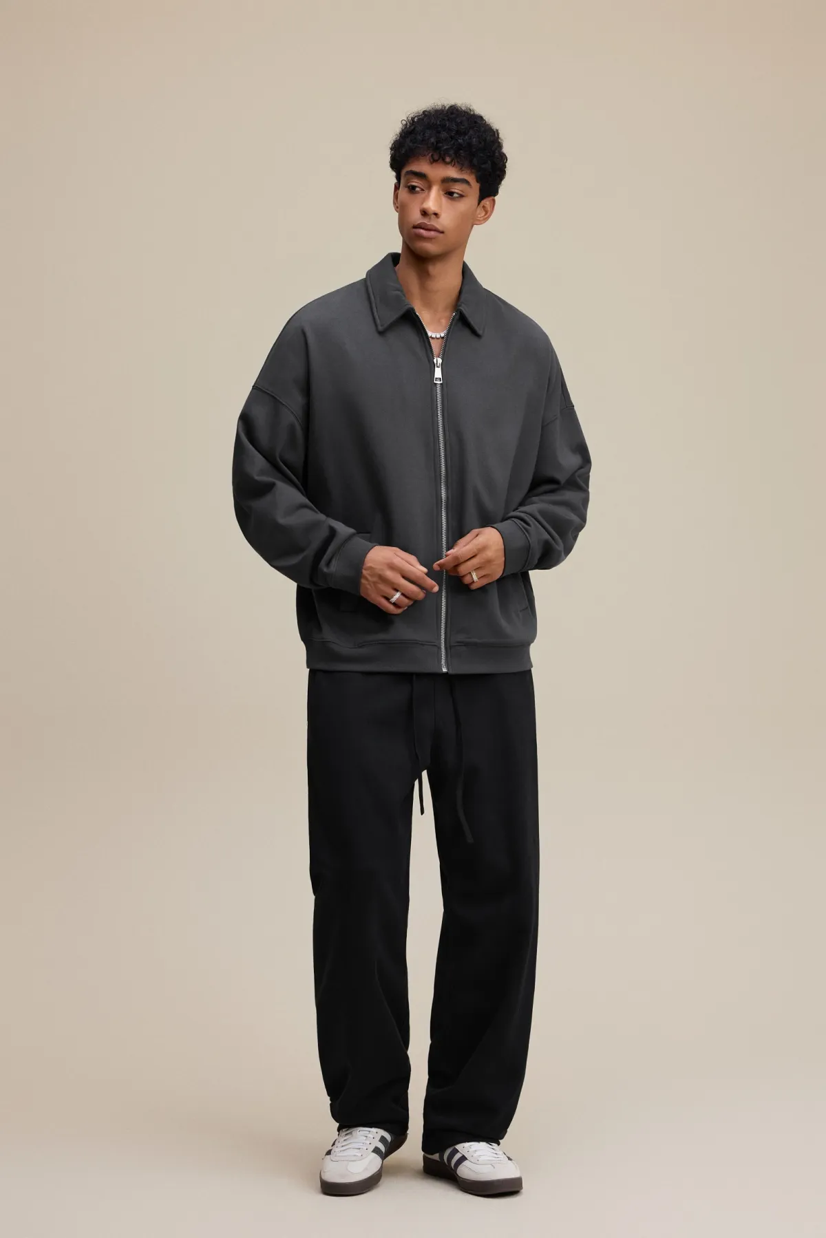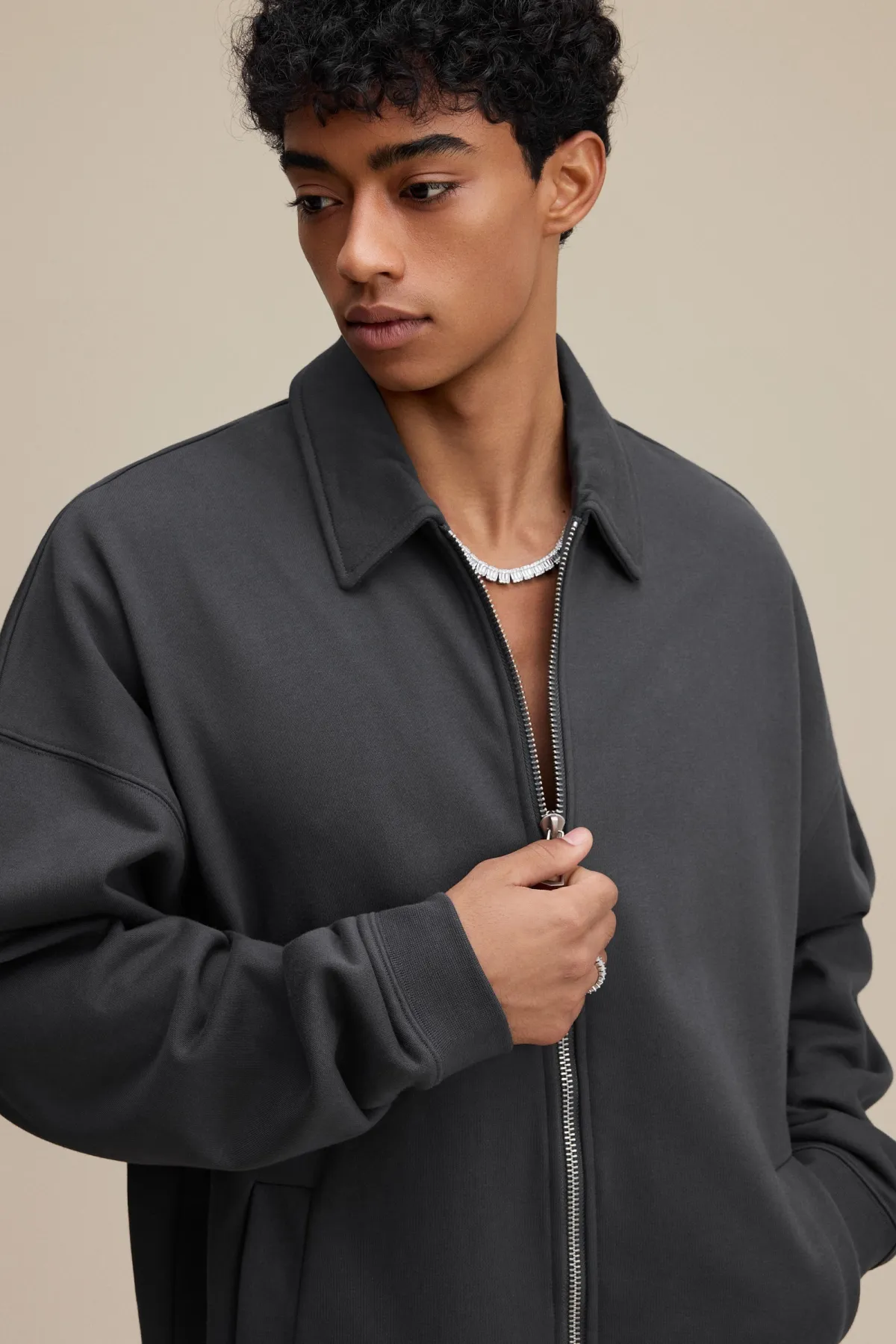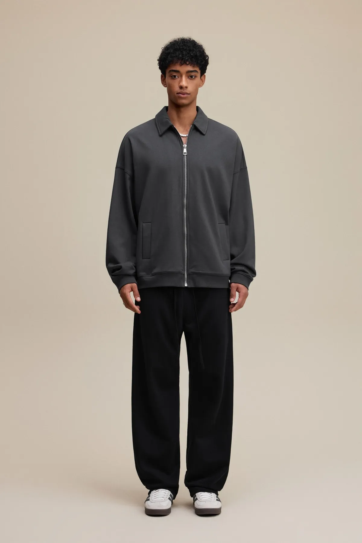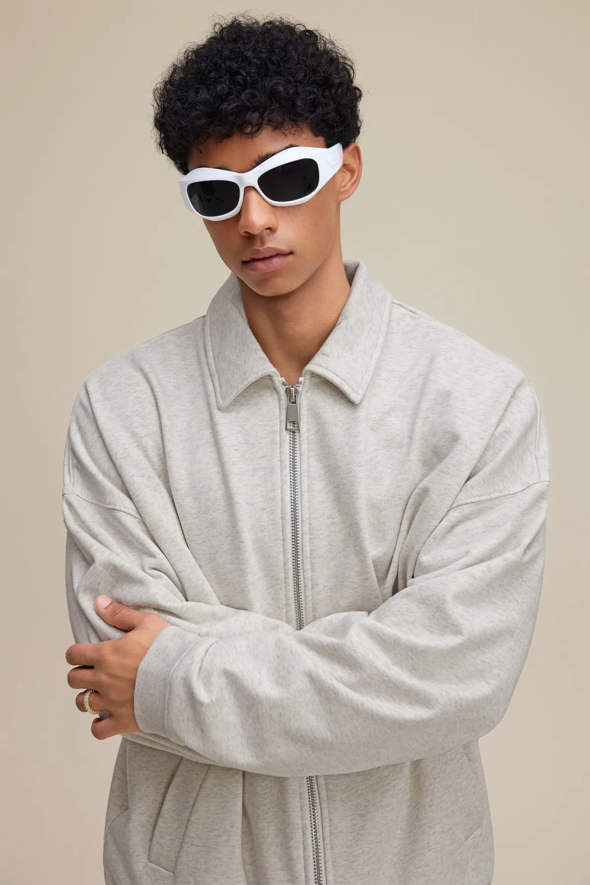 The drop-shoulder design and relaxed silhouette create an effortless, casual fit suitable for layering.