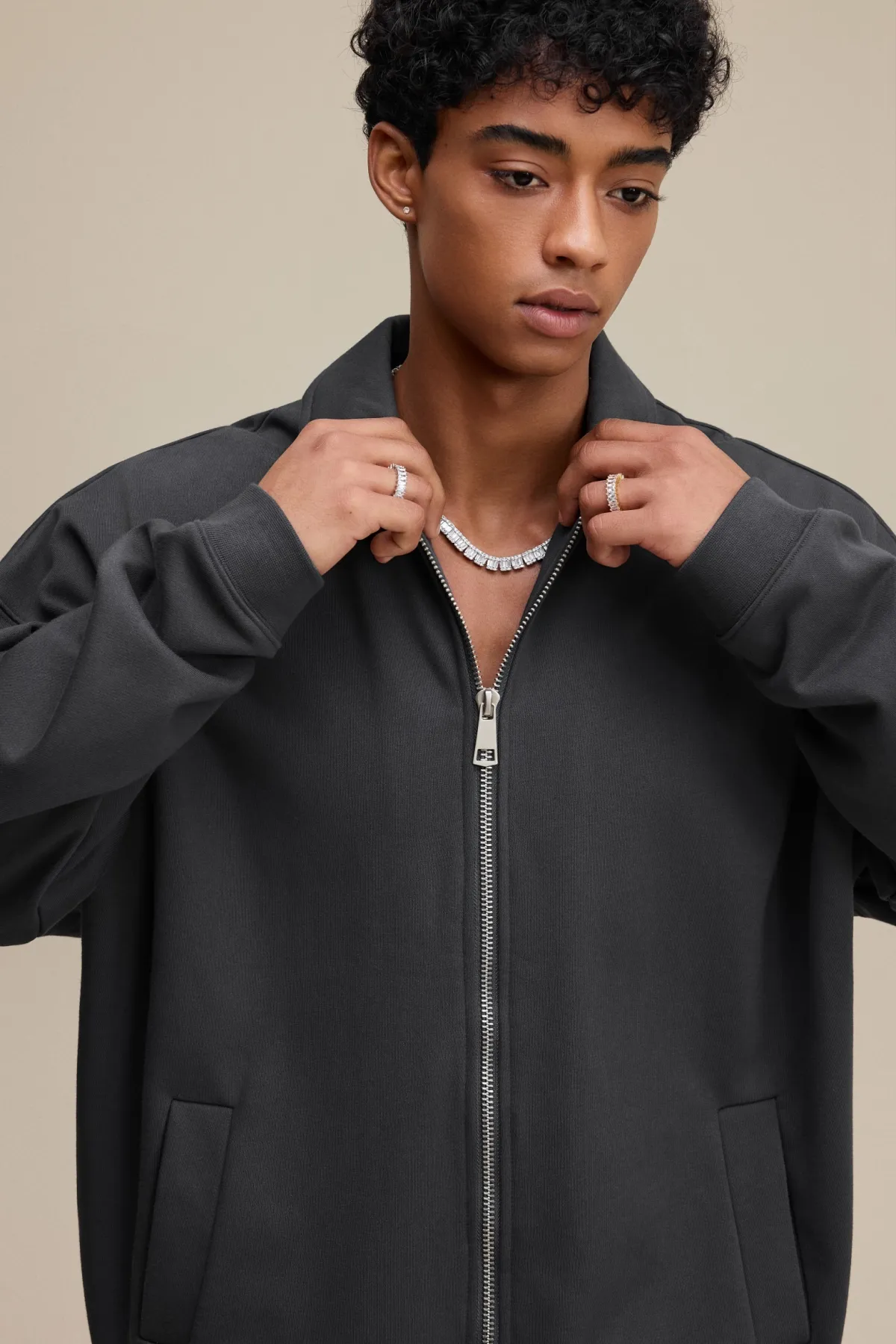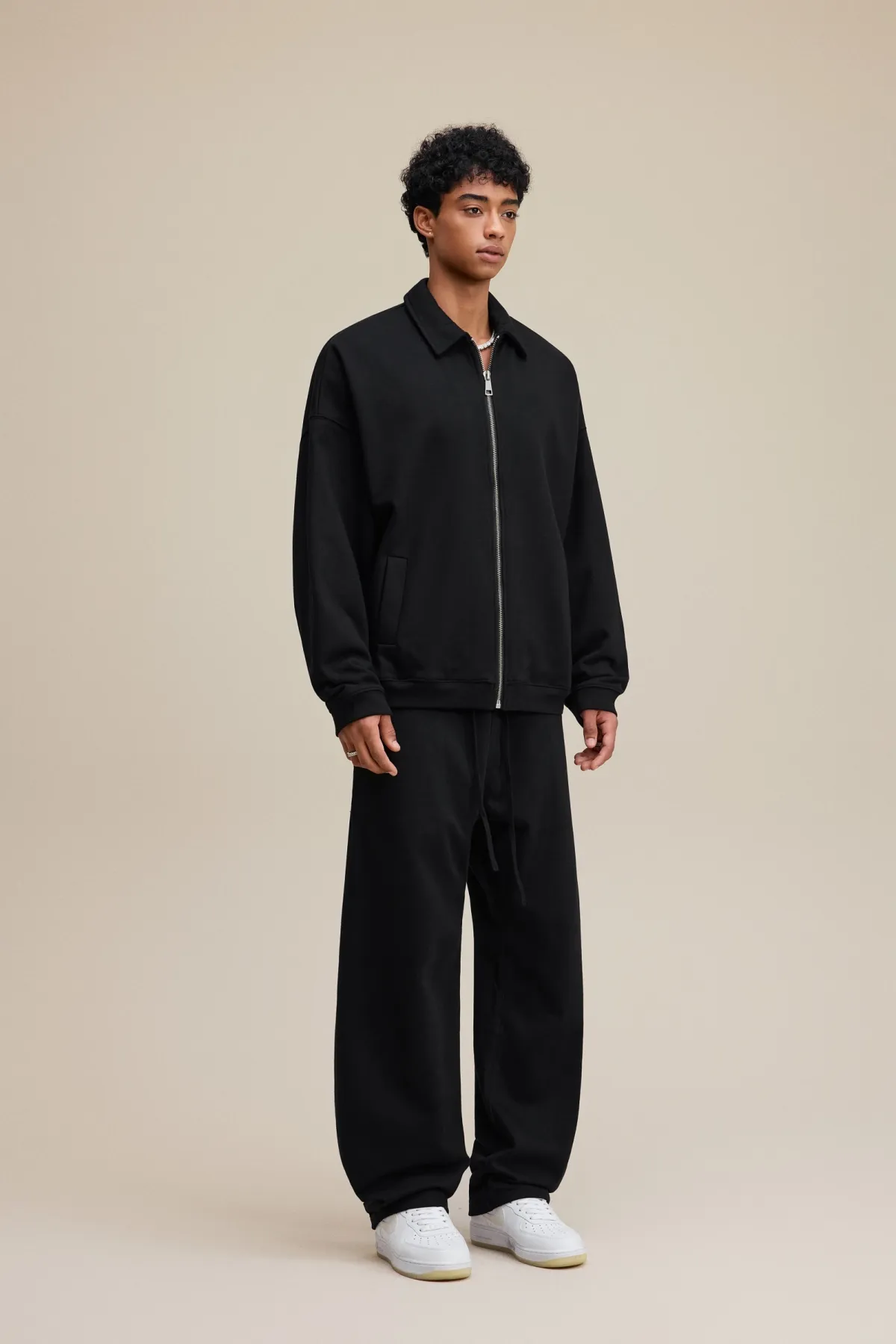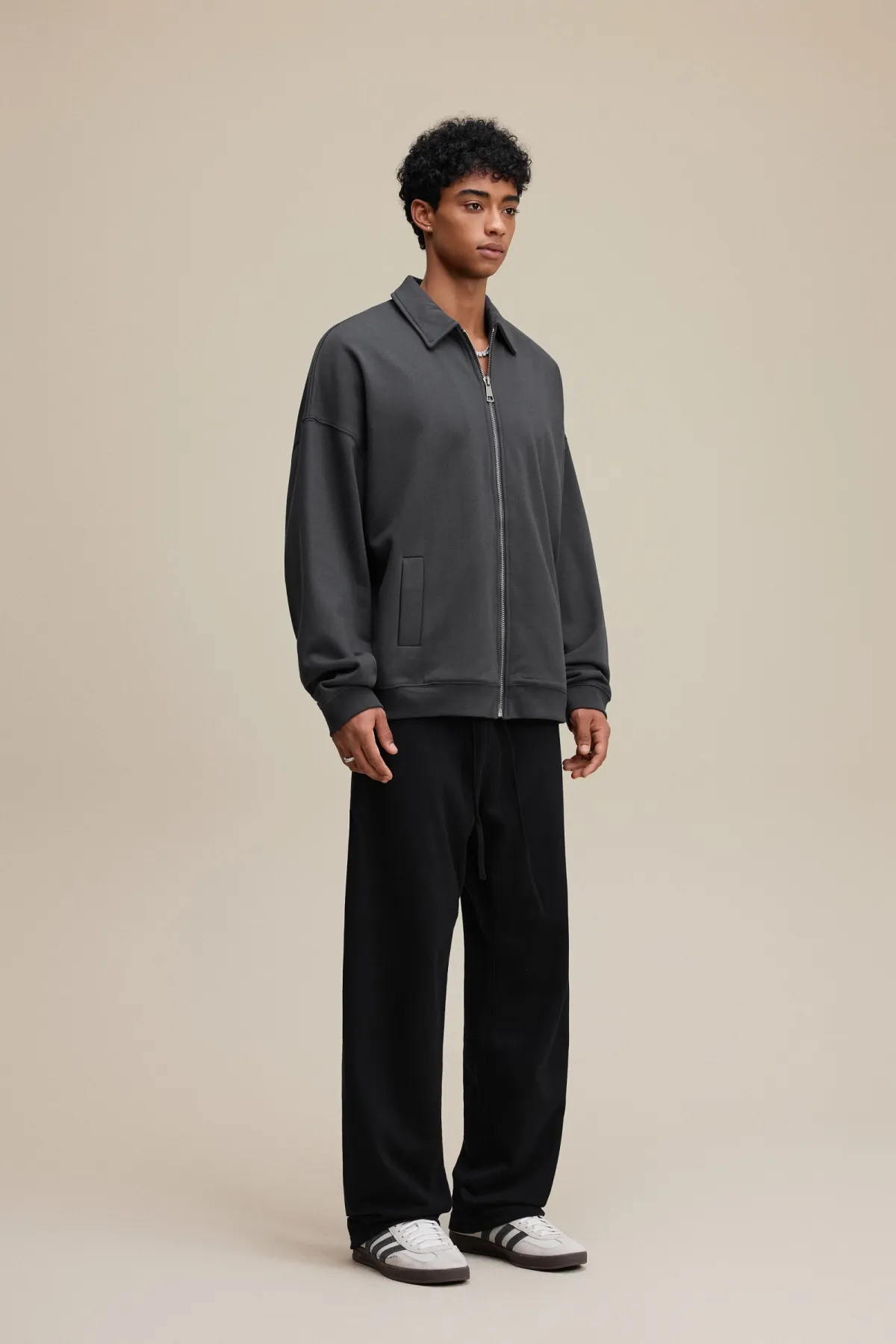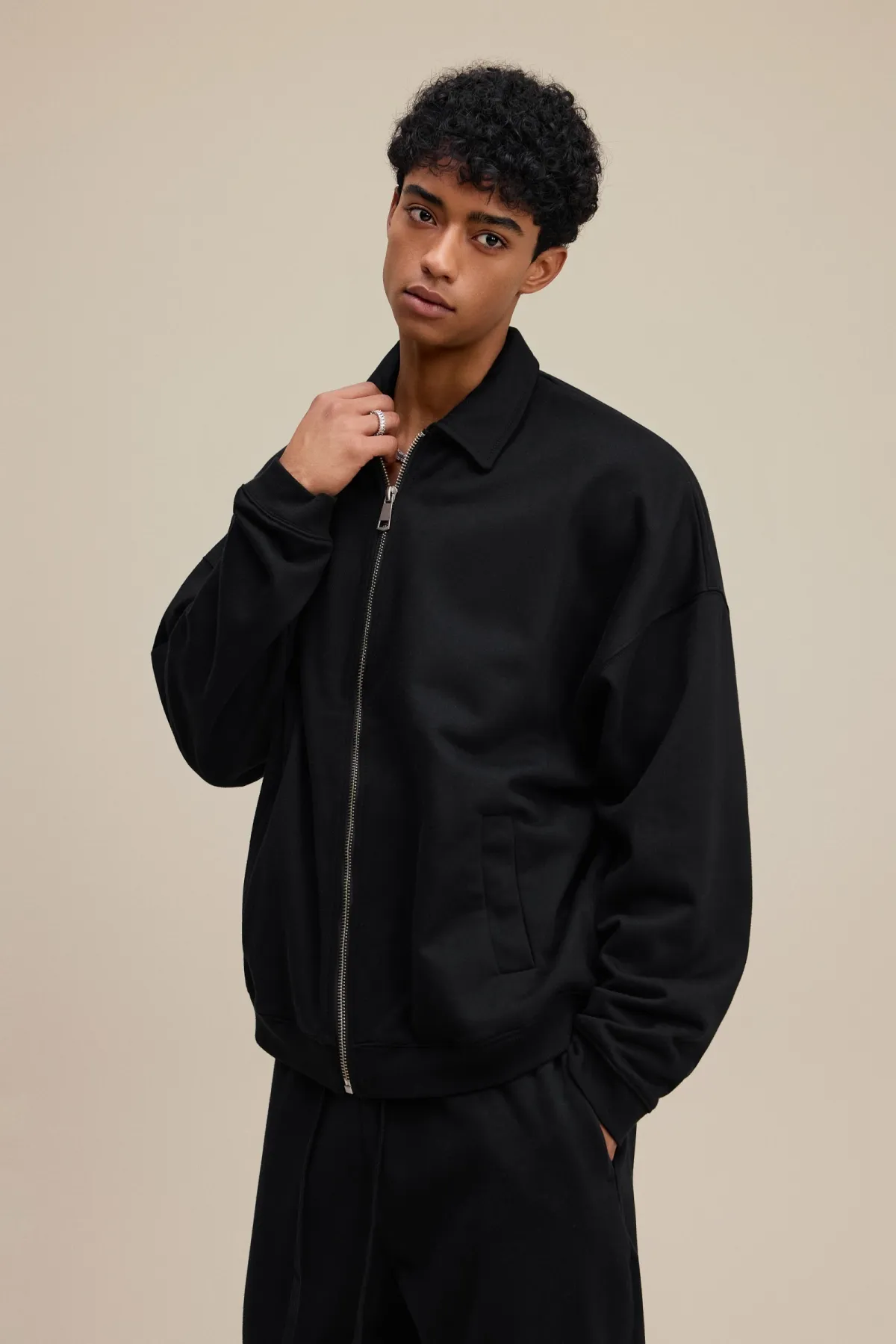 The drop-shoulder design and relaxed silhouette create an effortless, casual fit suitable for layering.