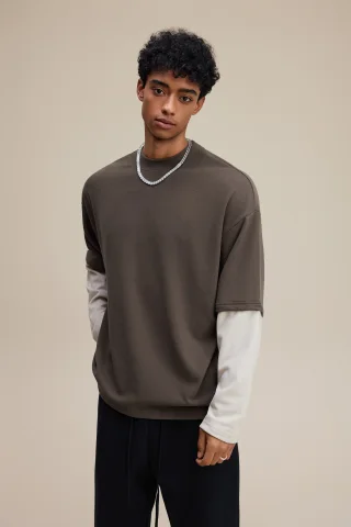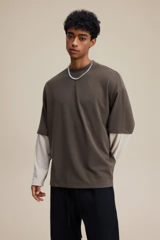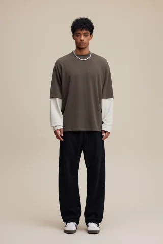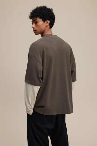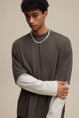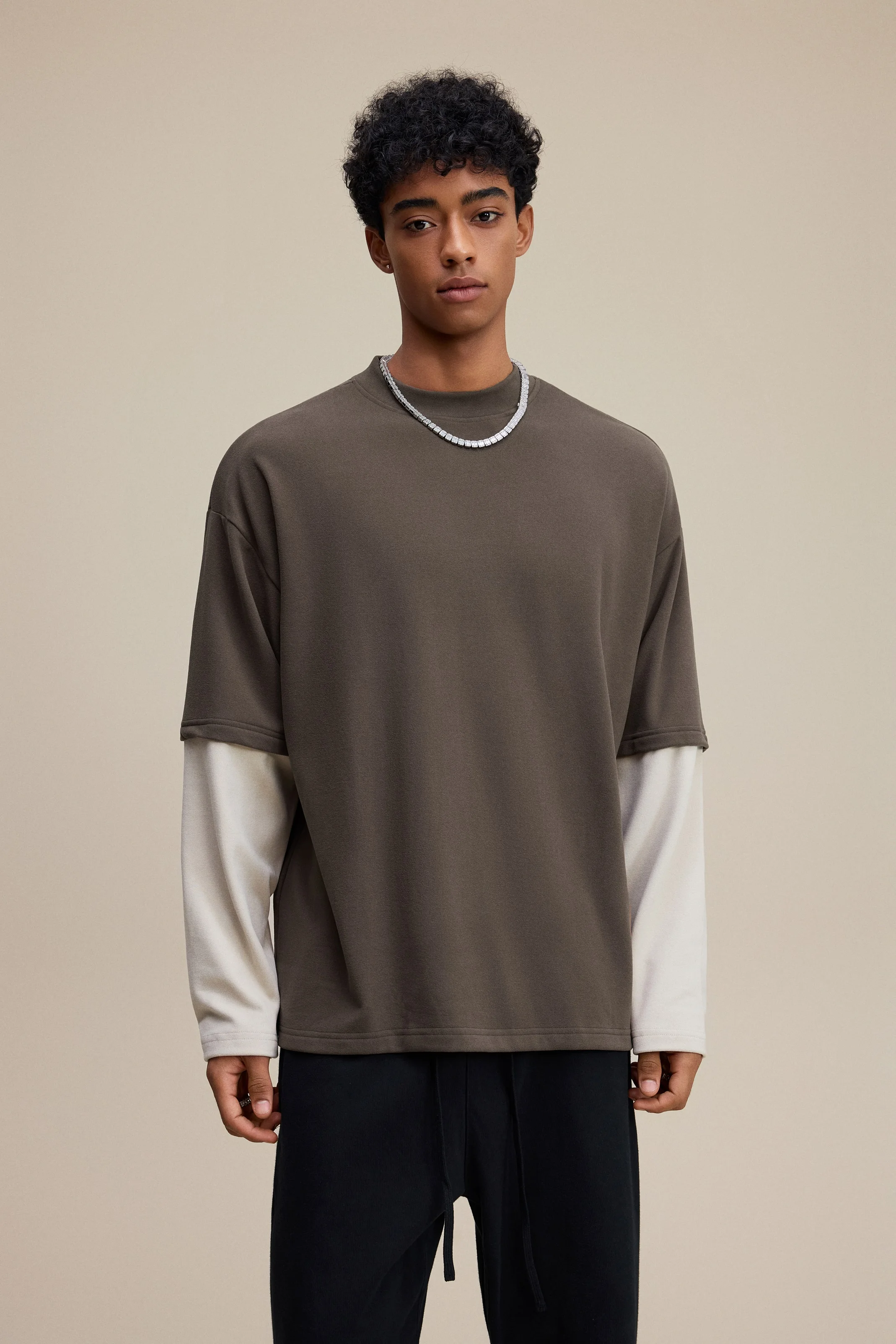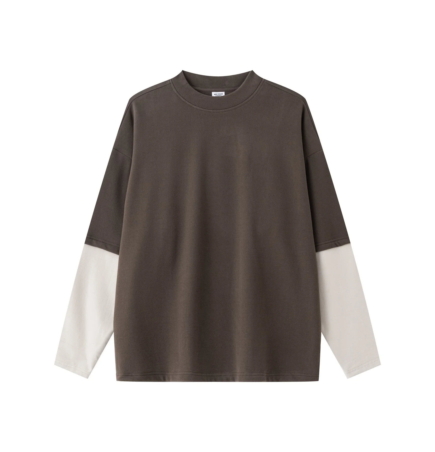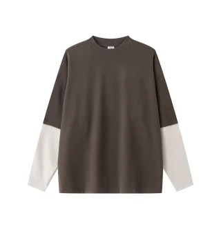 320GSM Unisex Solid Color Base Layer Long-Sleeve T-Shirt with Faux Layered Design