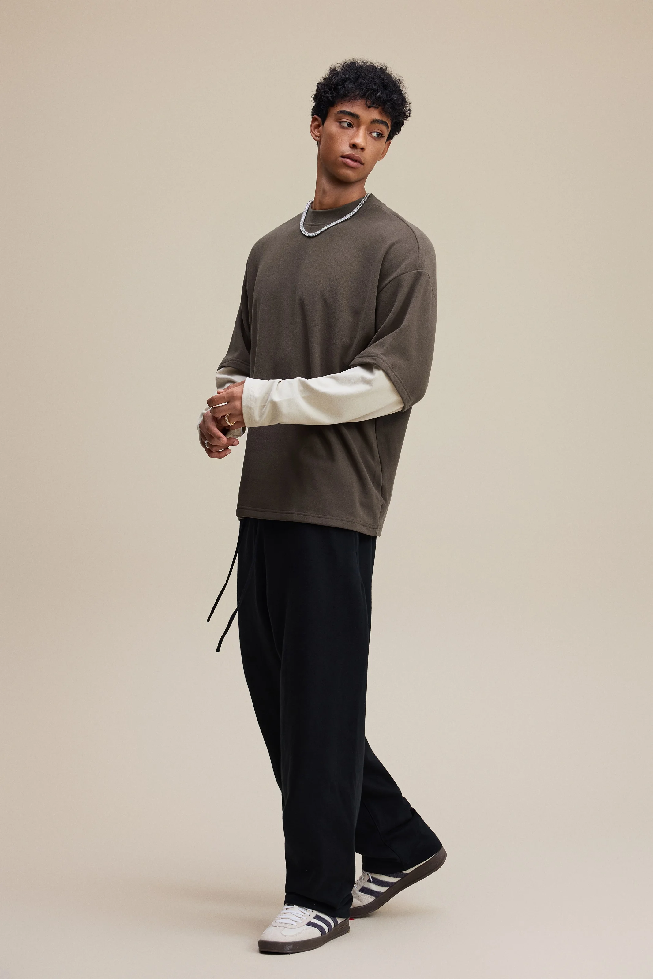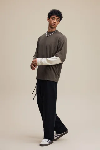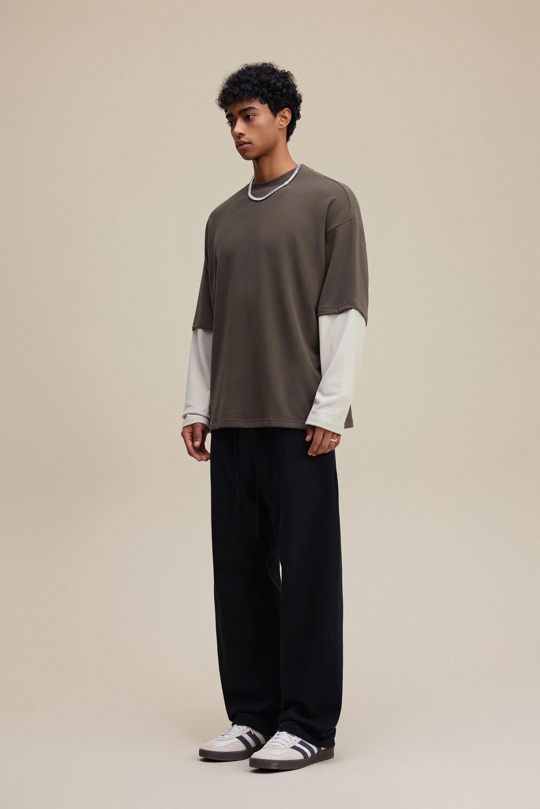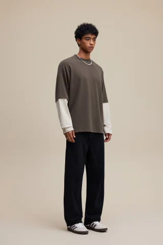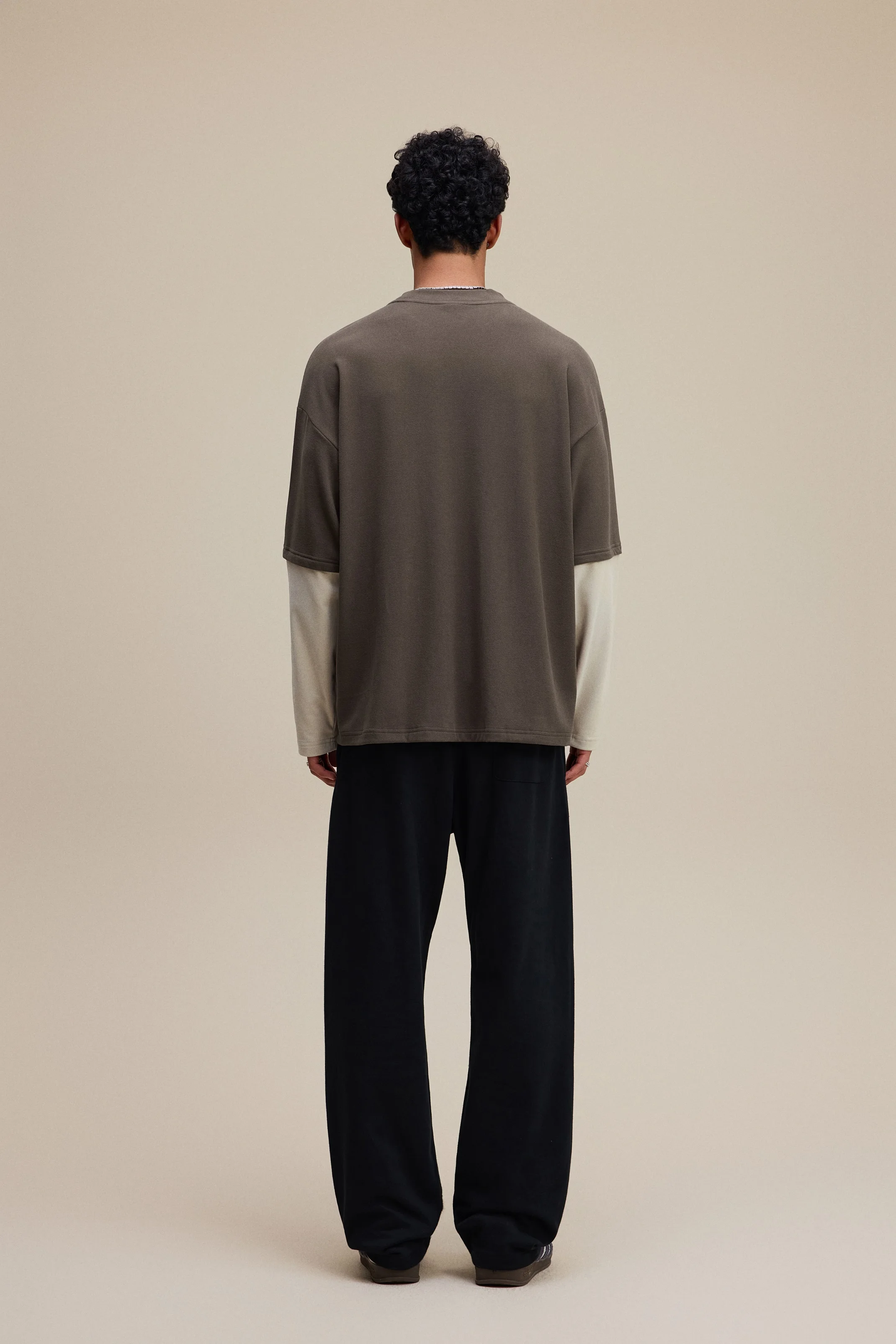320GSM Unisex Solid Color Base Layer Long-Sleeve T-Shirt with Faux Layered Design