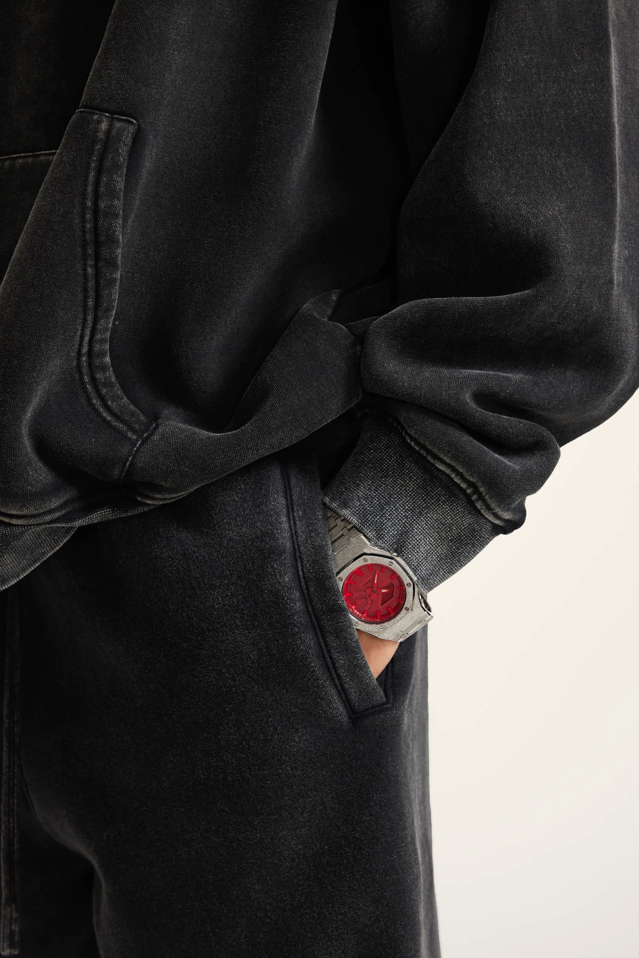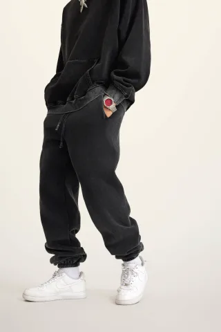 Made from 400g washed Expo fleece with a 42% cotton, 53% polyester, and 5% fiber blend, these heavyweight pants offer warmth, wind resistance, and all-day comfort. The relaxed silhouette features clean, inclusive lines, while the heavy washed finish enhances structure and adds rich, vintage color depth—delivering strong visual impact and versatile styling for modern streetwear collections.