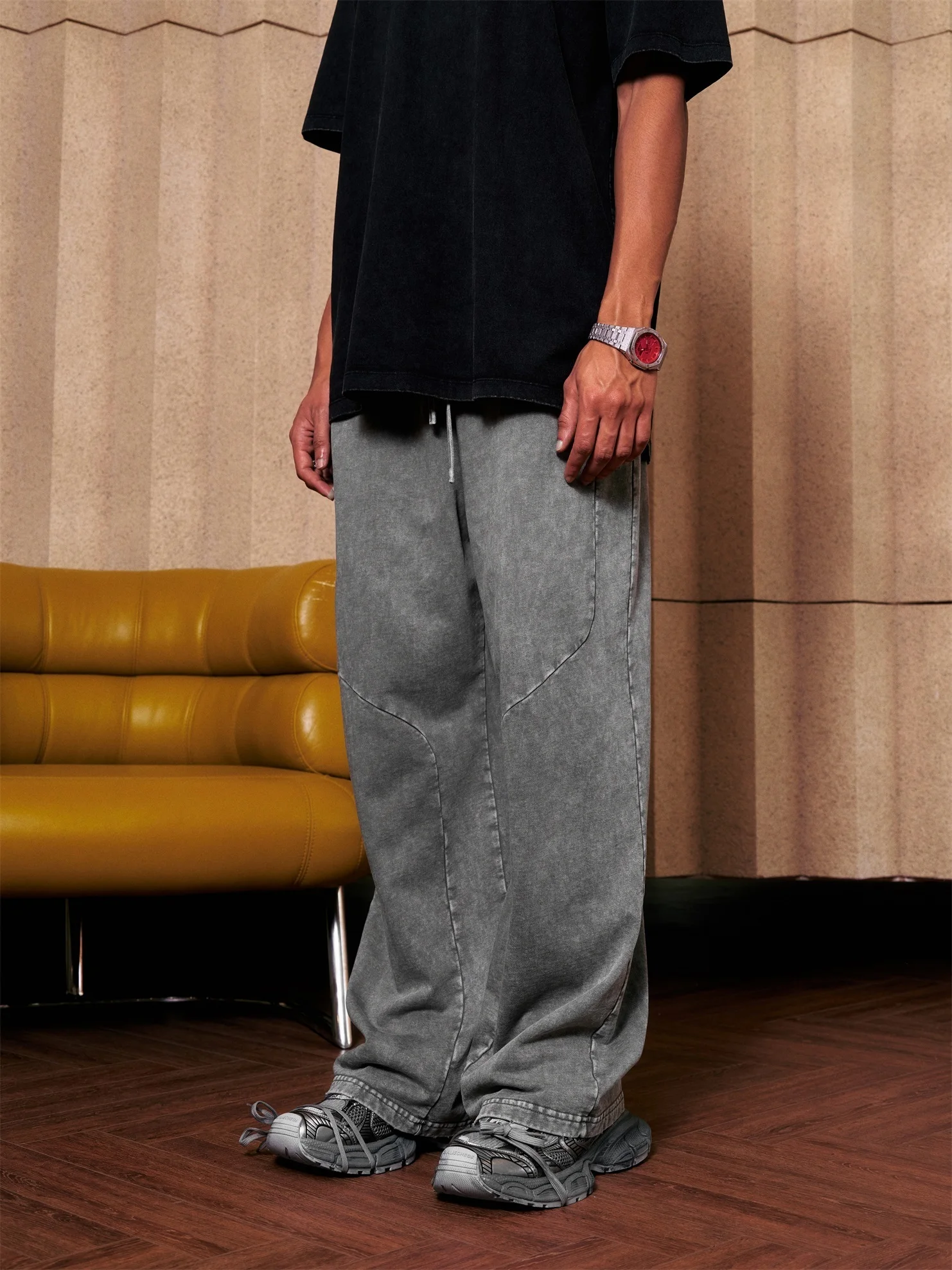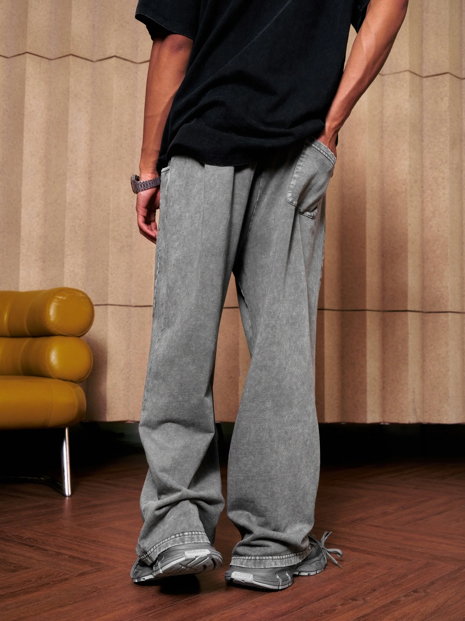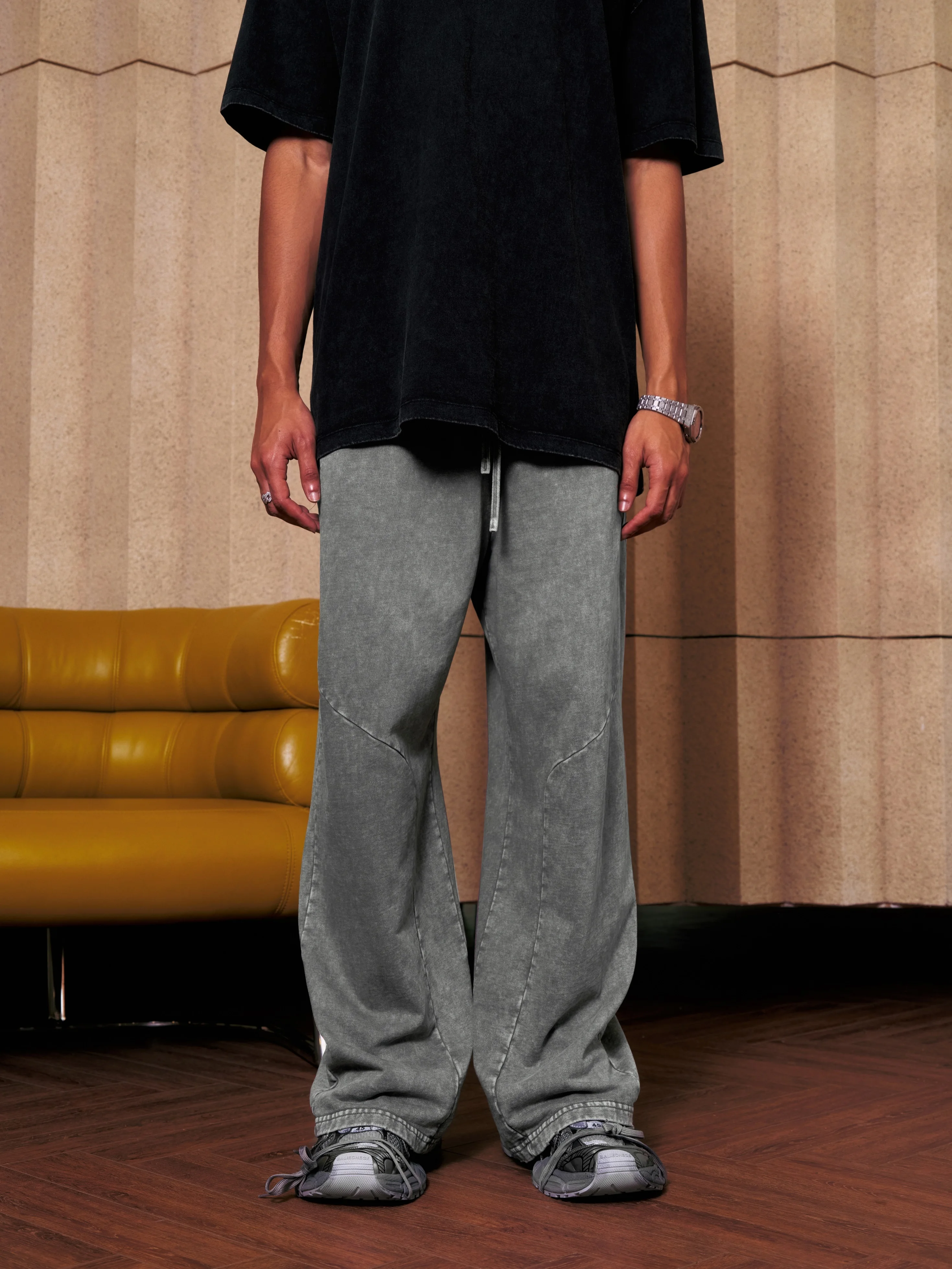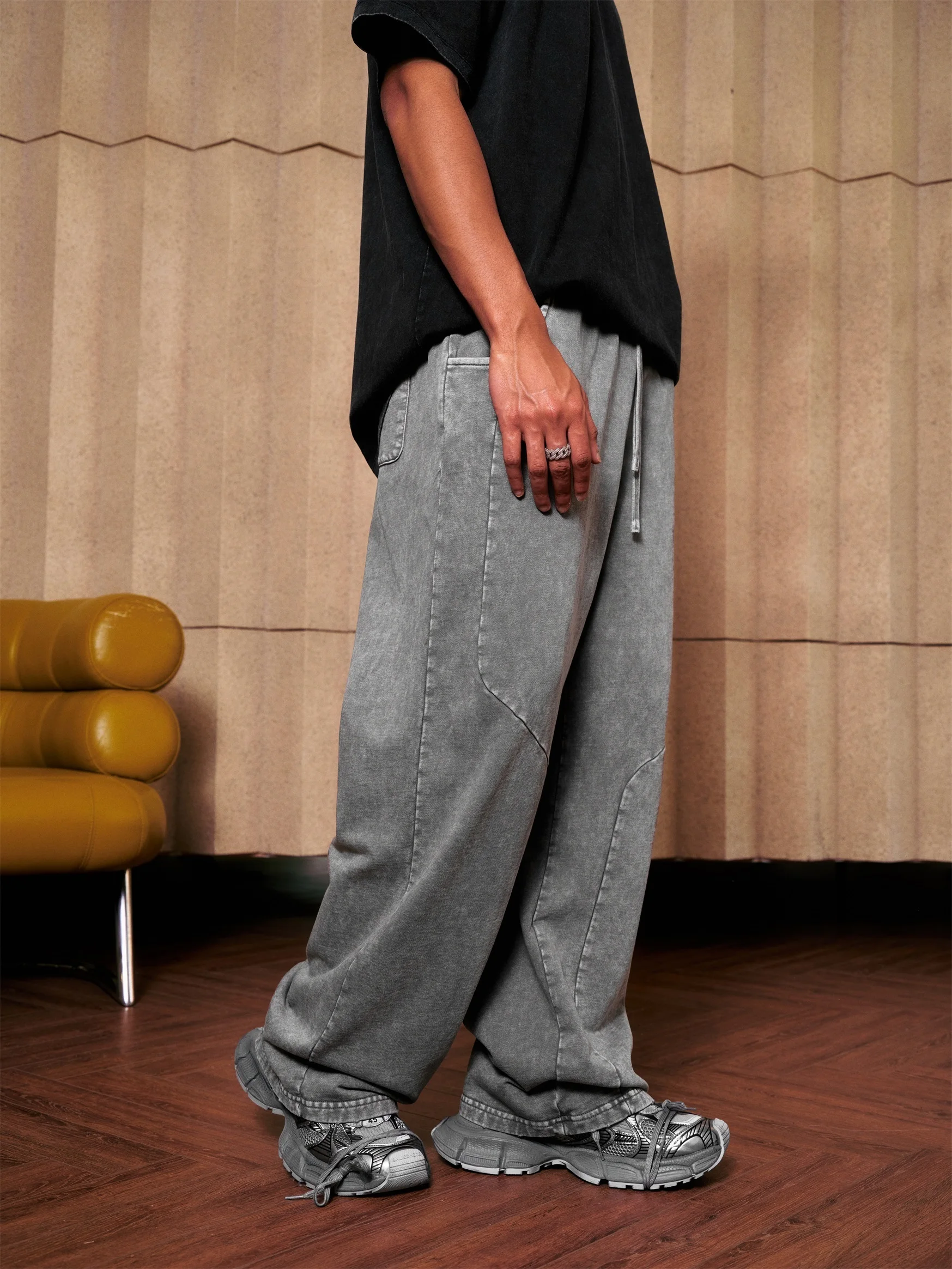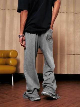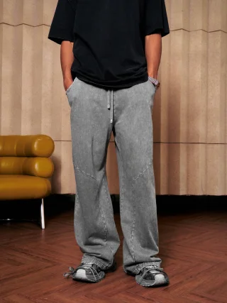 300GSM Unisex 100%Cotton Vintage Marled Loose Pants