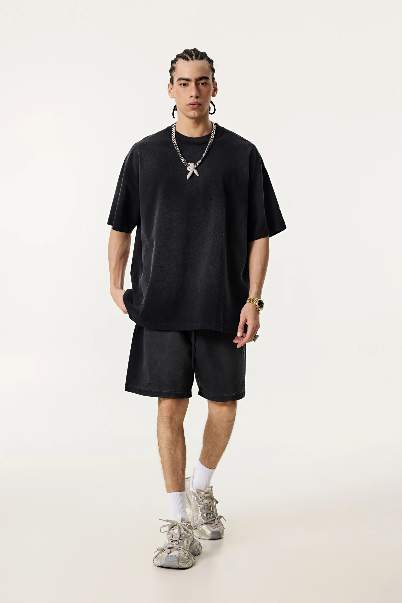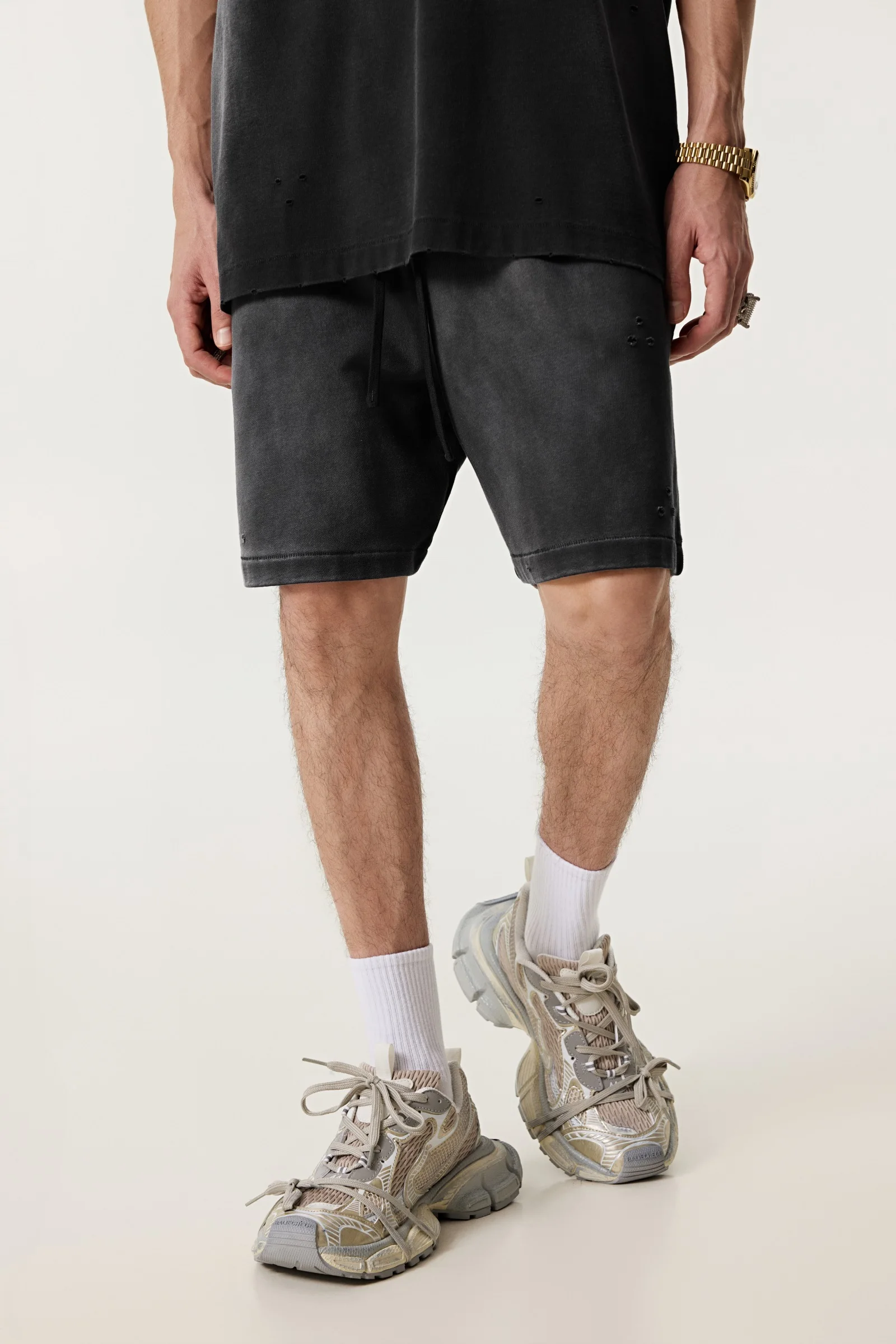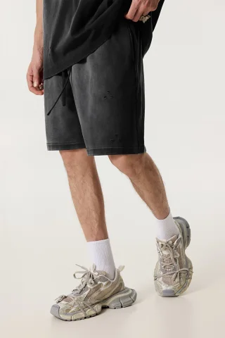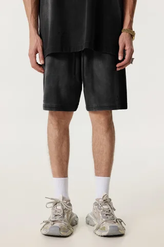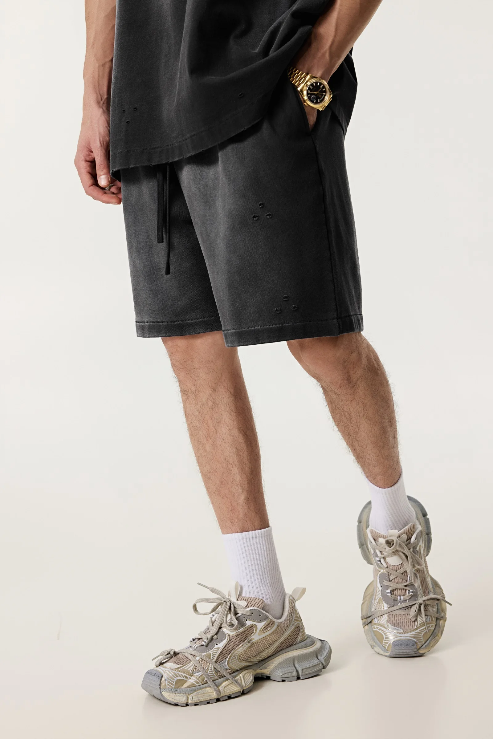 330GSM Unisex Heavyweight Distressed PP Spray Fade Shorts