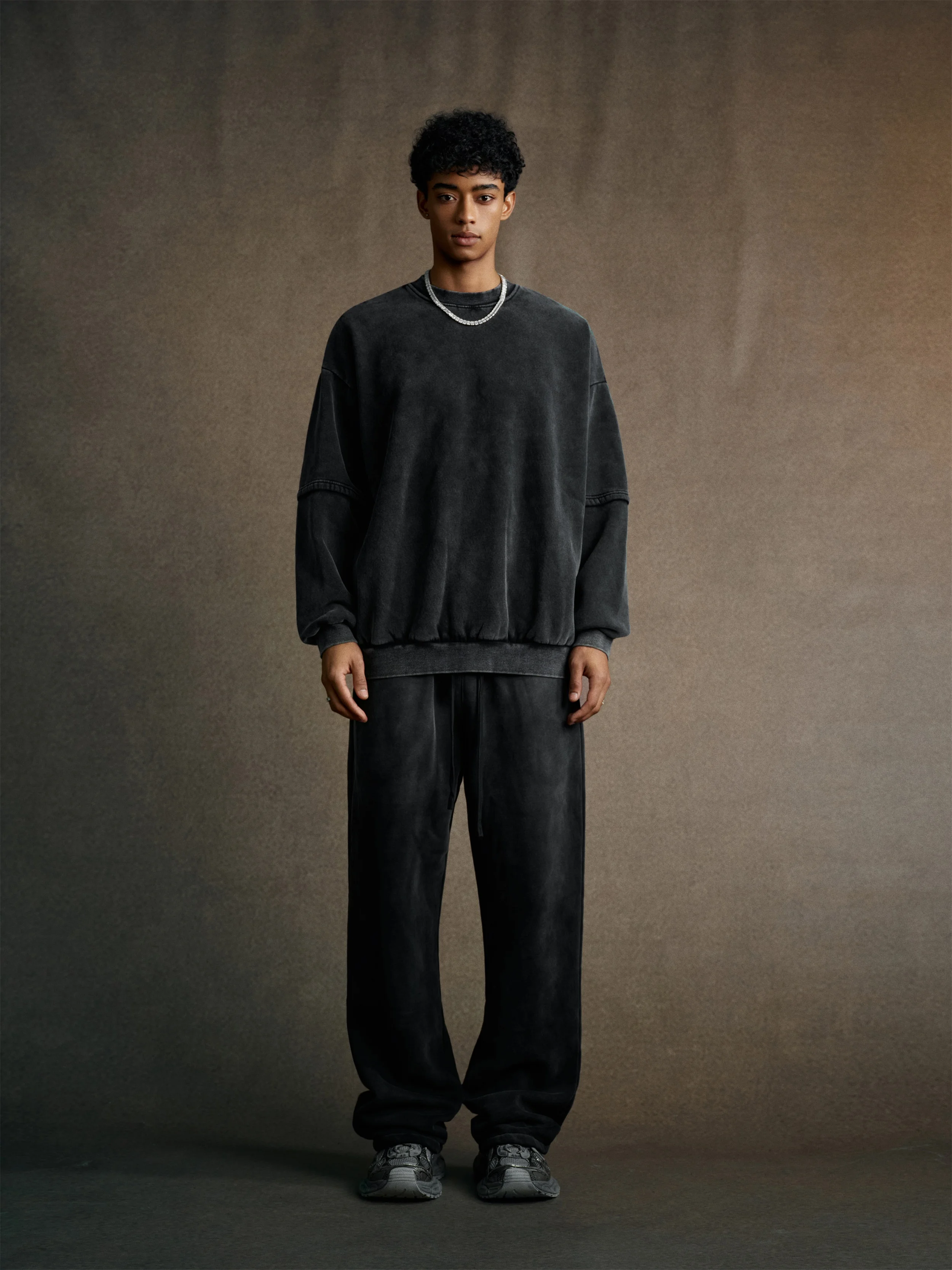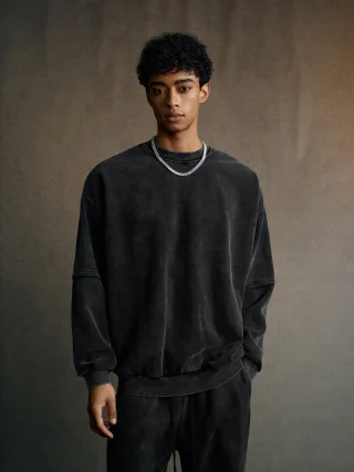 Constructed with 360GSM WarmSkin brushed-fleece fabric, this faux-layer crewneck delivers fast heat retention, soft handfeel, and long-lasting durability. The relaxed American fit offers easy layering, while the heavy salt-wash process creates natural fading and unique vintage textures. A versatile streetwear essential designed for scalable production.