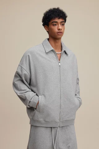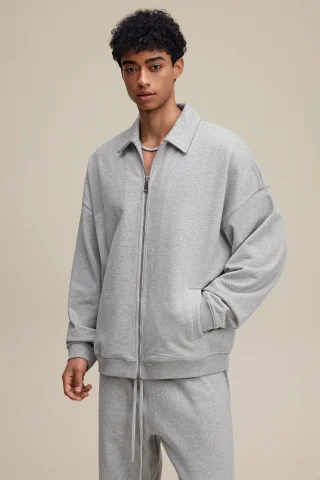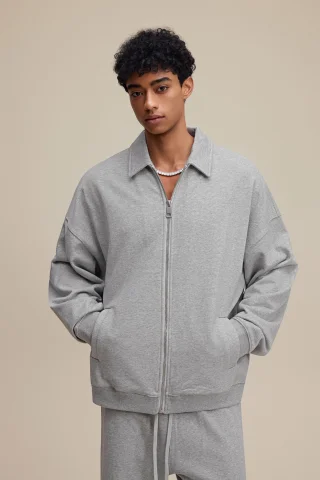 445GSM Men’s Heavyweight Zip-Up Collared Hoodie