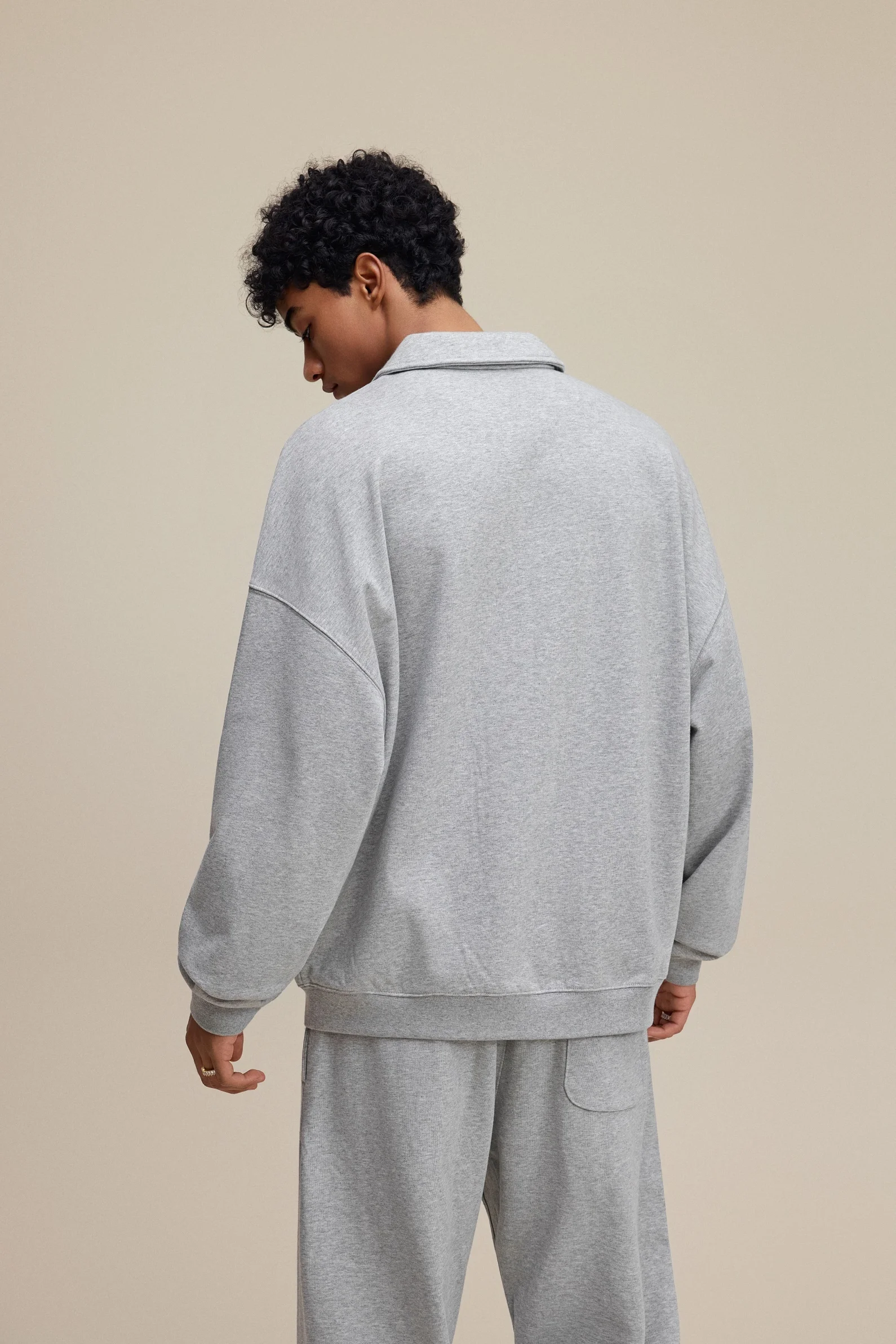 A clean, vintage take on everyday comfort. This 445GSM half-zip sweatshirt delivers warmth and structure with its soft fleece fabric and drop-shoulder fit. The ribbed hem keeps the look neat, while the polo collar zip gives it that retro, utility-inspired vibe. Perfect for layering in cooler weather — easy to match, easy to wear, always in style.