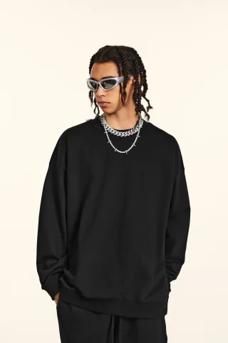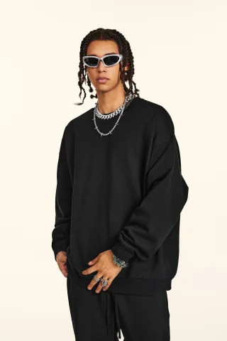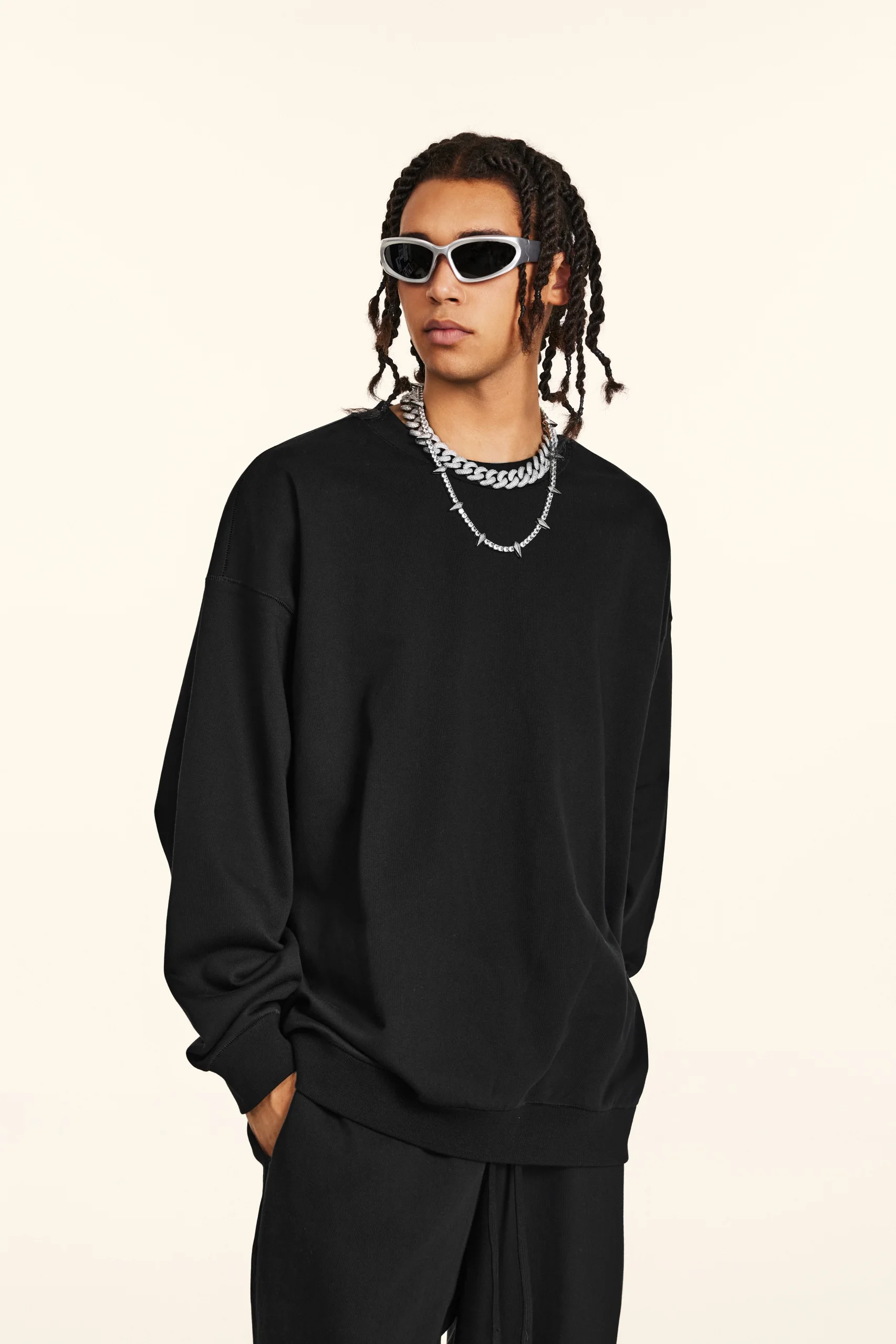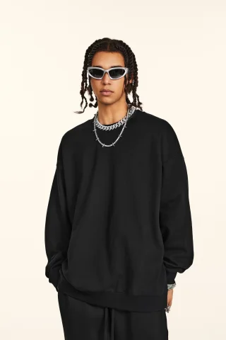 Smooth silhouette with a roomy, comfortable cut. The classic crewneck style is easy to wear and flatters all body types. Raw exposed seams bring a unique deconstructed vibe—minimalist at first glance, but detailed on closer look.