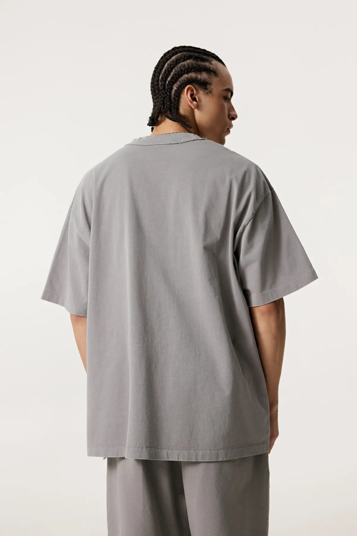 Crafted from breathable cotton with a clean, structured silhouette that maintains shape without clinging to the body. Finished with a Biwen wax-dye vintage treatment, creating soft, feather-like faded patterns that deliver a natural, authentic aged effect. Each wash enhances the garment’s retro character, ensuring a unique, non-repetitive finish that adds value for differentiation across collections.