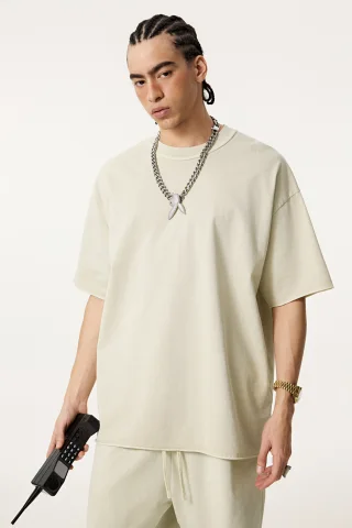 275GSM Unisex Raw-Edge Pigment-Wash Short-Sleeve T-shirt