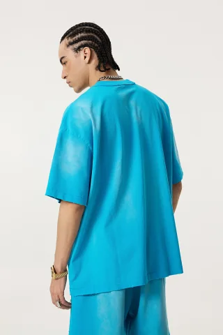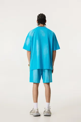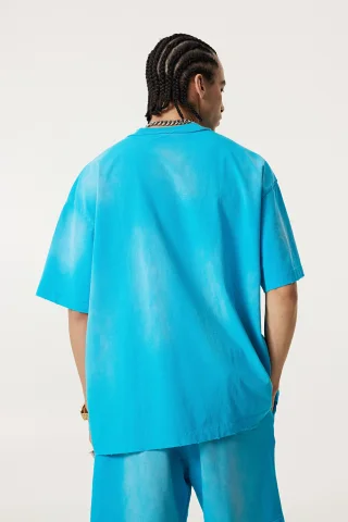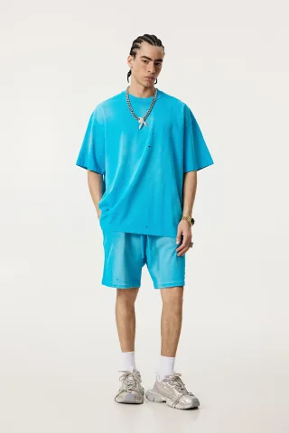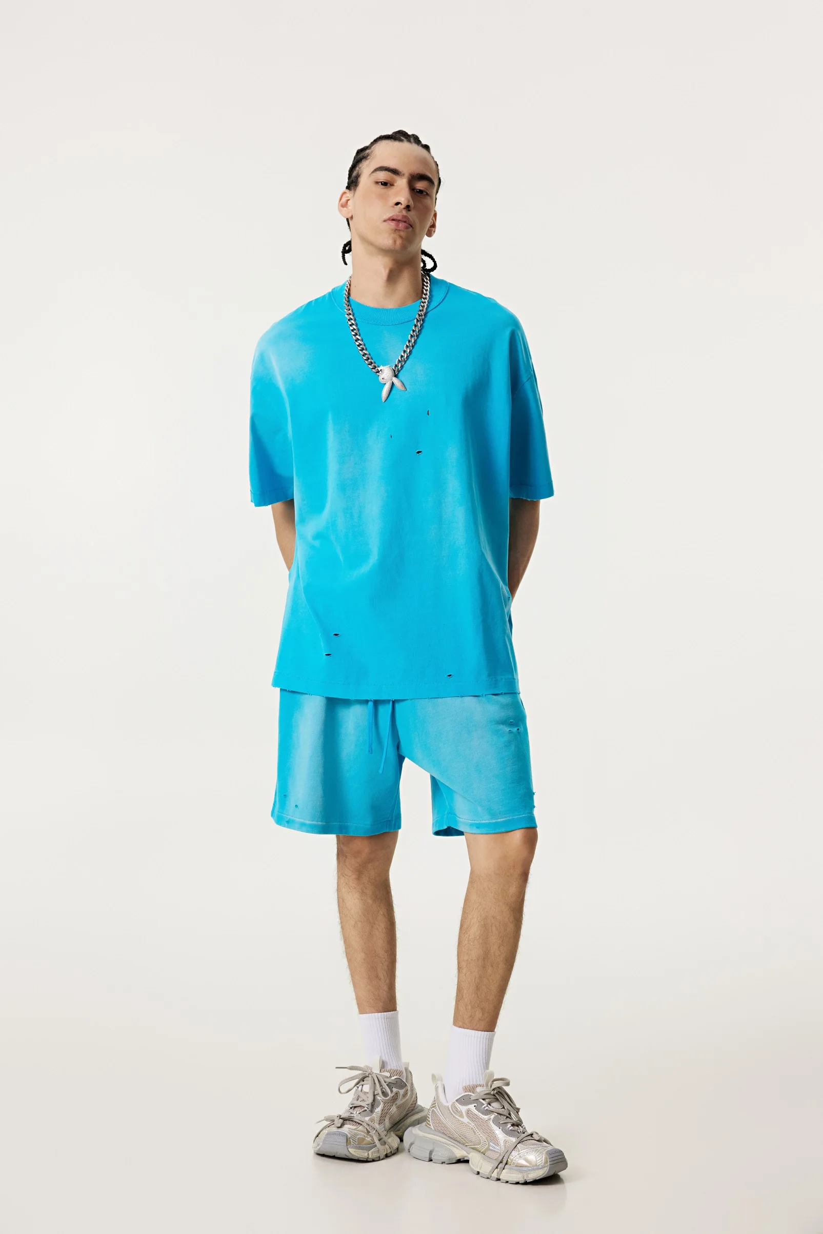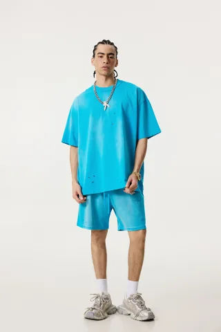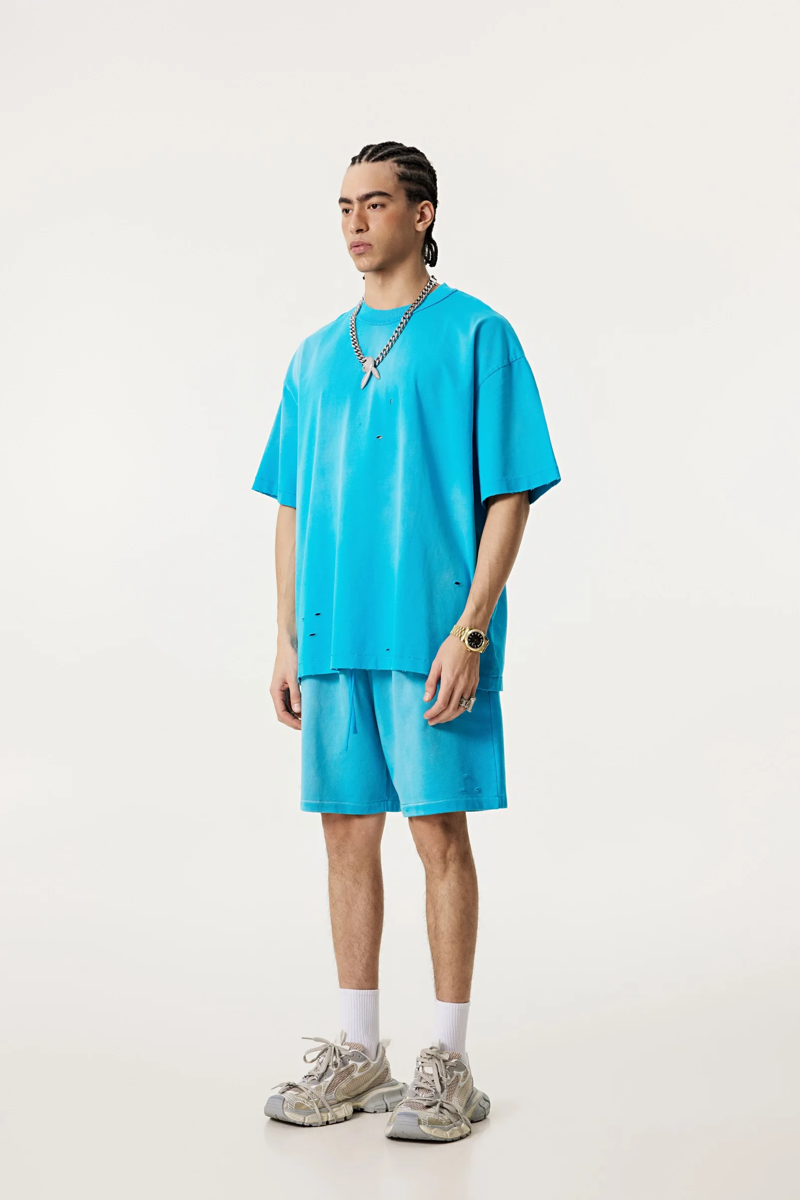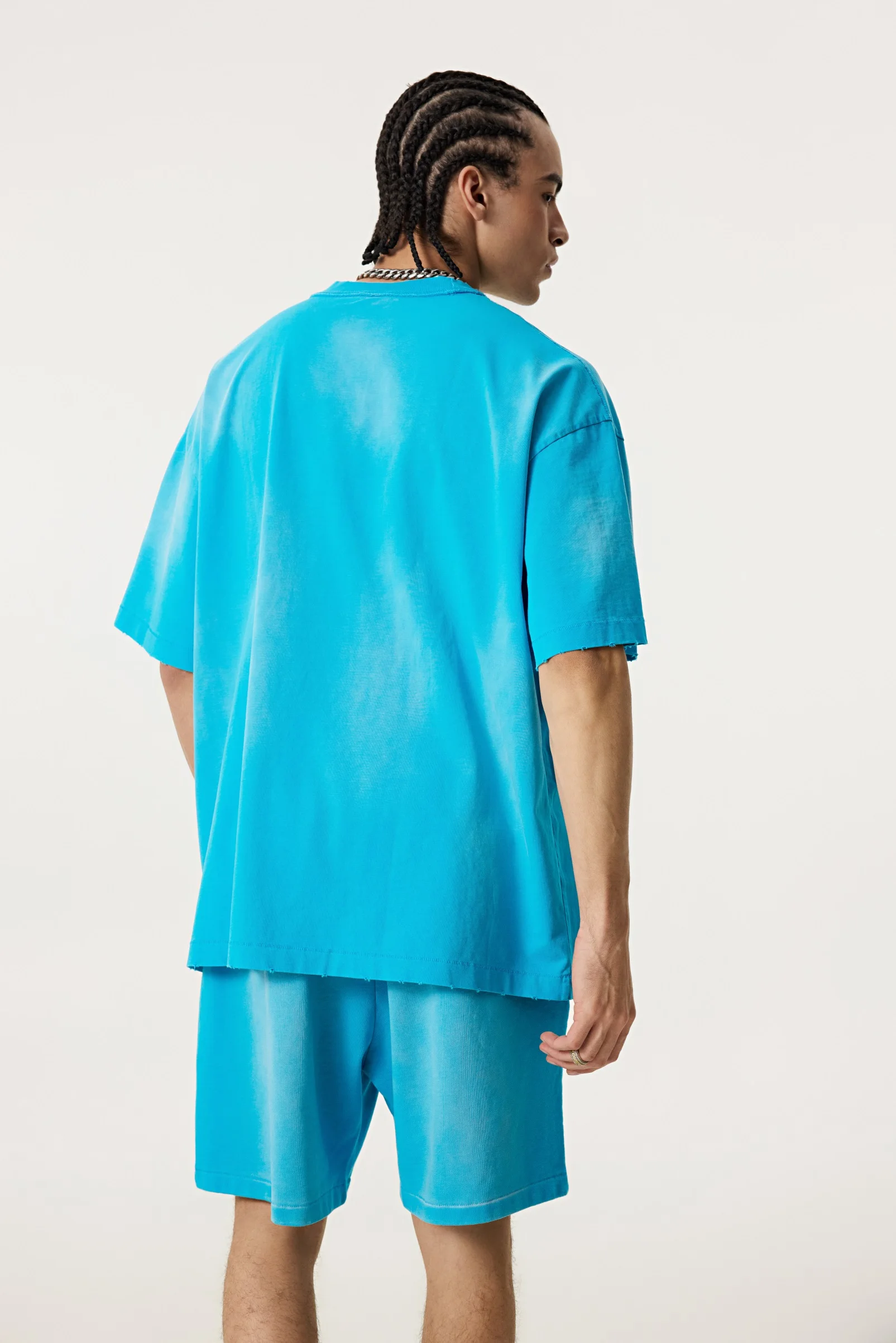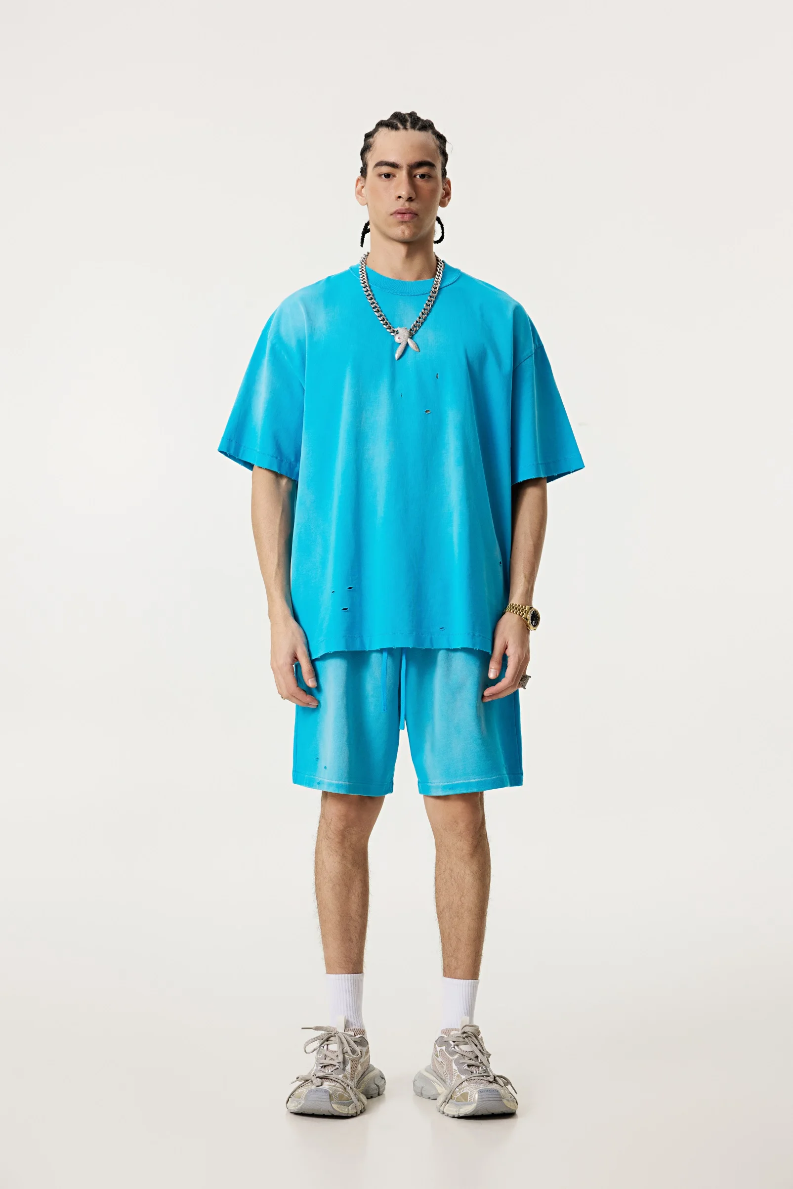 285GSM Unisex PP-Sprayed (Monkey Wash) Ripped Raw-Edge Short-Sleeve T-shirt