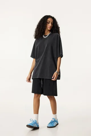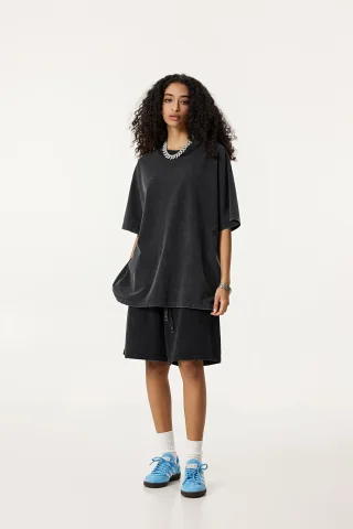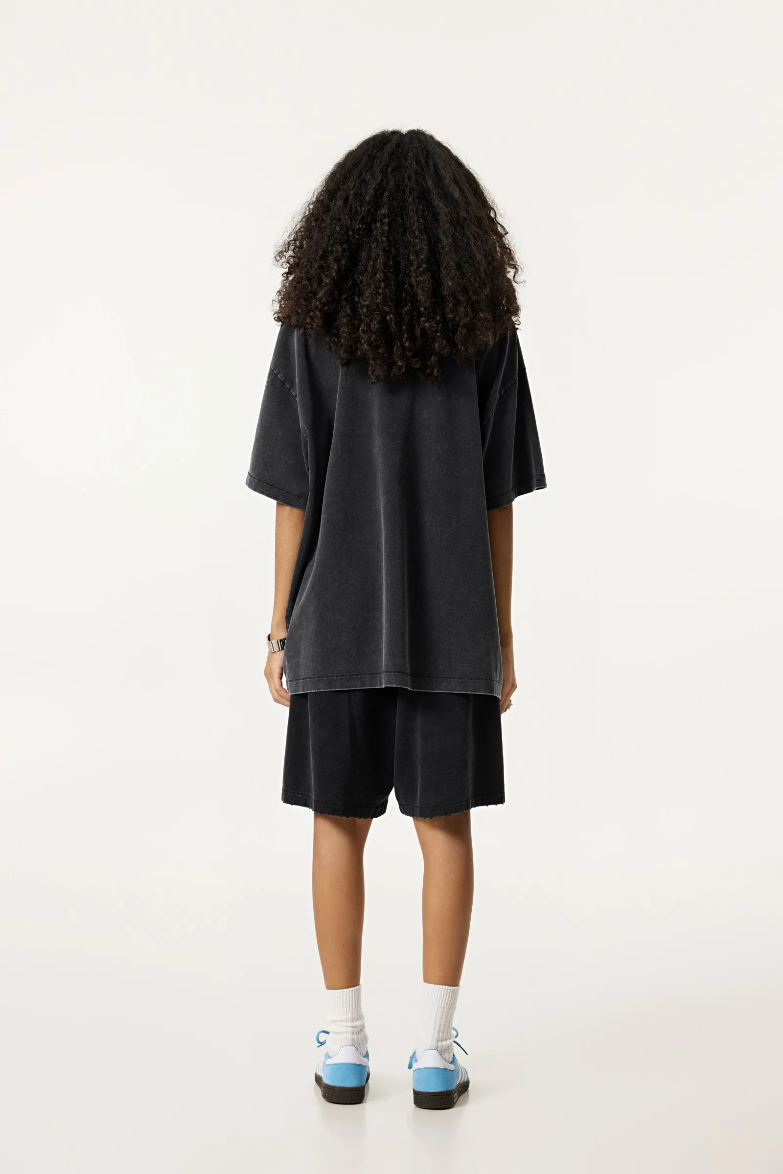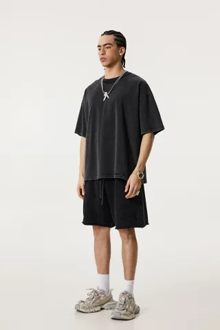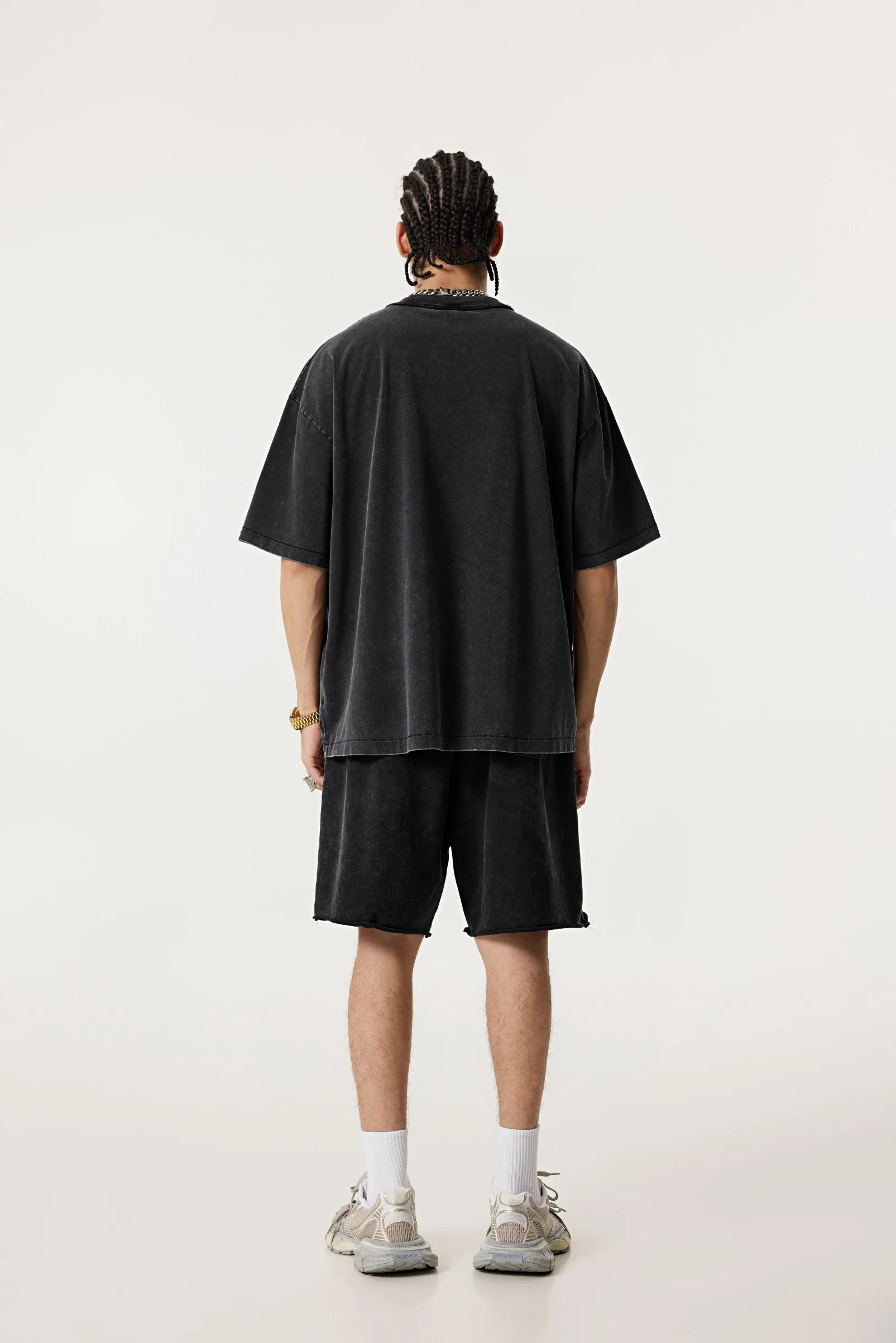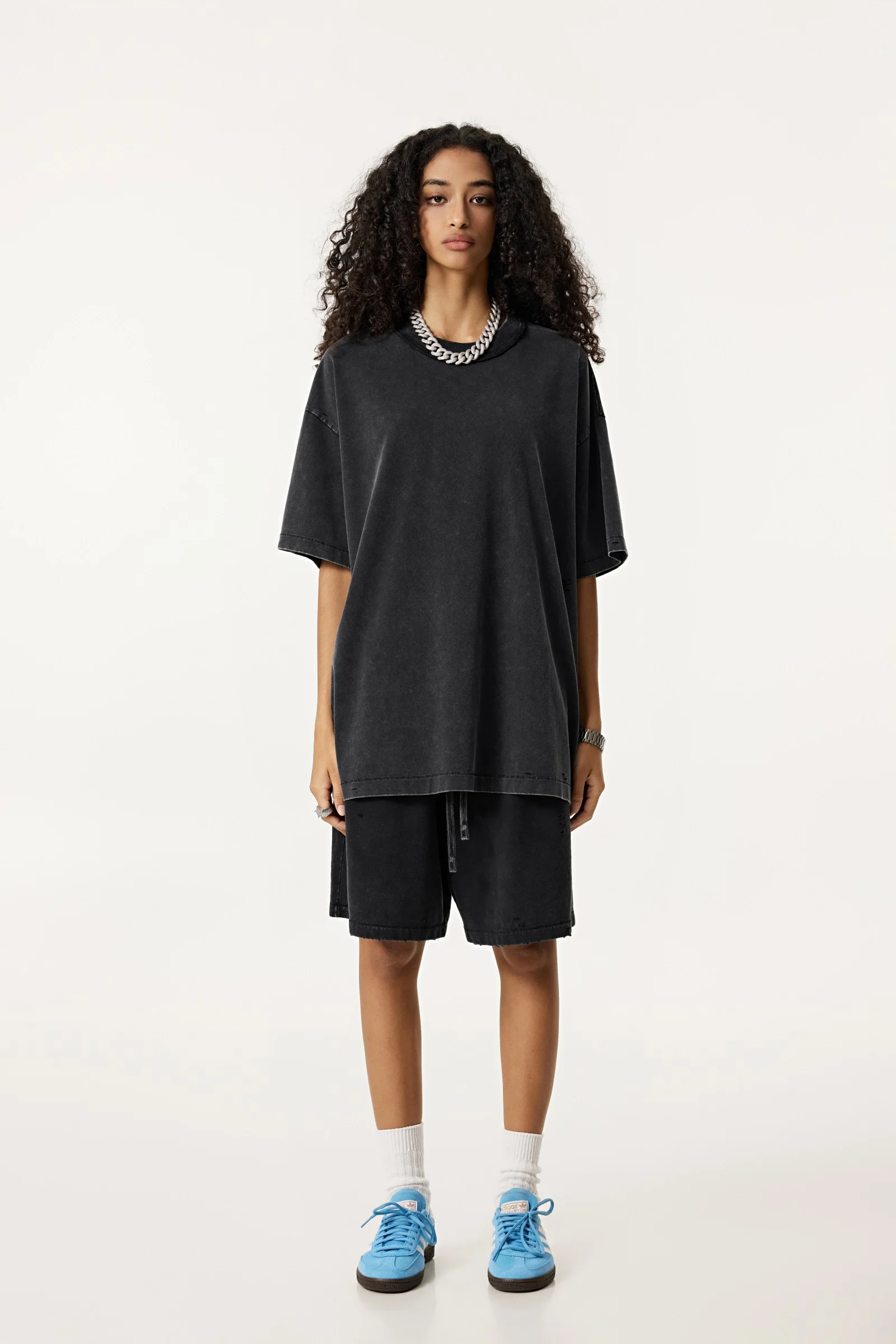 330GSM Unisex Heavyweight 100% Cotton Webbing Drawstring Snow-Washed Shorts