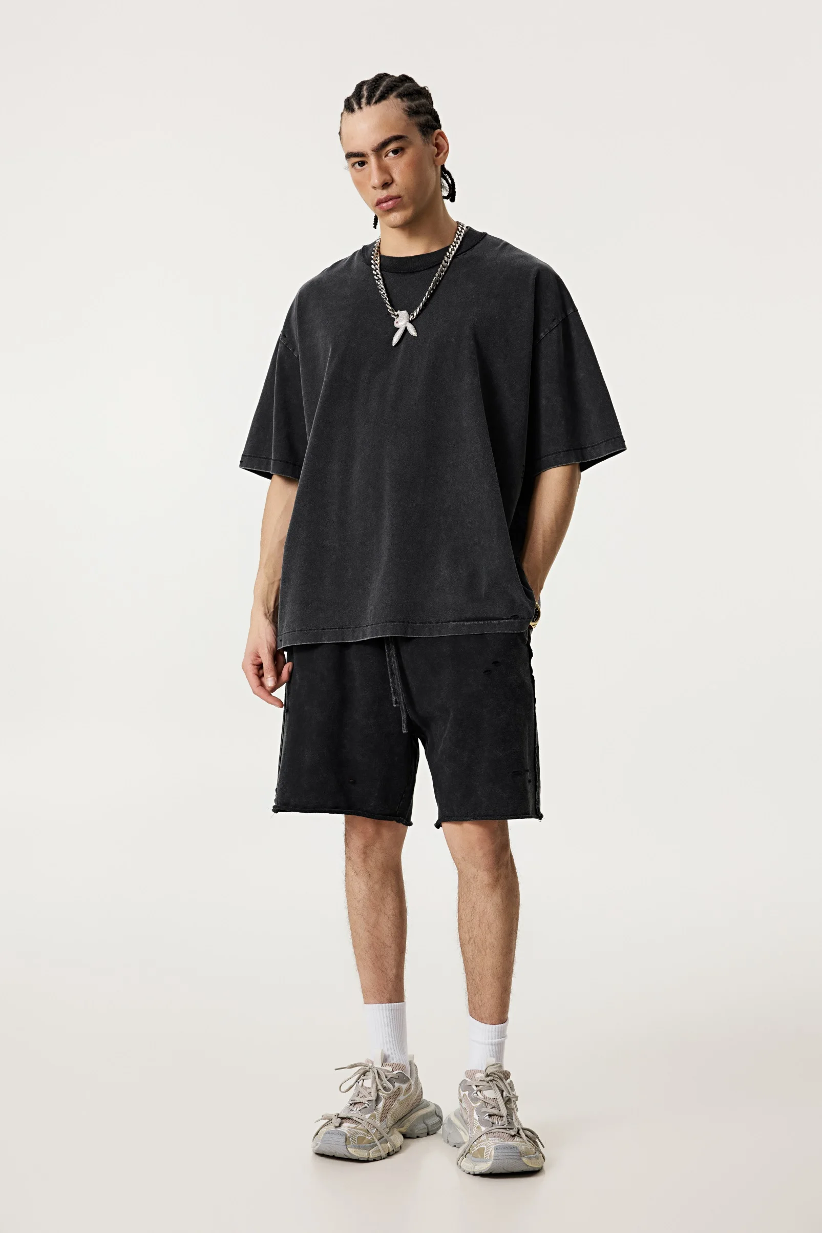 330GSM Unisex Heavyweight Distressed PP Spray Fade Shorts