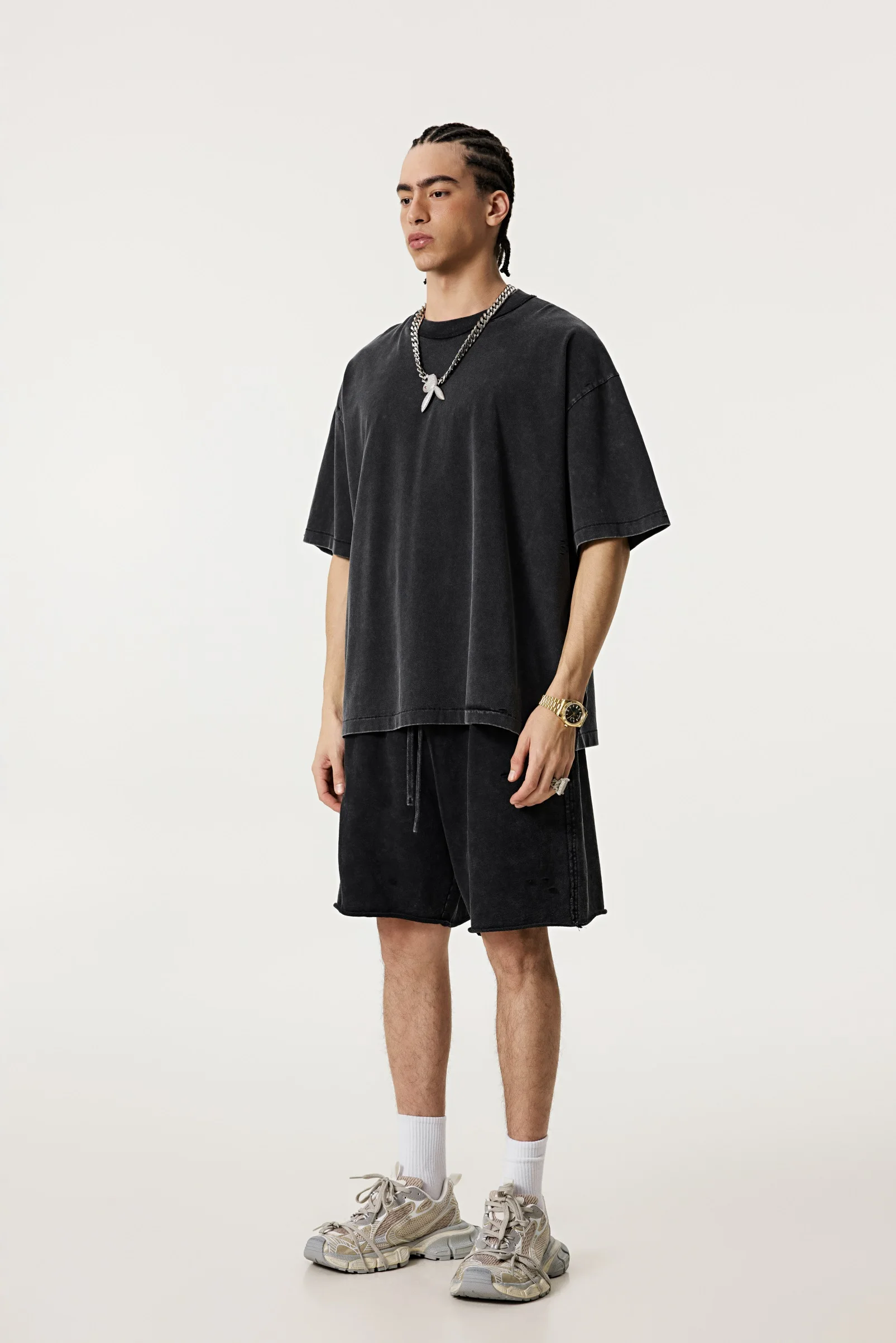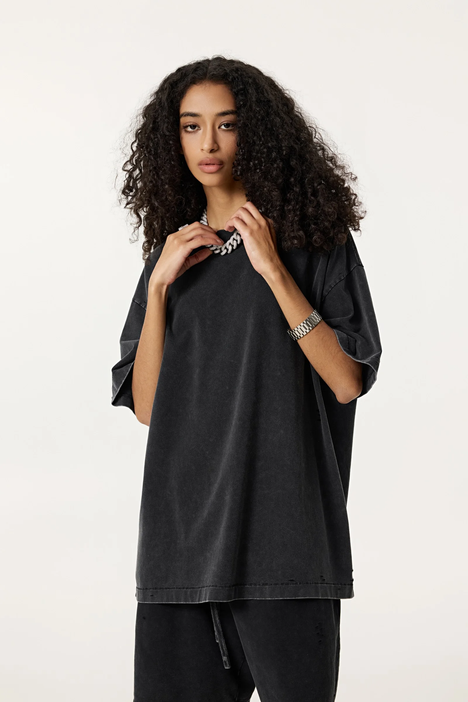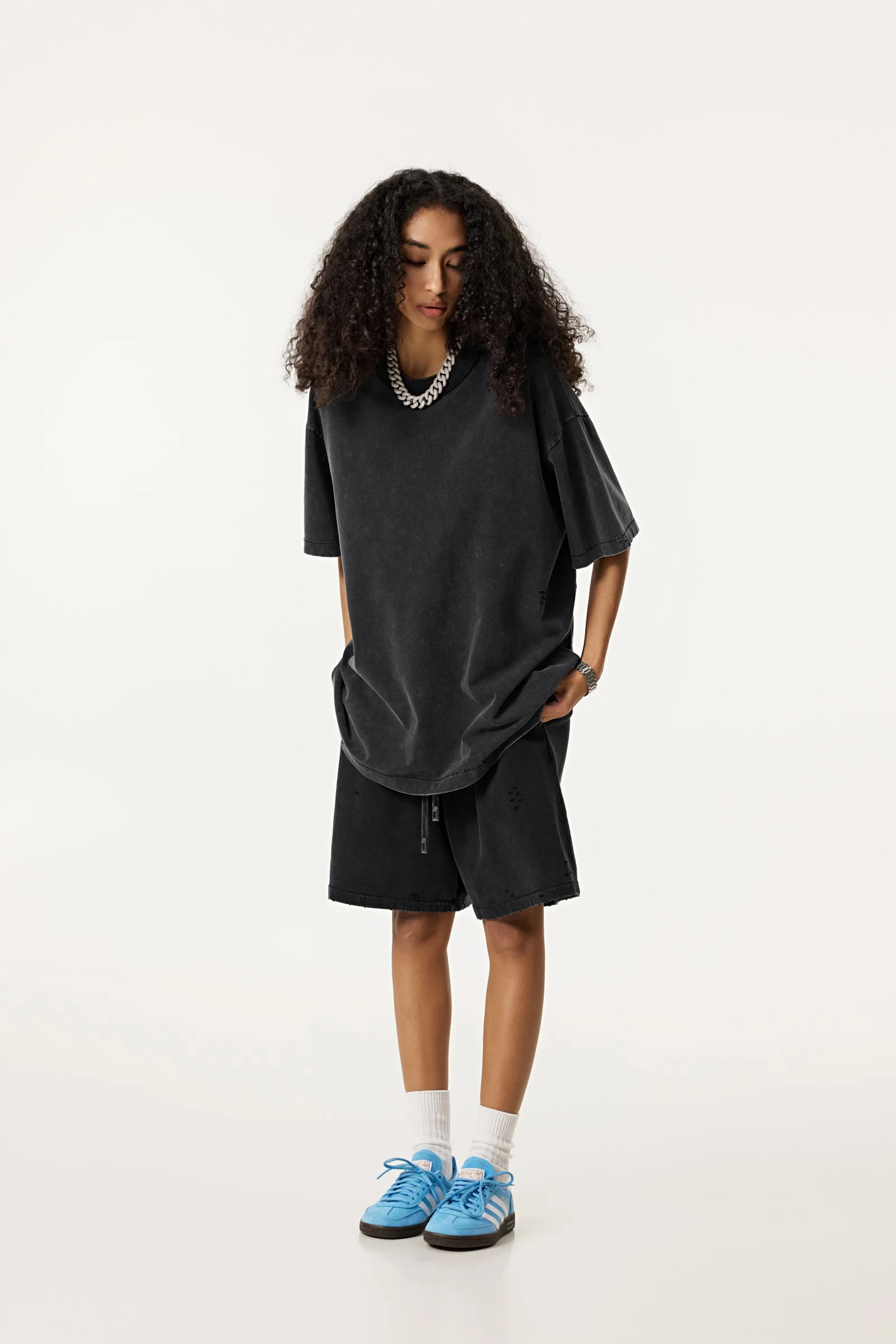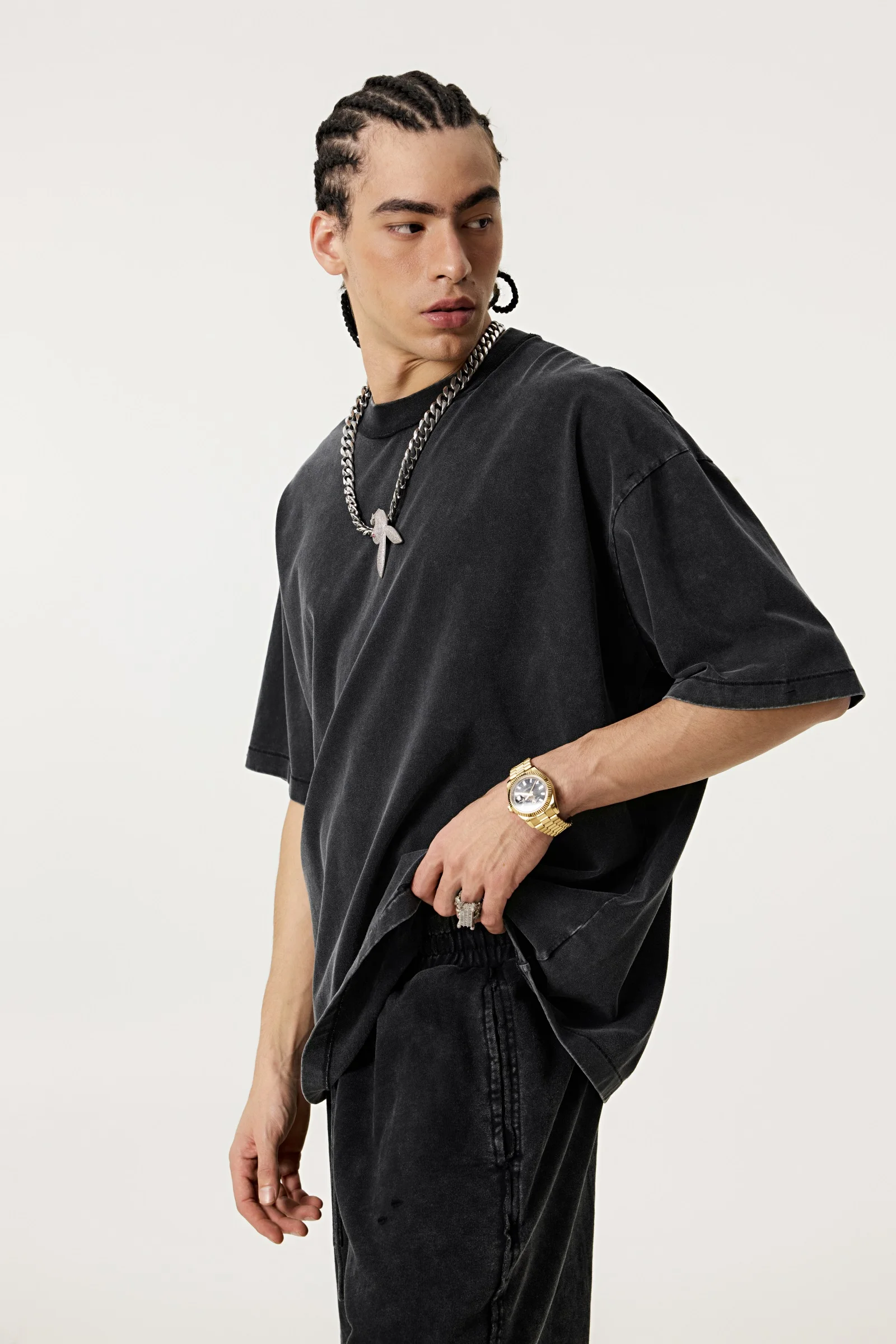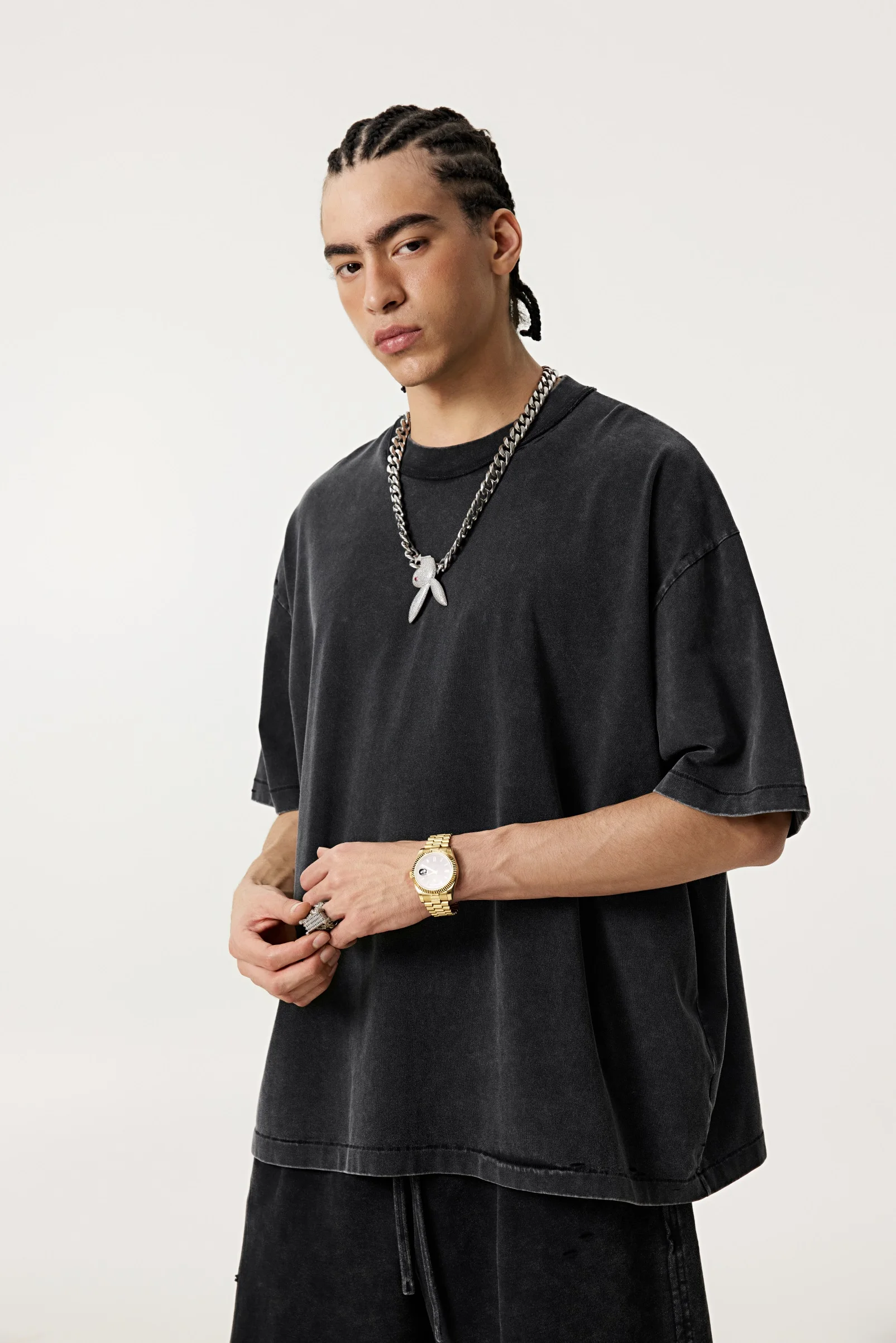 275GSM Unisex Vintage Wax-Dyed Cotton Distressed T-shirt
