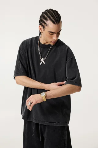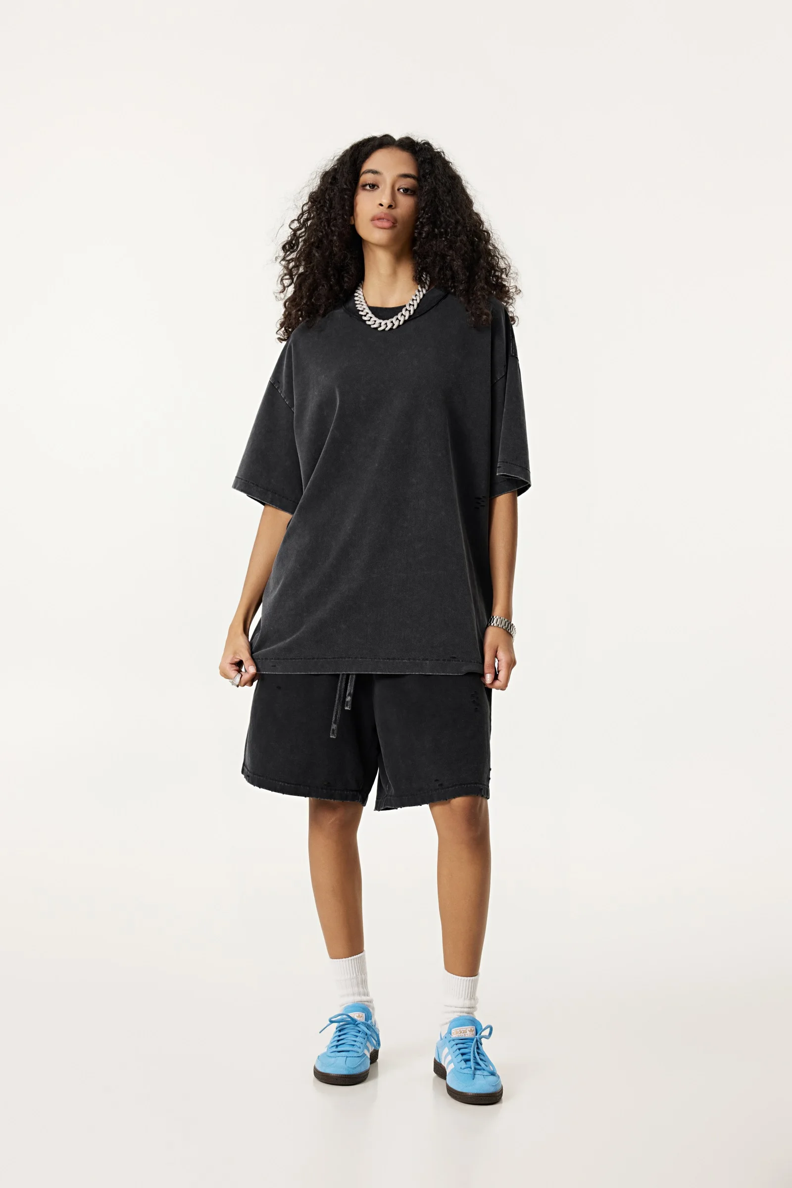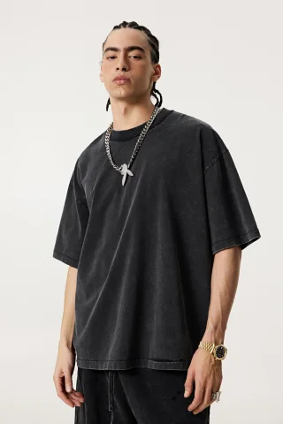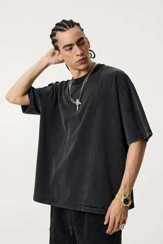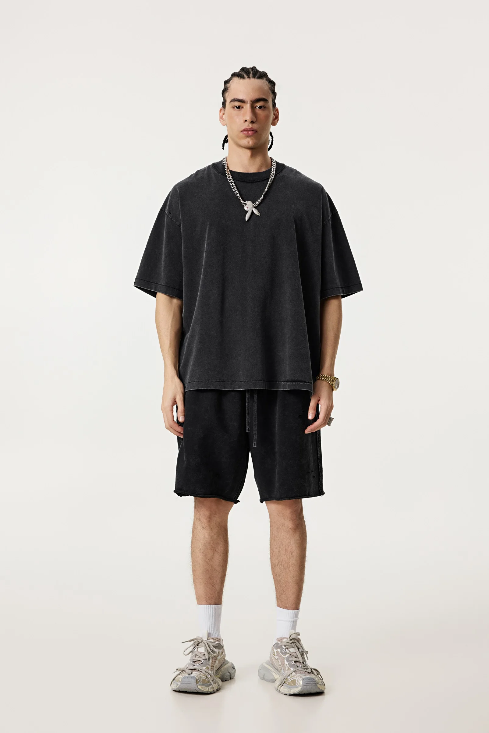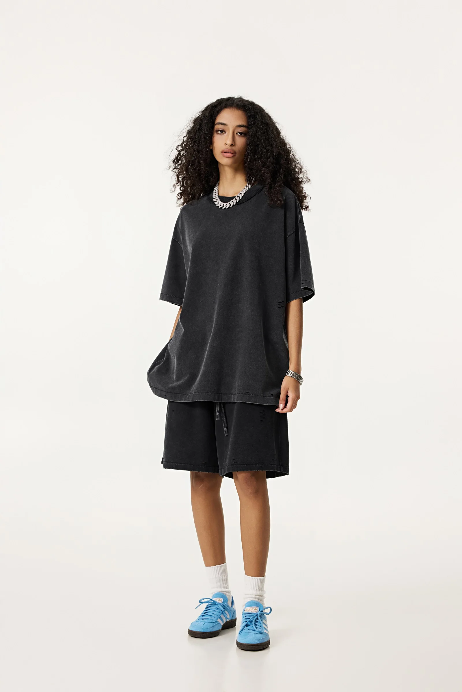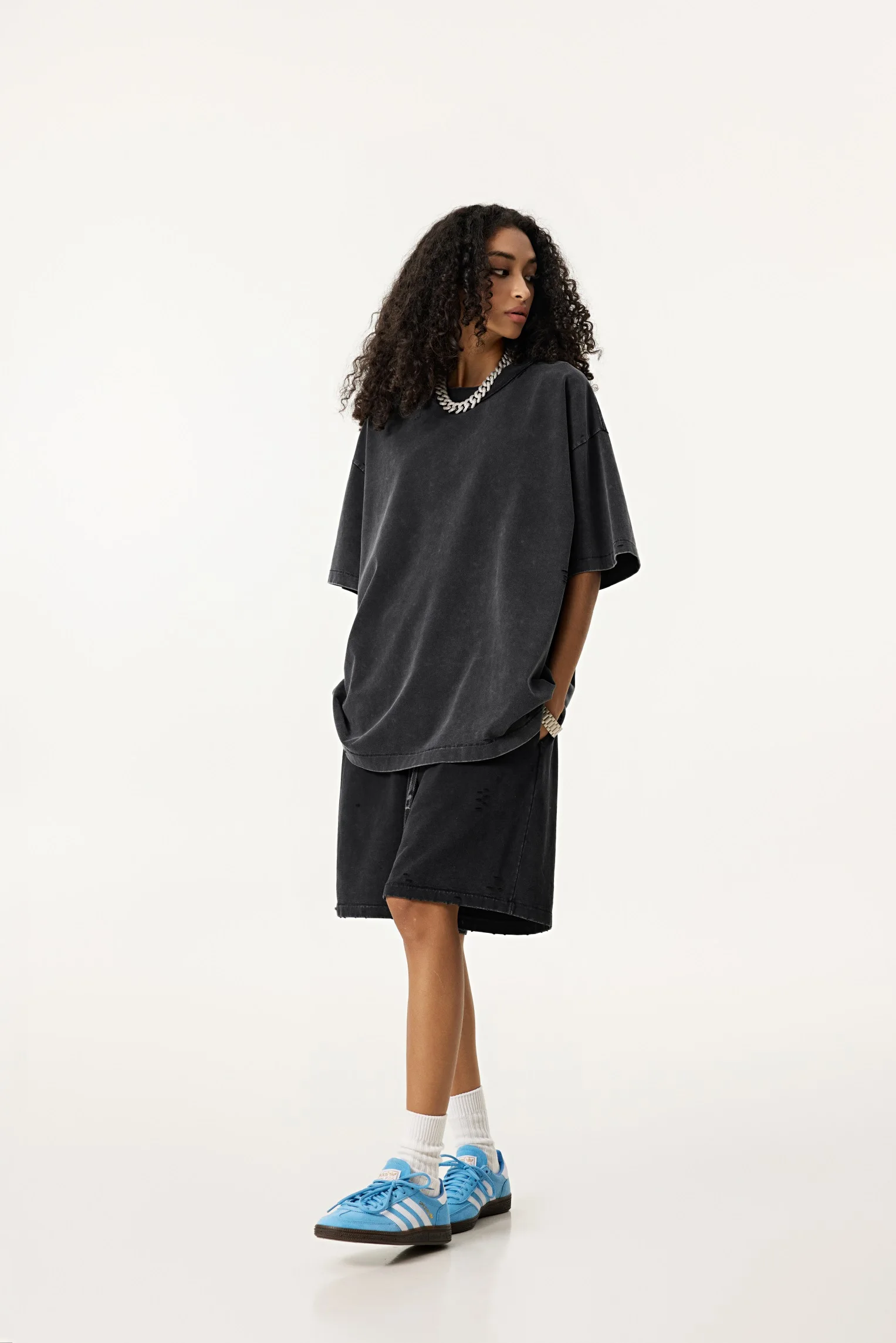 275GSM Unisex Vintage Wax-Dyed Cotton Distressed T-shirt