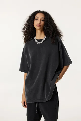 285GSM Women's Monkey-Wash PP Spray Ripped Raw-Edge T-shirt