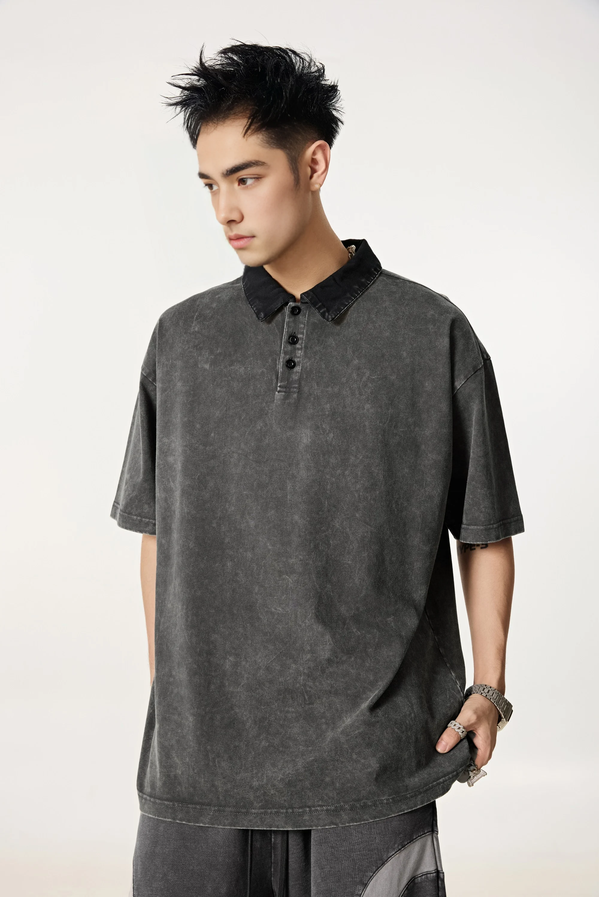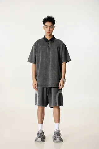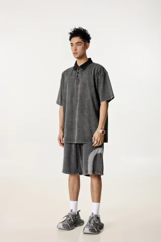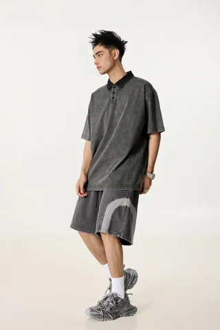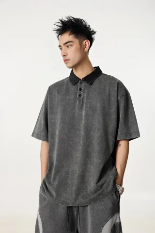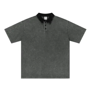 285GSM Unisex Vintage-Washed Unisex 100% Cotton Twill Polo T-Shirt