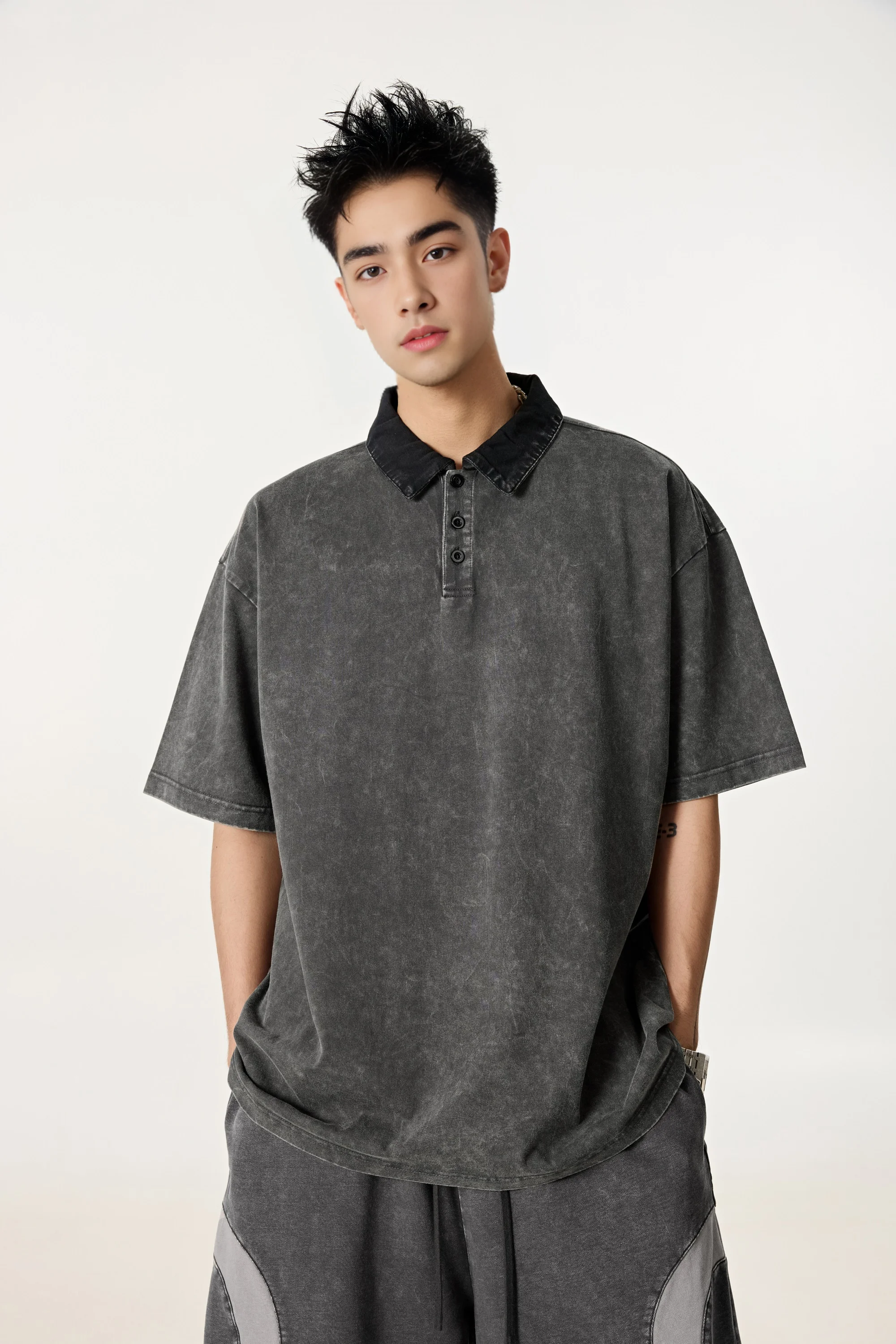 Made from 100% cotton double yarn twill, this polo offers excellent breathability, moisture absorption, and durability. The vintage “Fried Snowflake” wash creates a naturally faded, retro look. With a relaxed fit that flatters the body and shrink-resistant construction, it’s a versatile, high-quality option for any B2B apparel line.