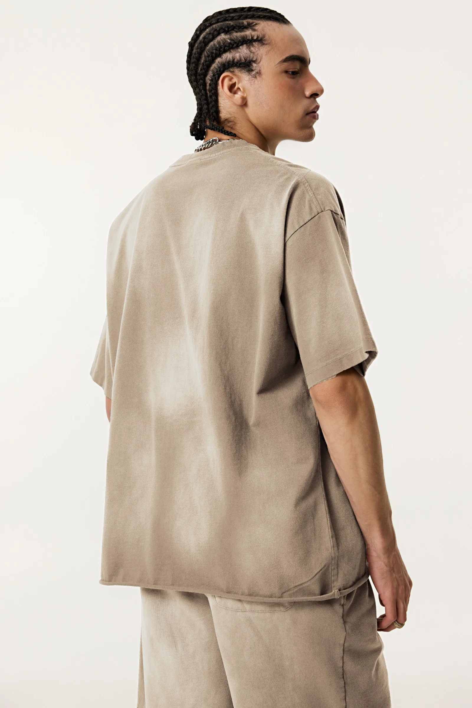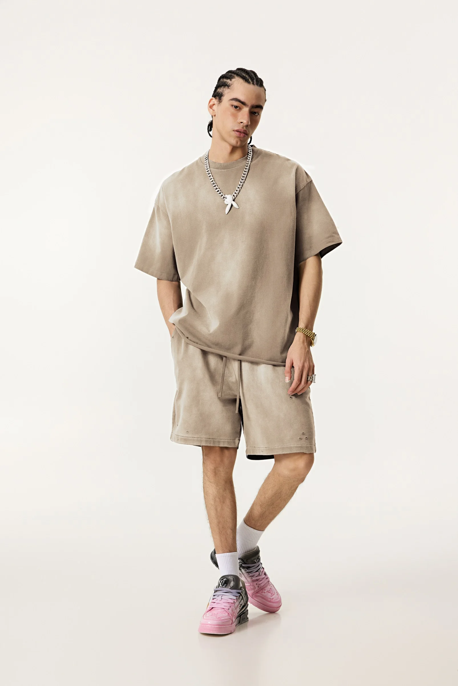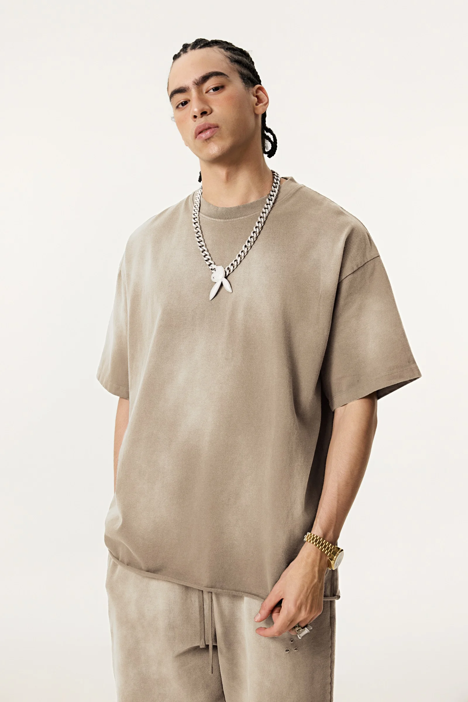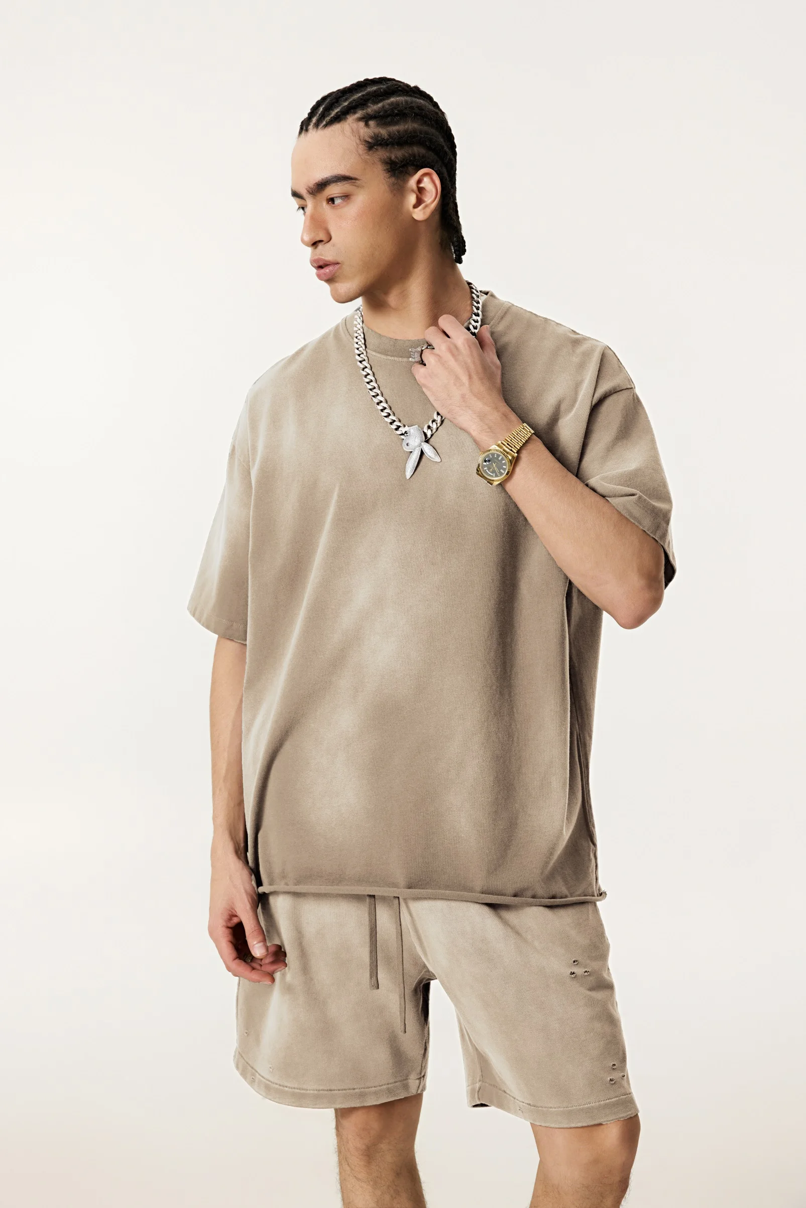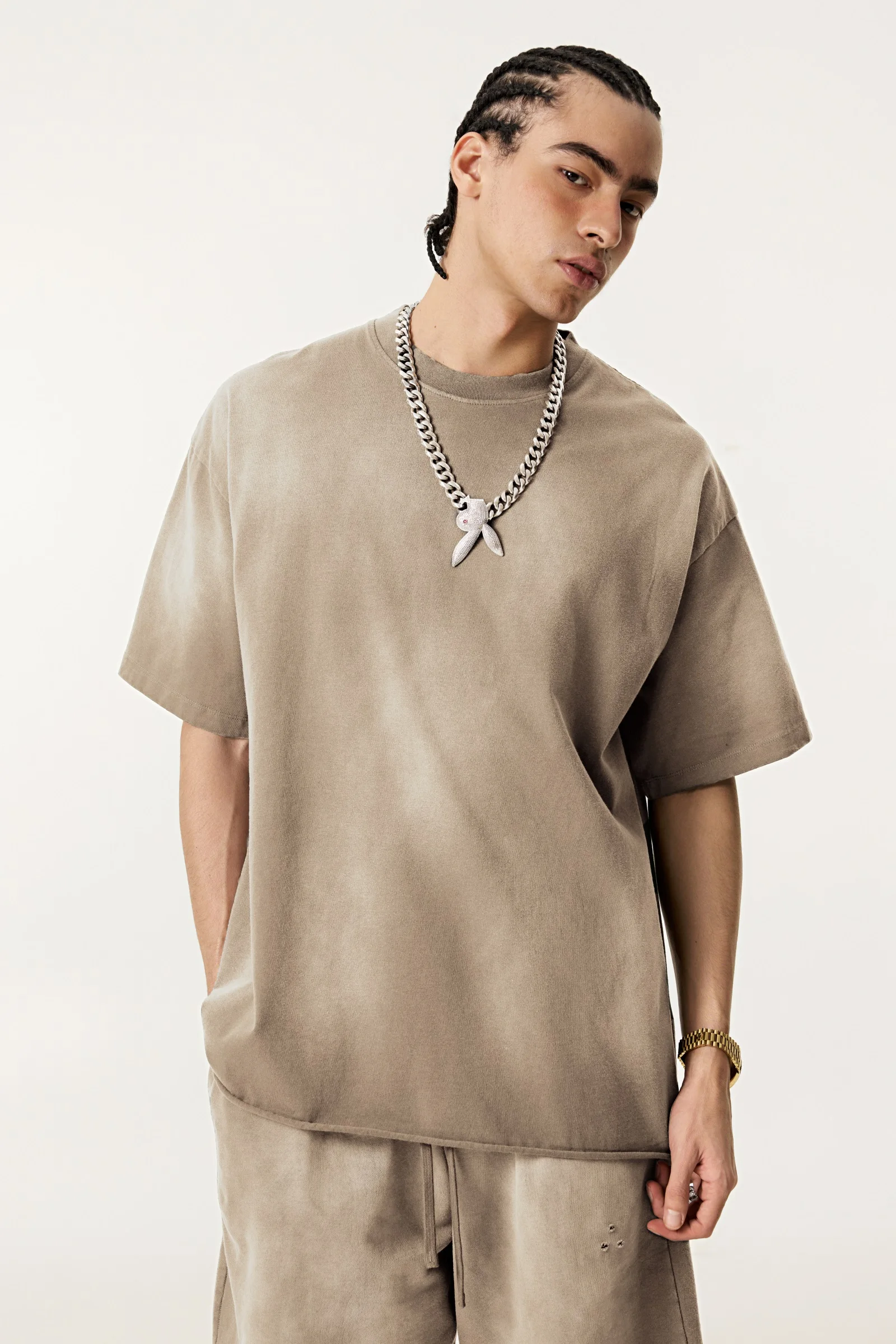 285GSM Unisex Ripped Raw-Edge Monkey-Wash PP Spray T-shirt