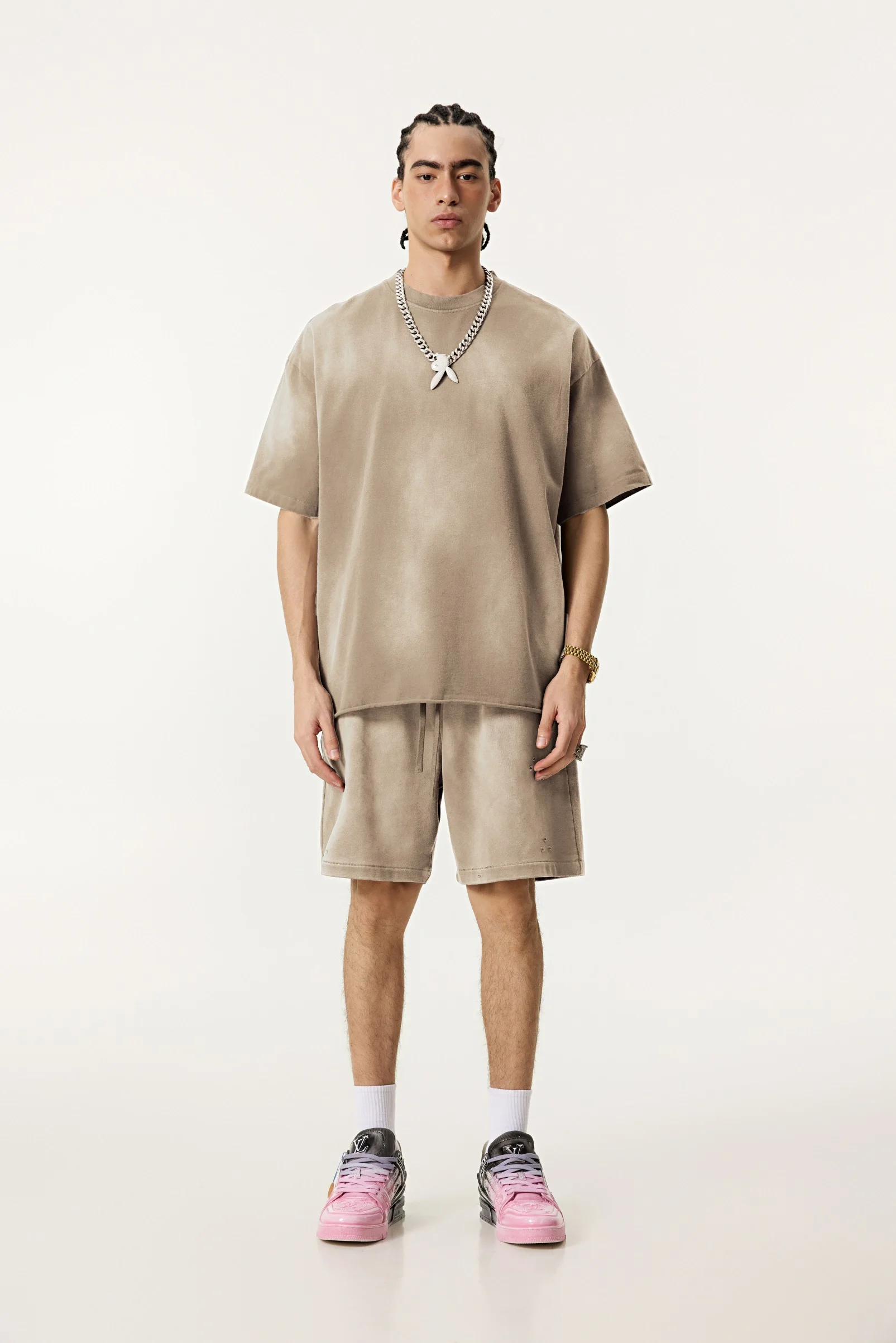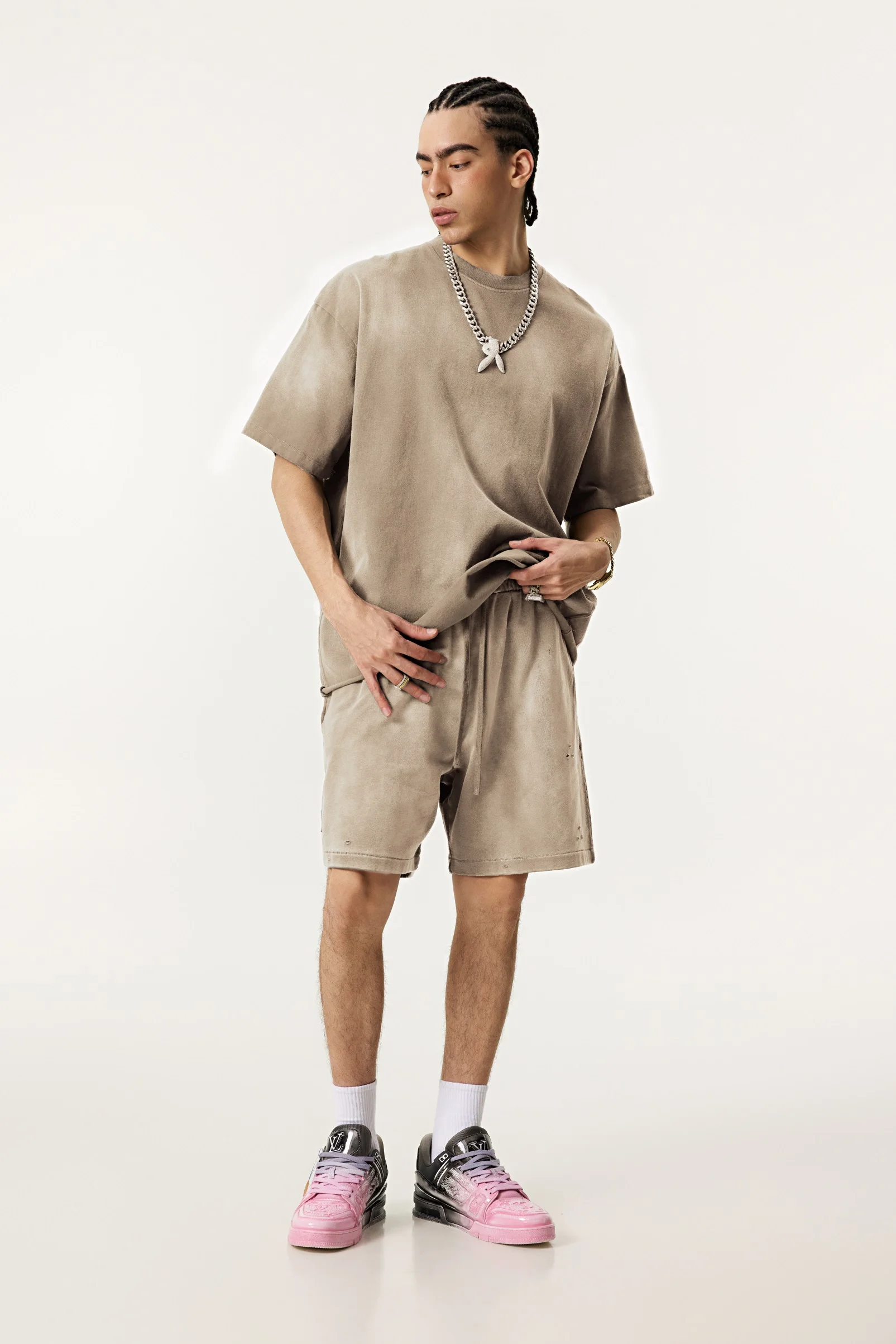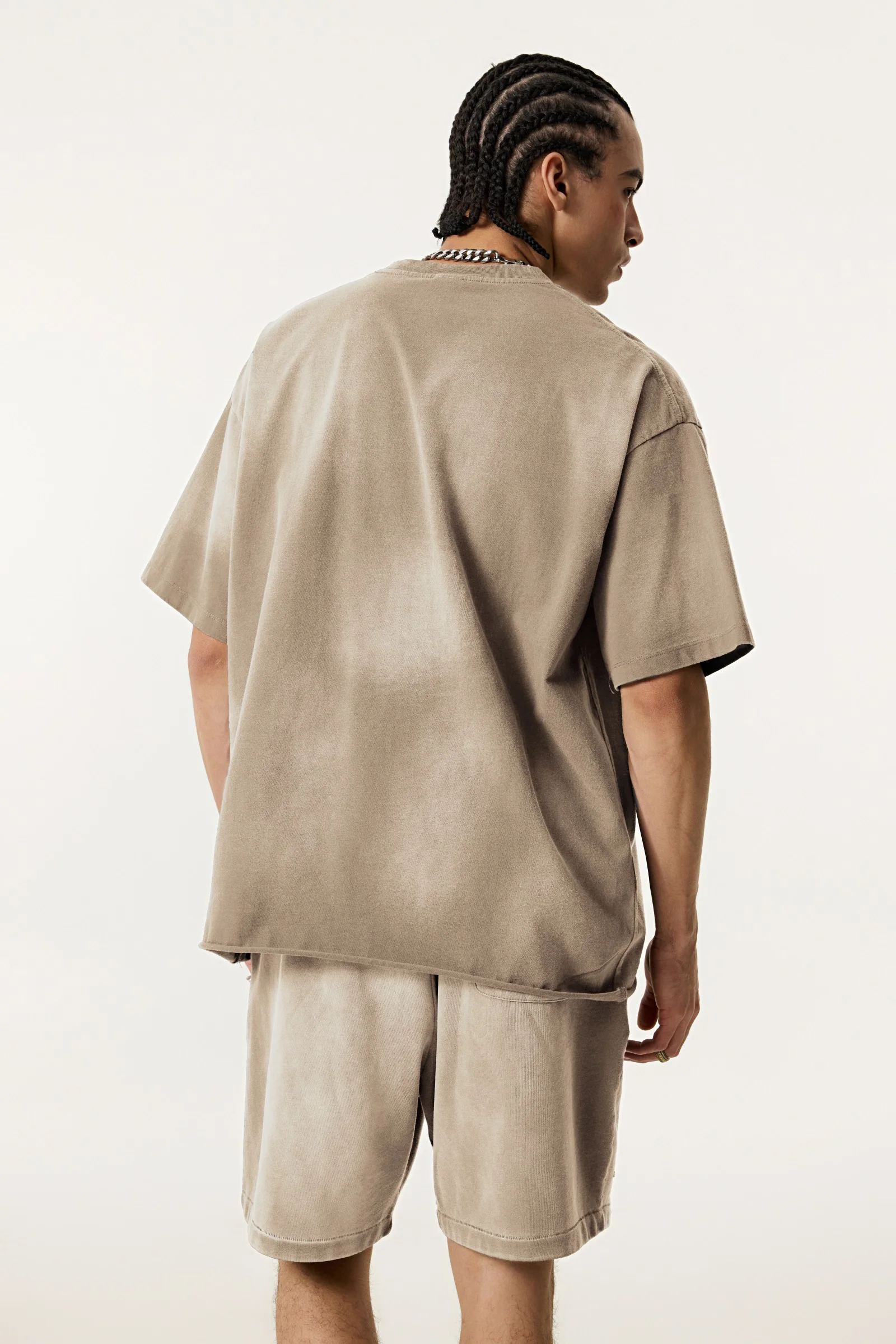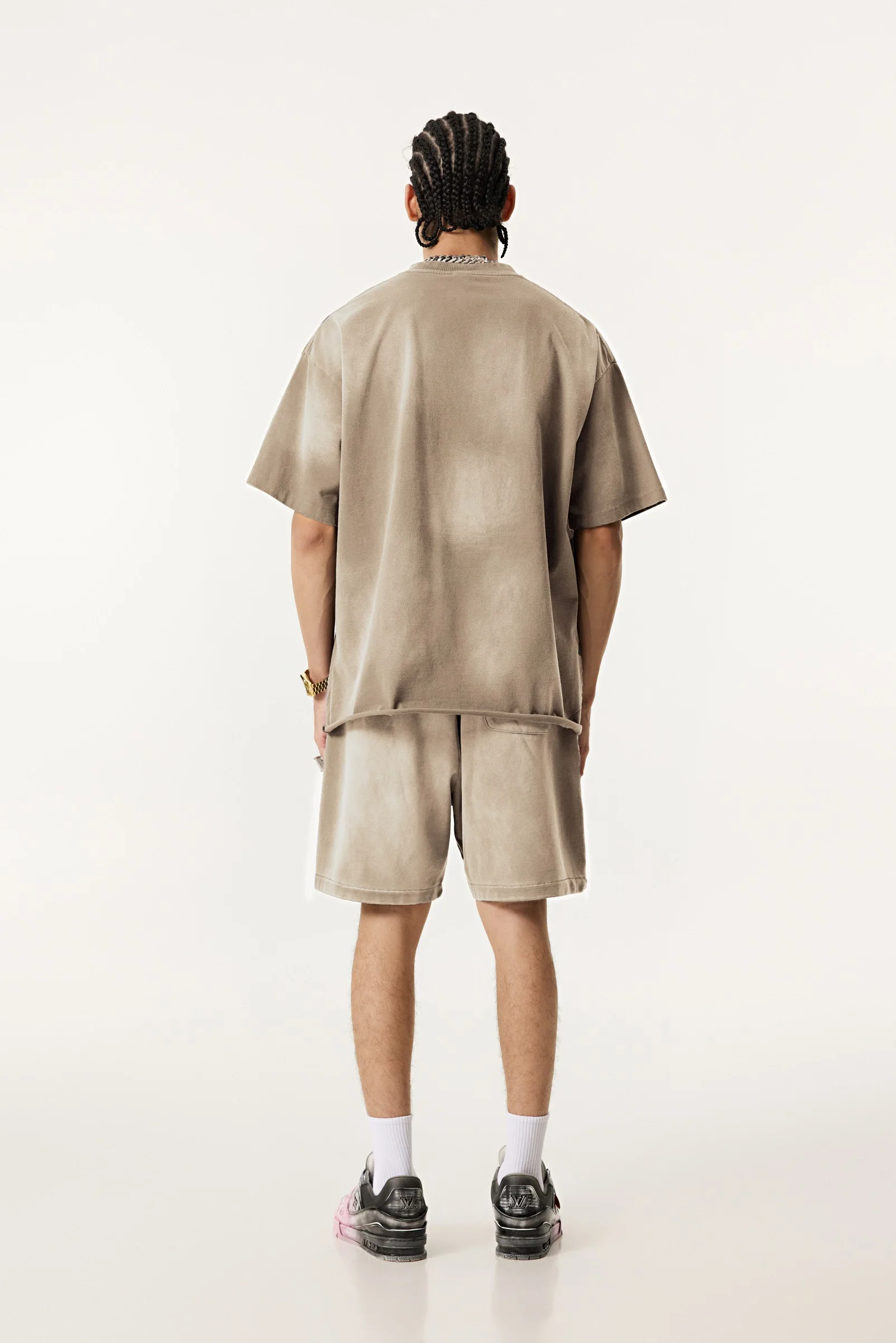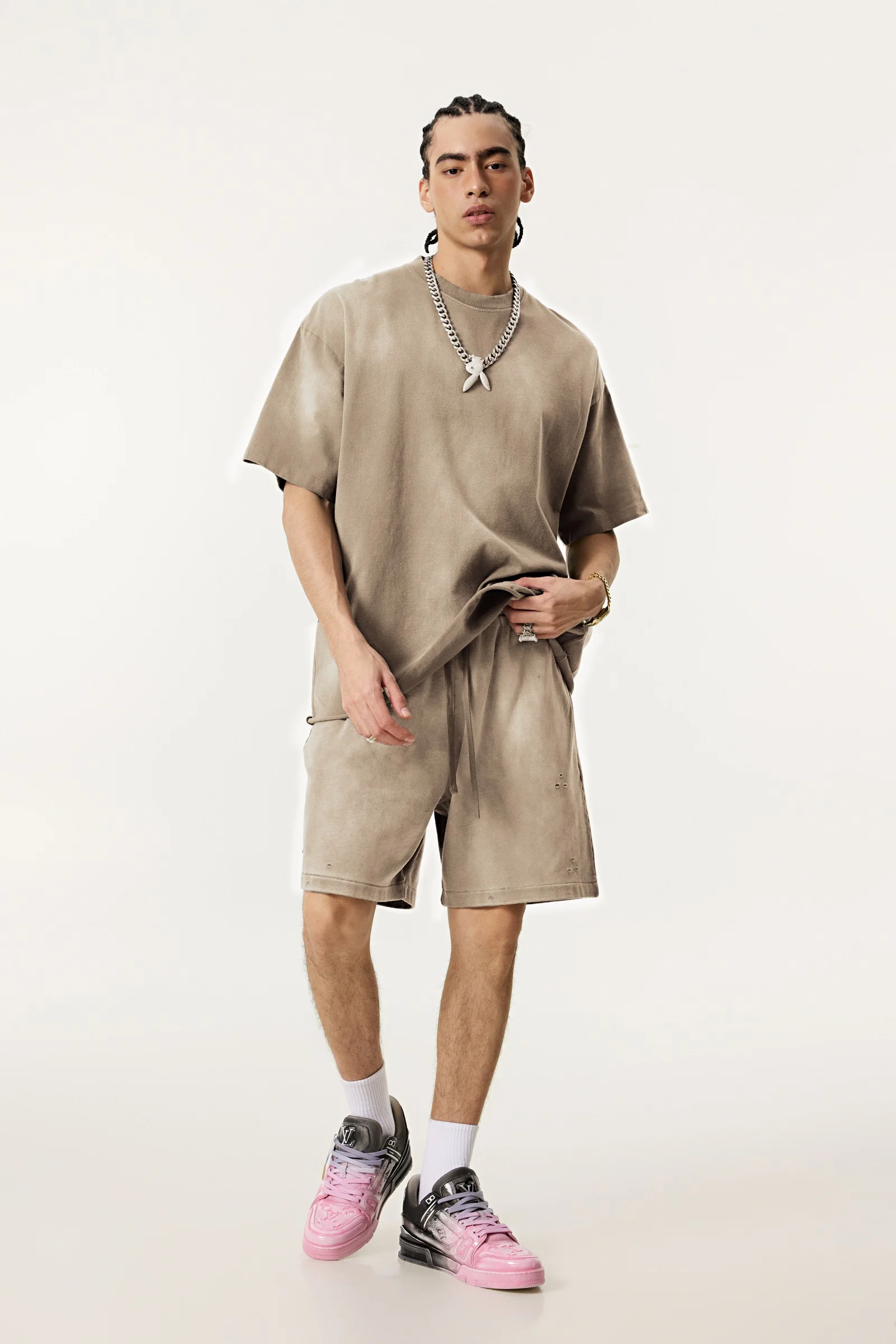 285GSM Unisex Ripped Raw-Edge Monkey-Wash PP Spray T-shirt