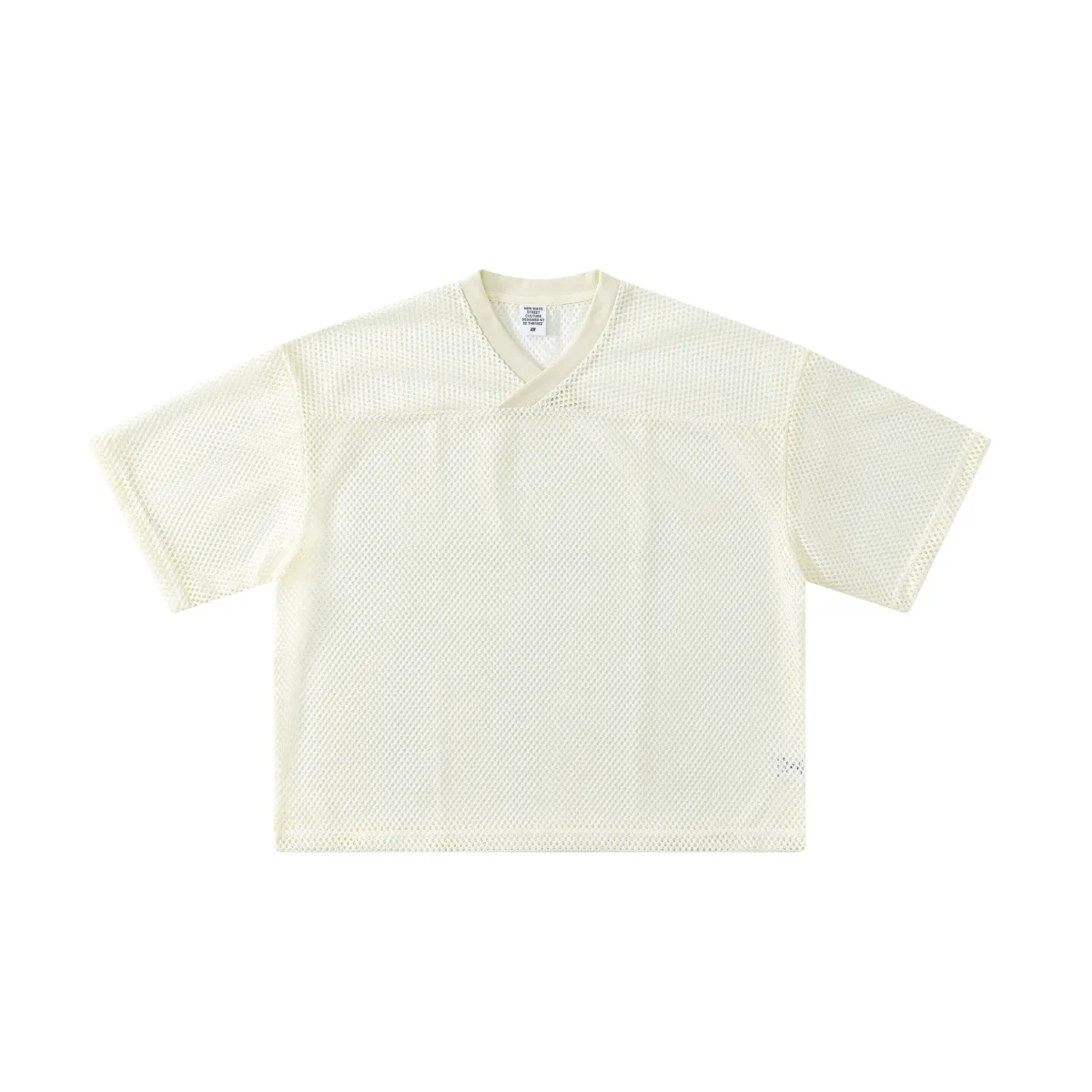 Crafted from high-density mesh fabric, this 240GSM men’s T-shirt offers superior breathability and quick moisture-wicking, perfect for layering in summer. The boxy, slightly loose fit flatters various body types, while the textured mesh adds dimension to your look. With a clean shoulder seam, neat cuffs, and an optimized ribbed collar that doesn’t lose shape, this T-shirt provides both comfort and style. The front-short-back-long design adds versatility, making it ideal for streetwear or casual layering. Perfect for 18-35-year-old men who appreciate effortless, functional style with a sporty urban edge.