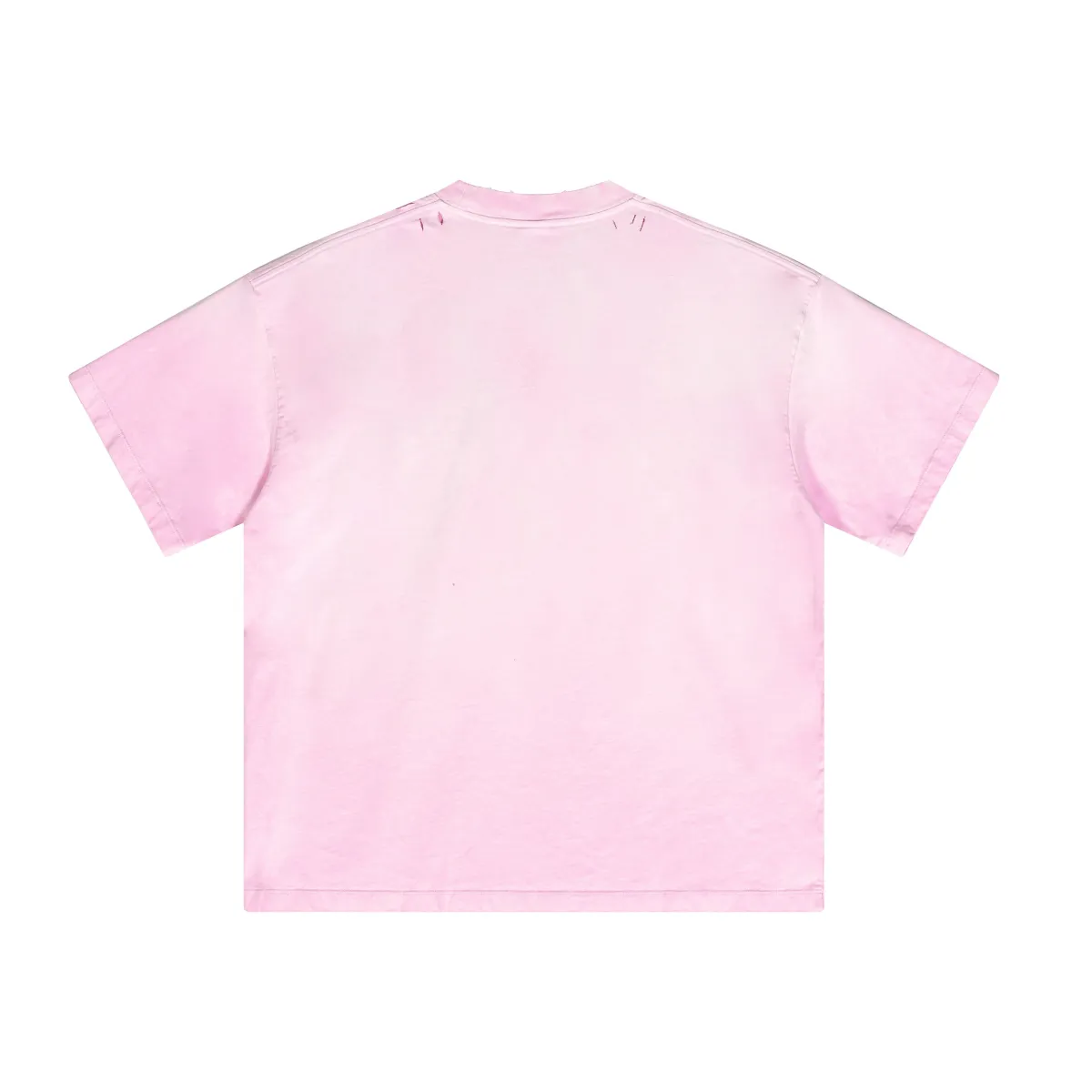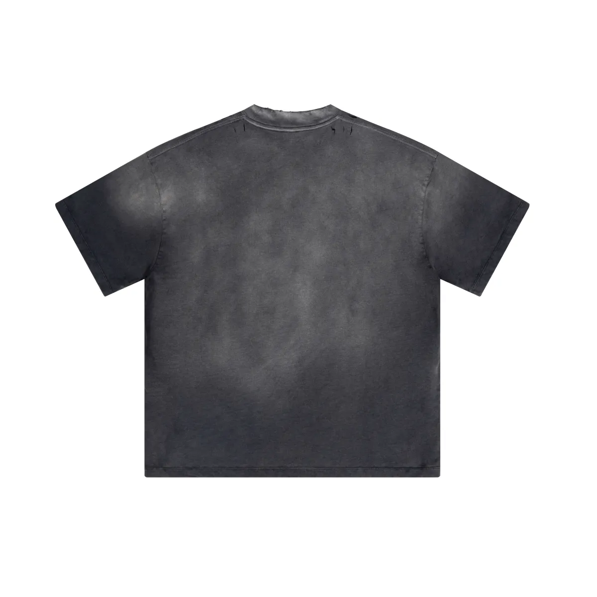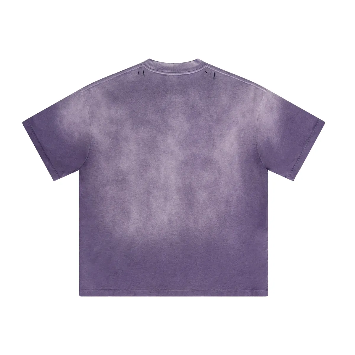 Dyeing + monkey spray + distressed layered process, rich in layers, natural earth tones, presenting a nostalgic vintage style after washing. Frayed edges on the collar, cuffs, and hem for a free, unrestrained look, full of design sense. The color becomes more natural with each wash, developing unique wear patterns based on individual habits, making it a truly personalized T-shirt. Maintains shape after washing, high neckline enhances the appearance of a slim neck, single line collar stitching, back original fabric shoulder adds a quality touch. Loose and structured fit that flatters the body, minimizing flaws and highlighting strengths. Versatile style. 32 yarn double brushed plain weave, soft and skin-friendly with a solid feel. Frayed hem for a free, unrestrained look, frayed collar and cuffs for a vintage feel, offering a more stylish attitude.