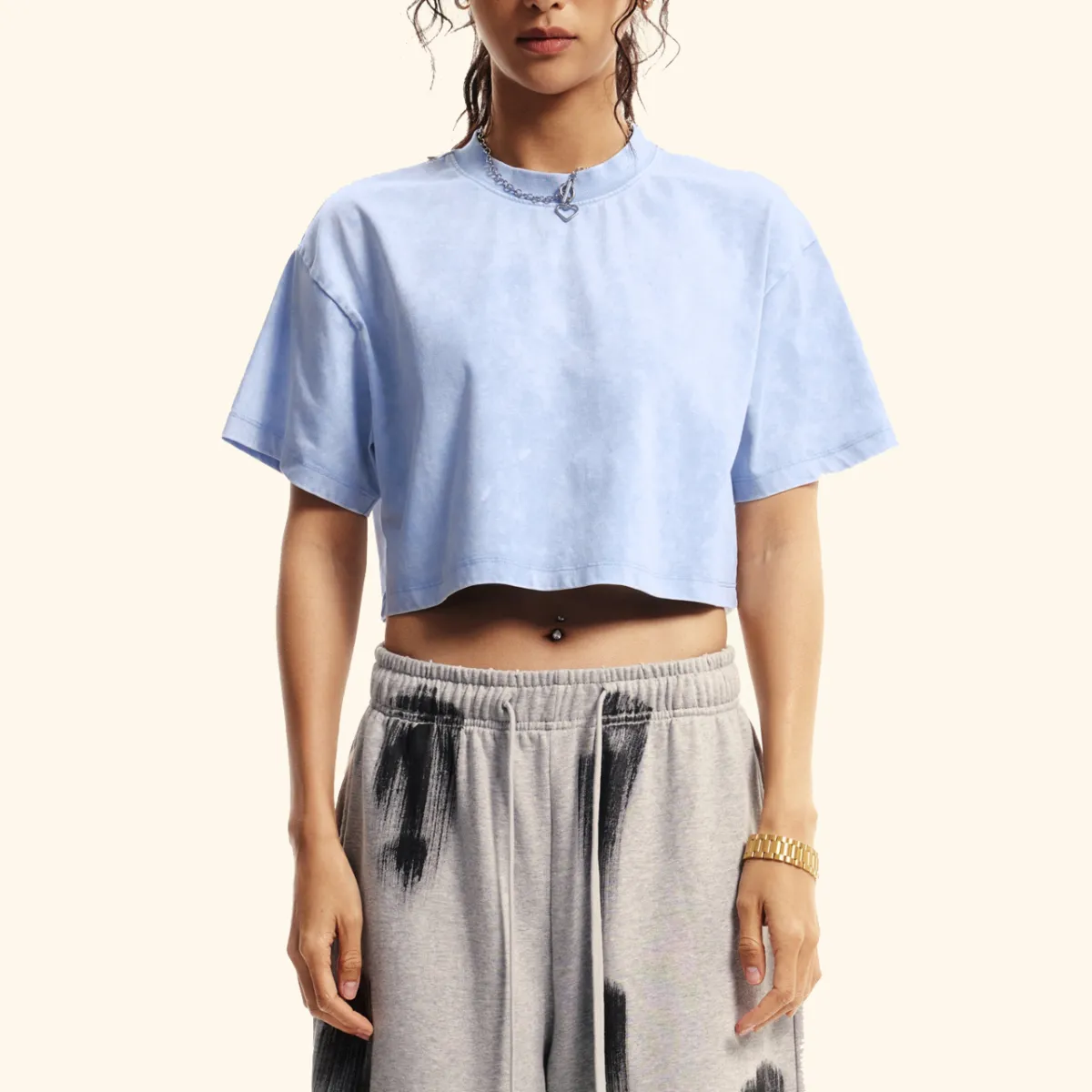 230GSM Women’s Cool-Touch Dopamine-Color Snow-Washed Vintage Cropped T-Shirt