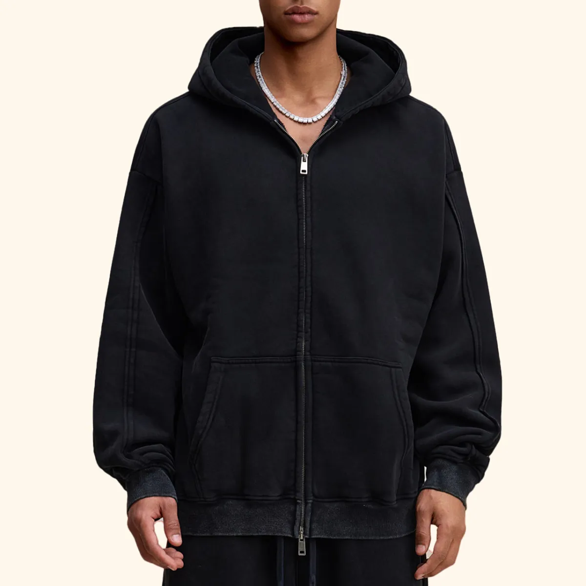 340GSM Men’s Trendy Fleece Structured Panel Hoodie