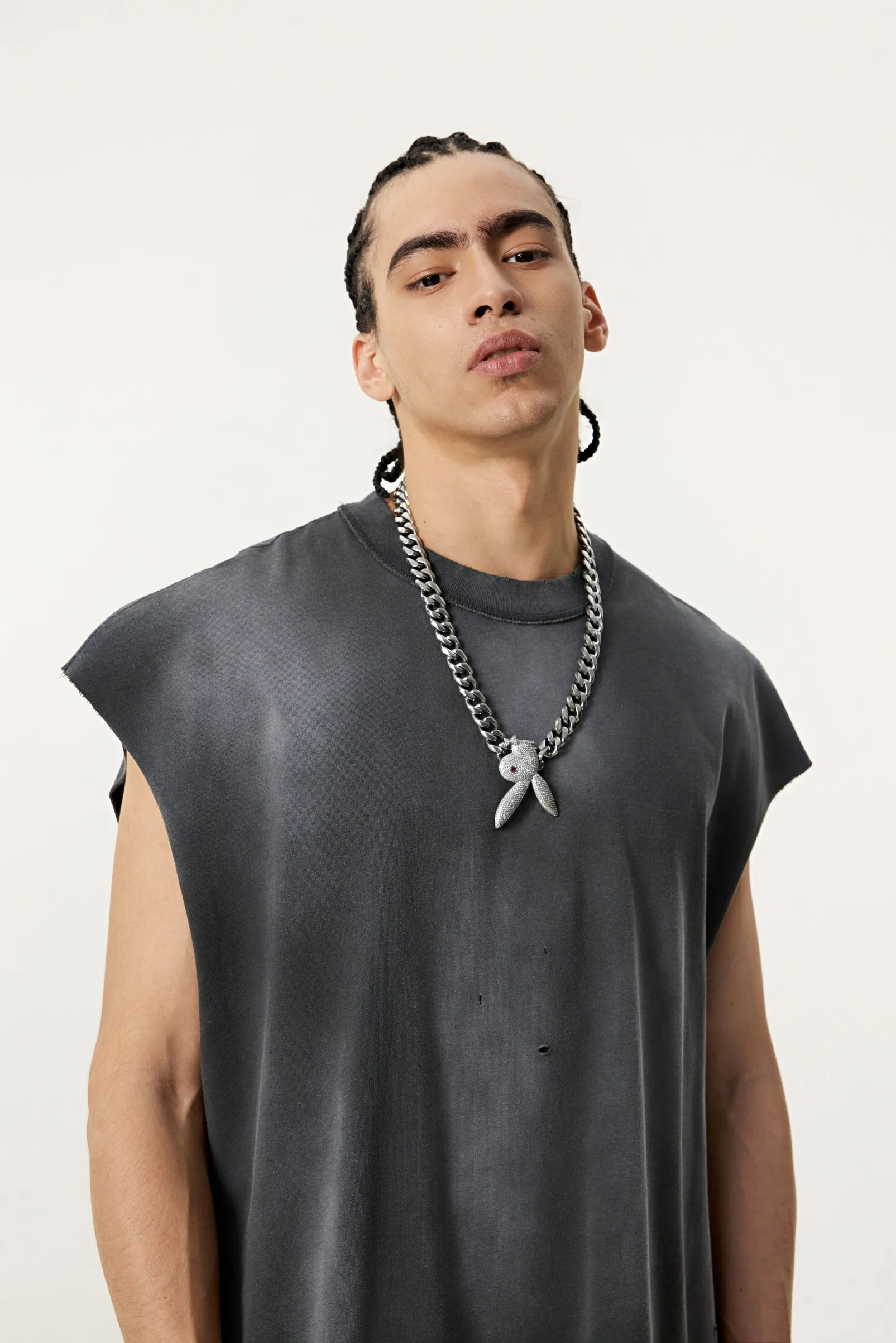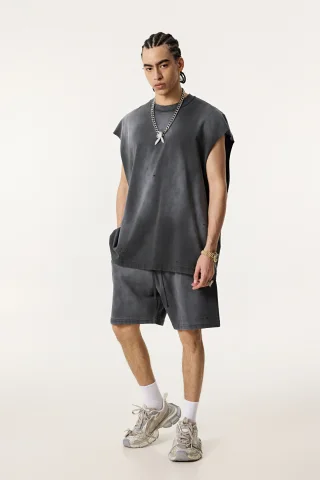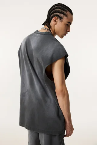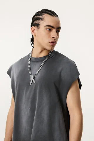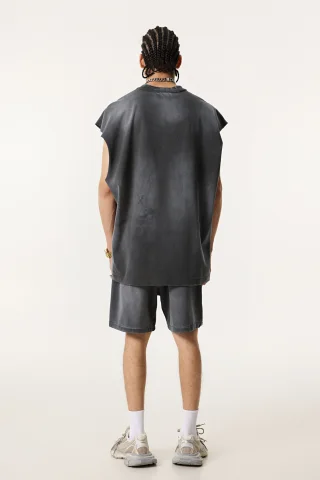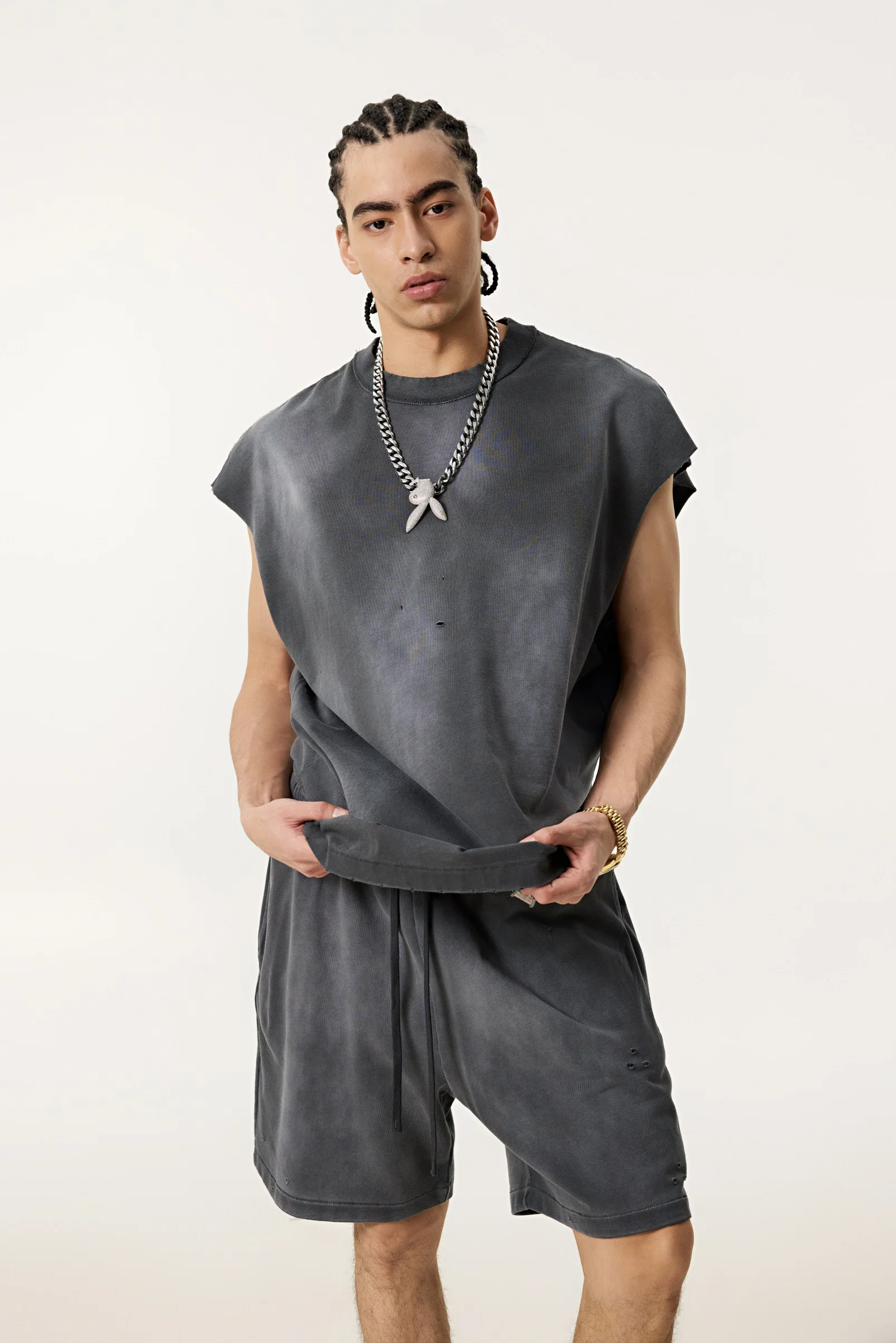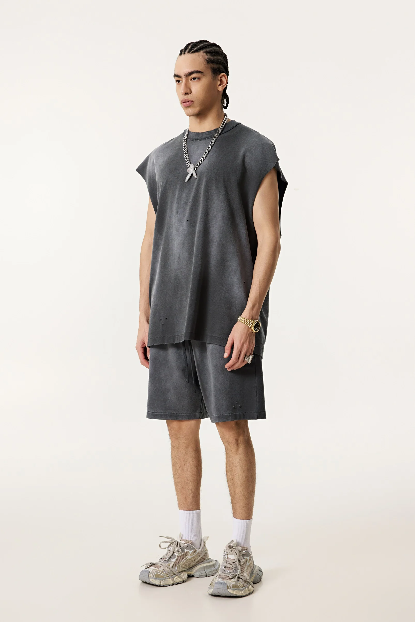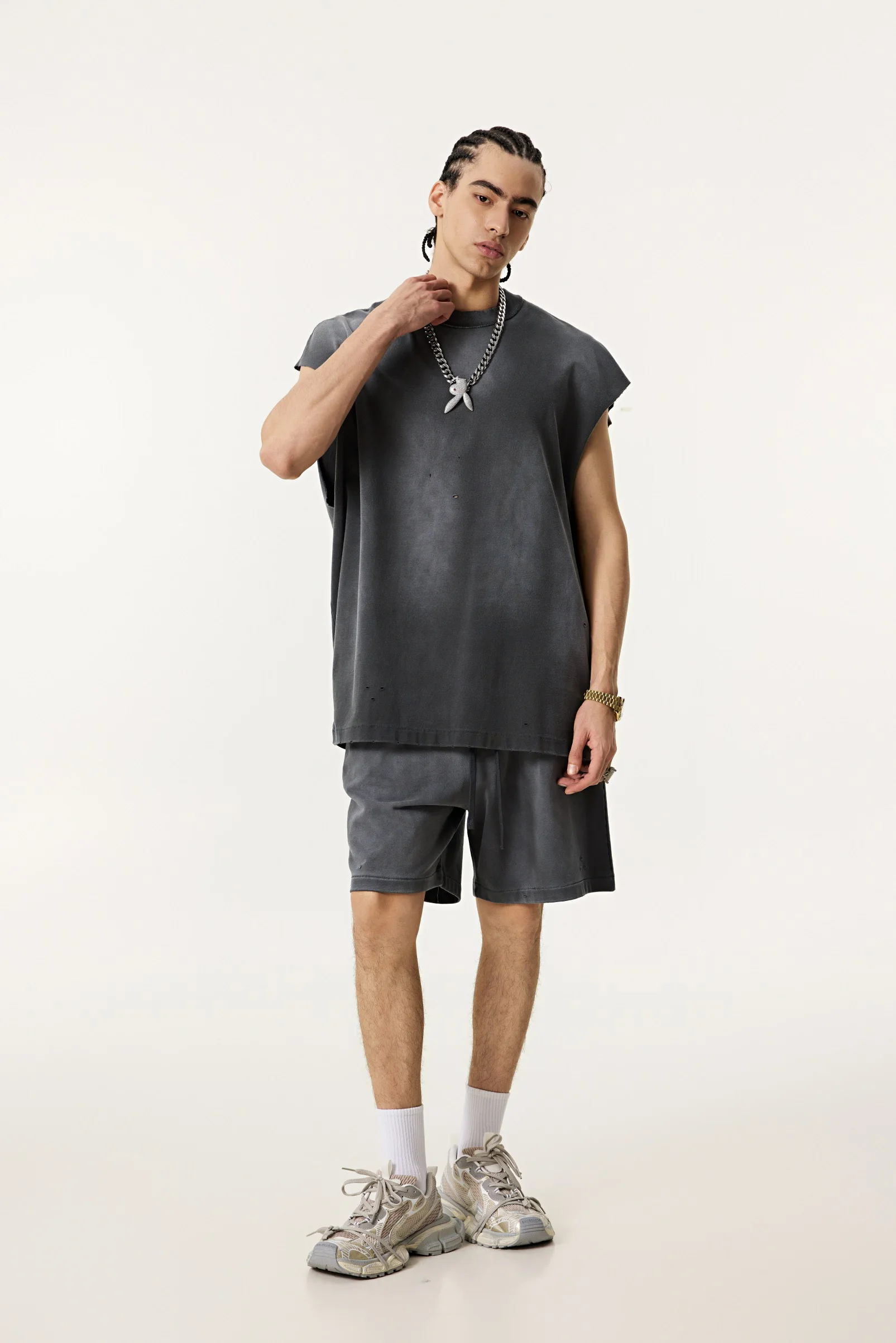 285GSM Unisex Monkey-Wash PP Spray Distressed Sleeveless Top