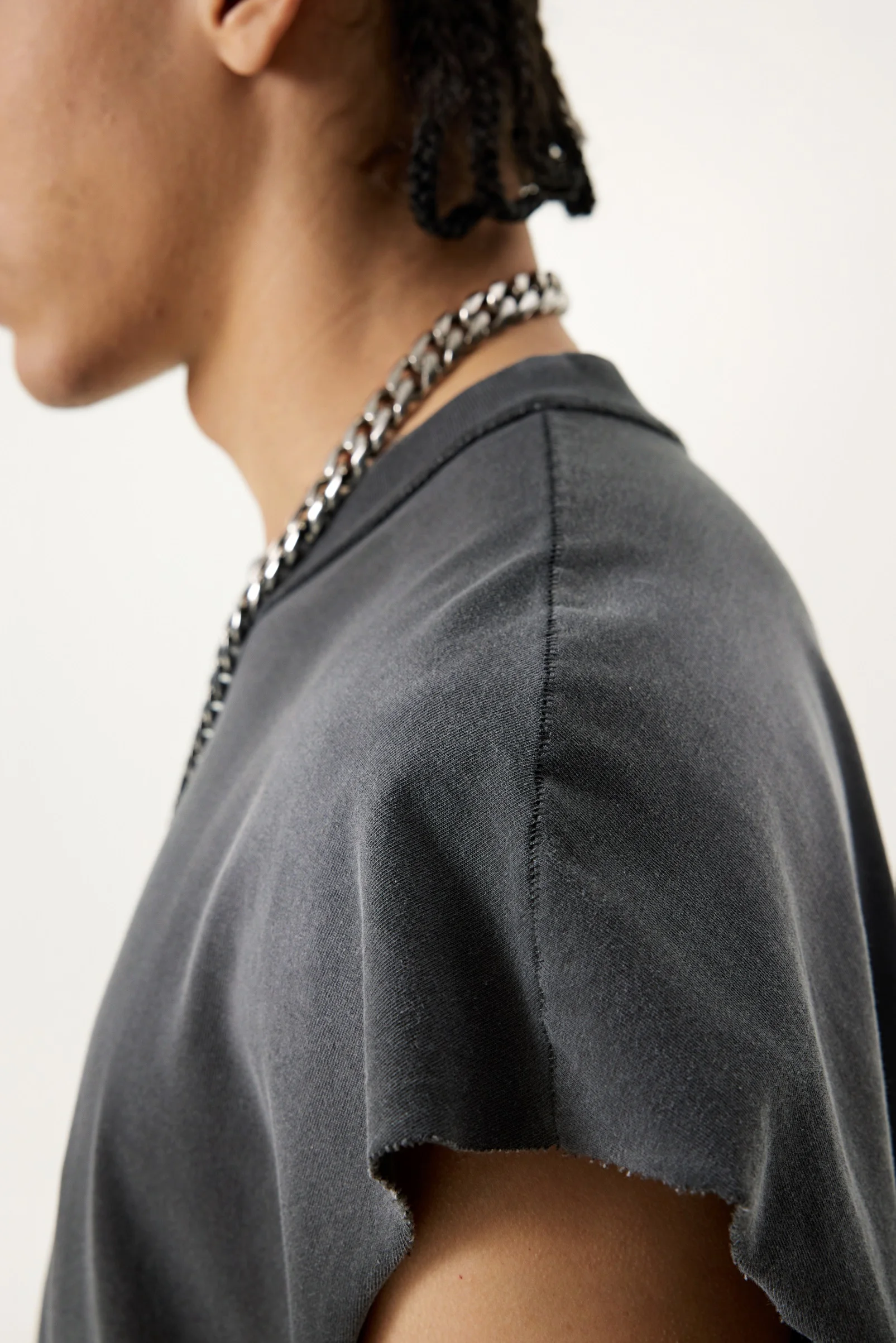 285GSM Unisex PP-Sprayed (Monkey Wash) Ripped Pocket Short-Sleeve T-shirt