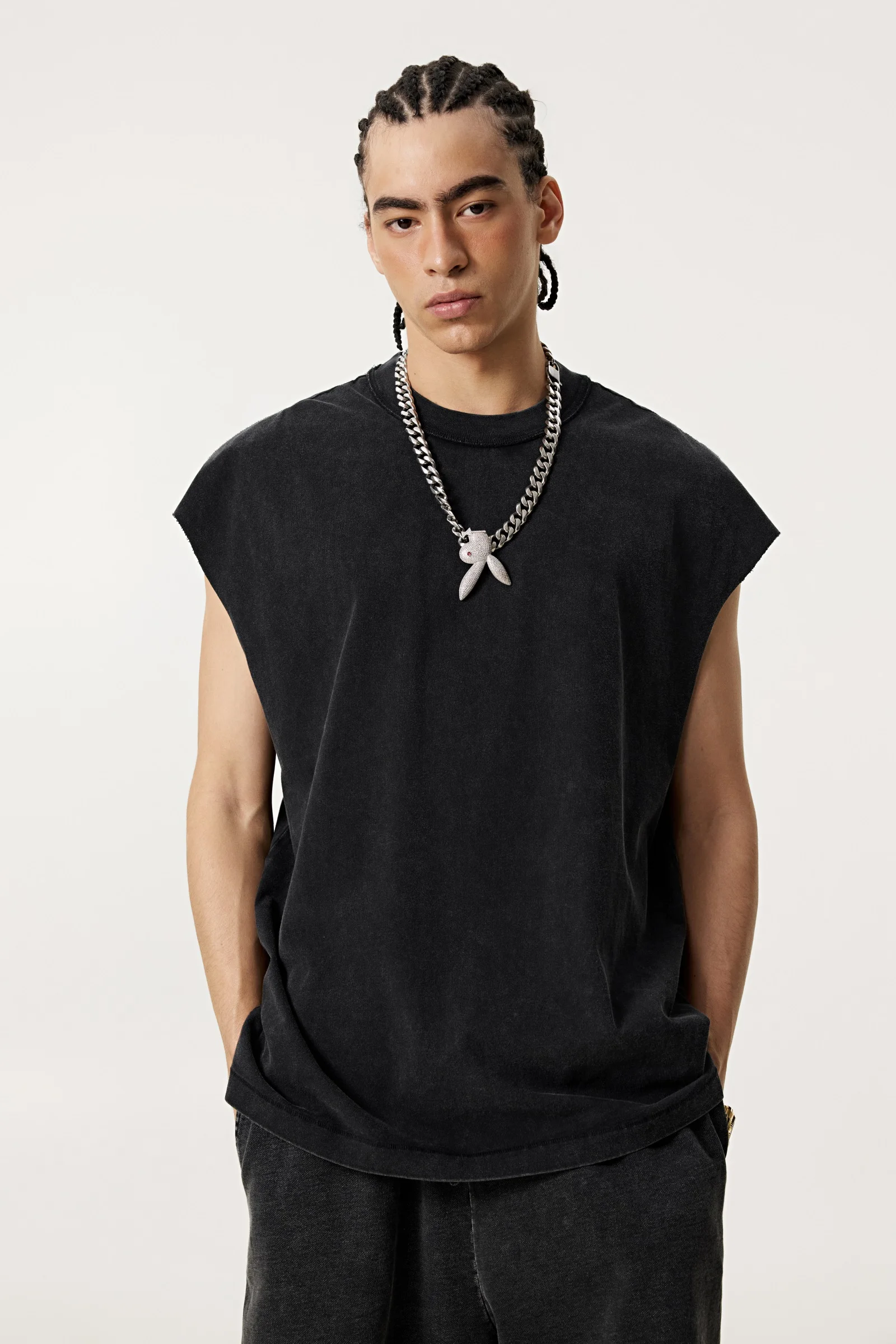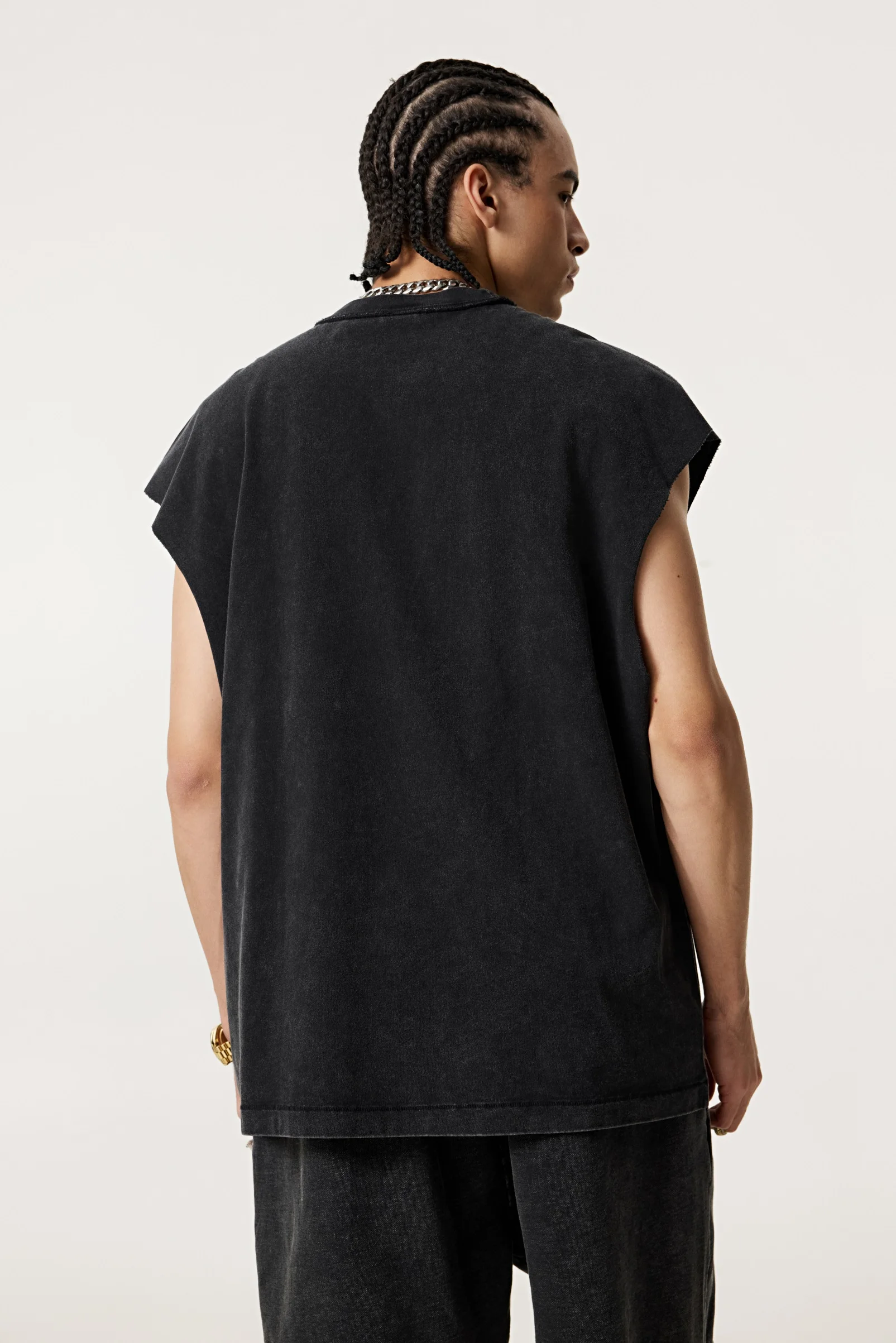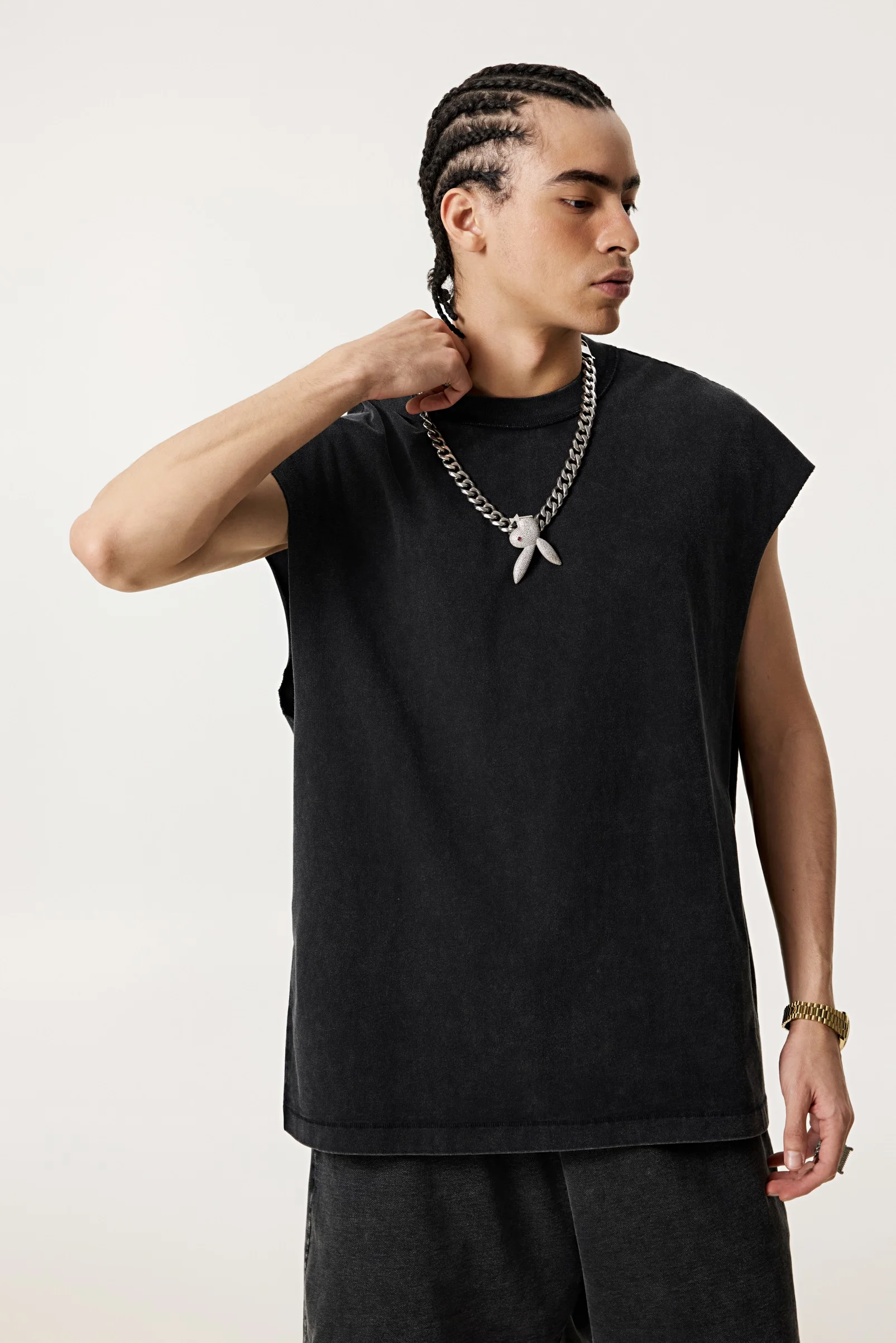 275GSM Unisex Pigment-Wash Sleeveless 100% Cotton Plain T-shirt