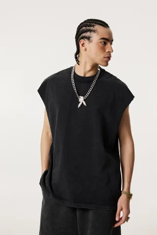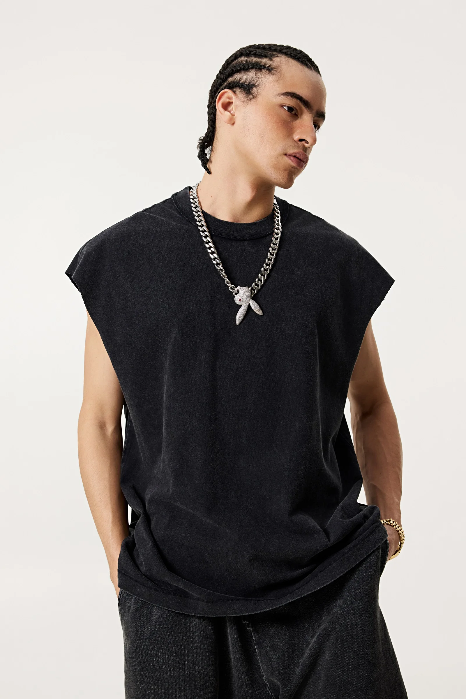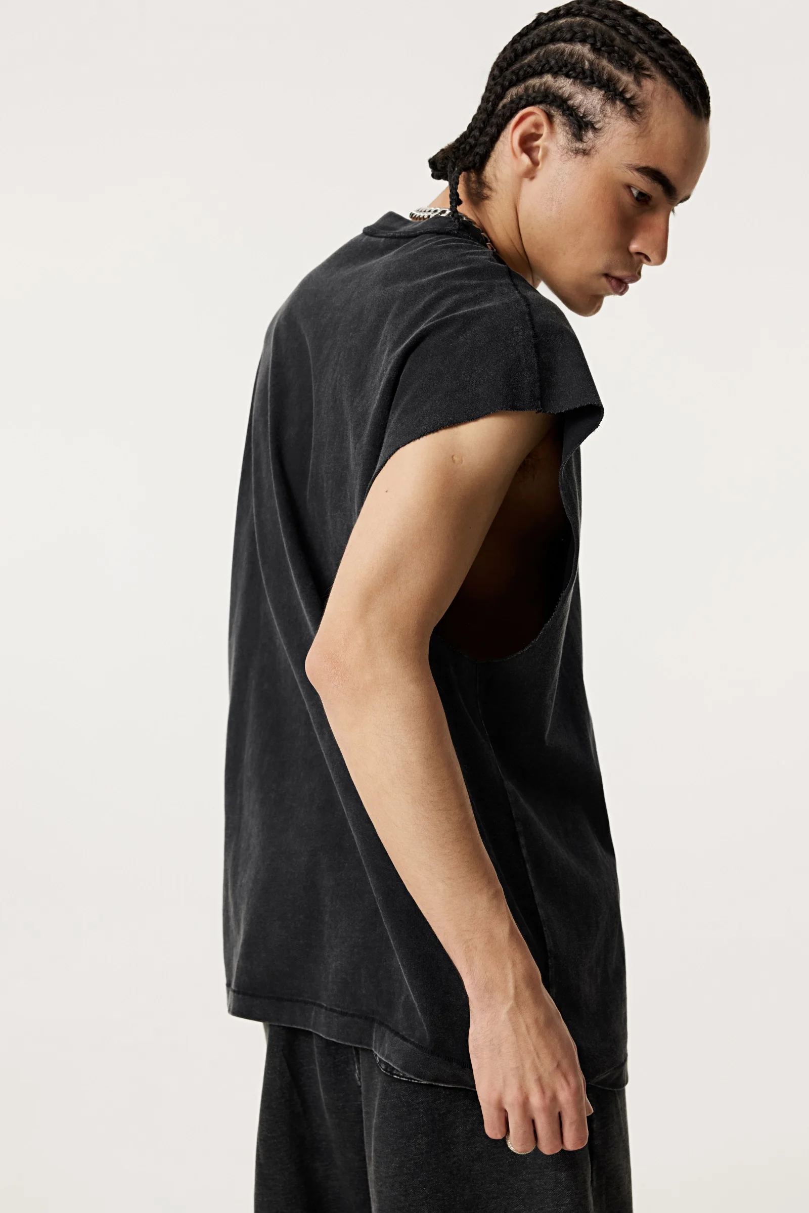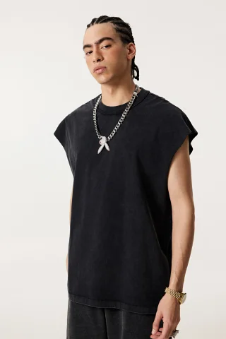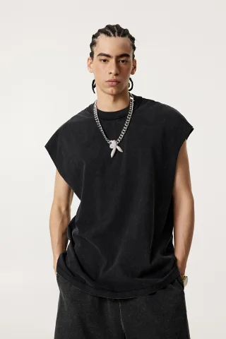 275GSM Unisex Pigment-Wash Sleeveless 100% Cotton Plain T-shirt
