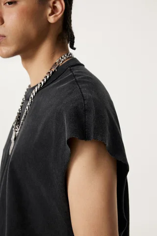 275GSM Men’s Raw-Edge Pigment-Wash Top