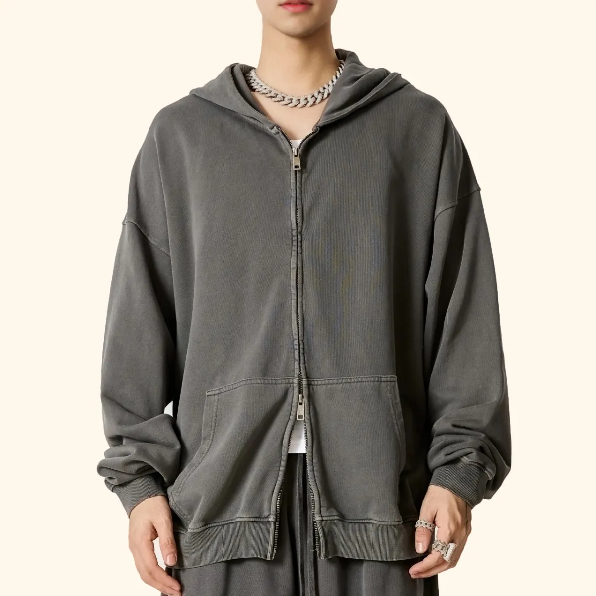 345GSM Men’s Boxy-Fit Double-Zip Hoodie